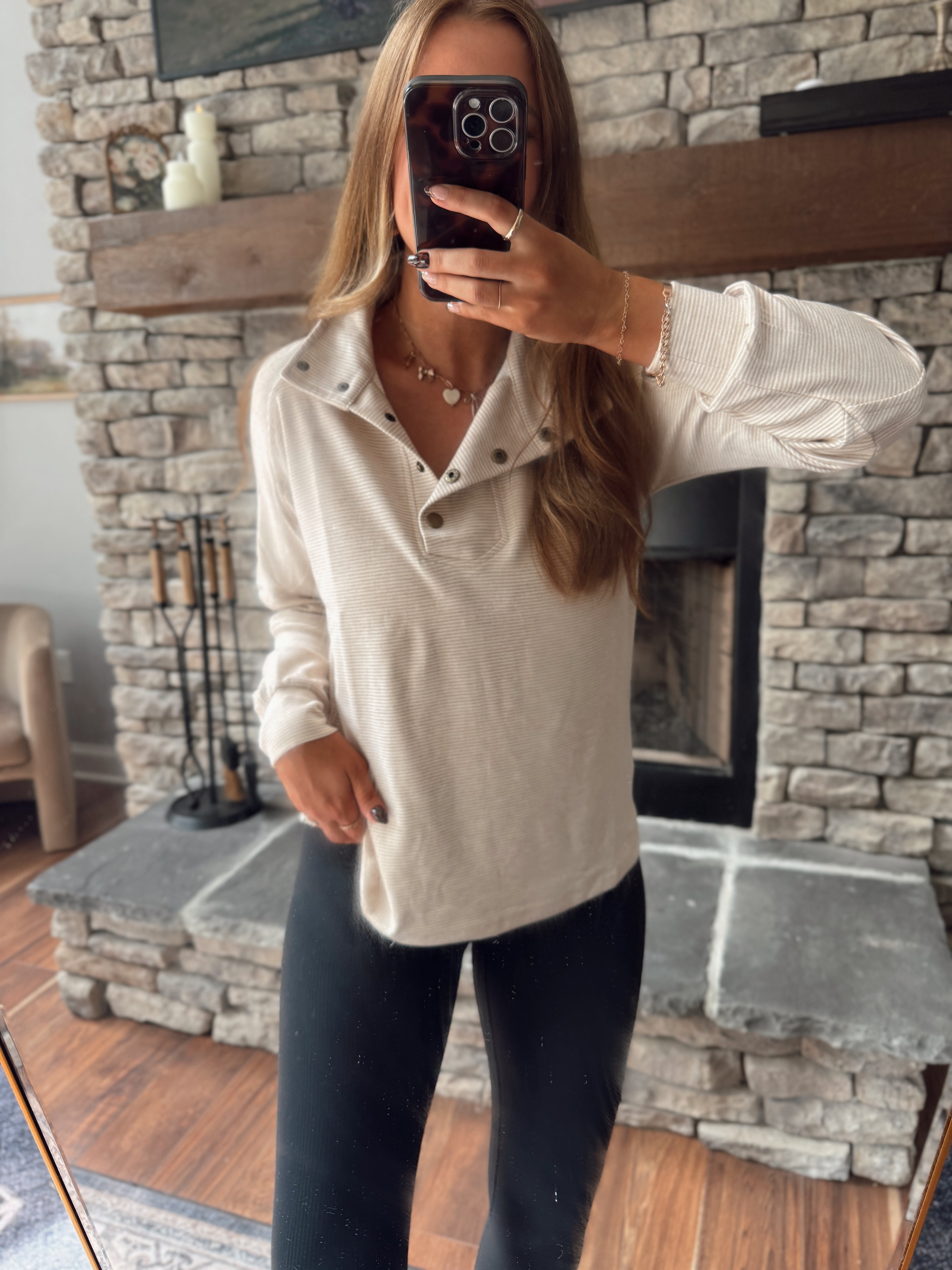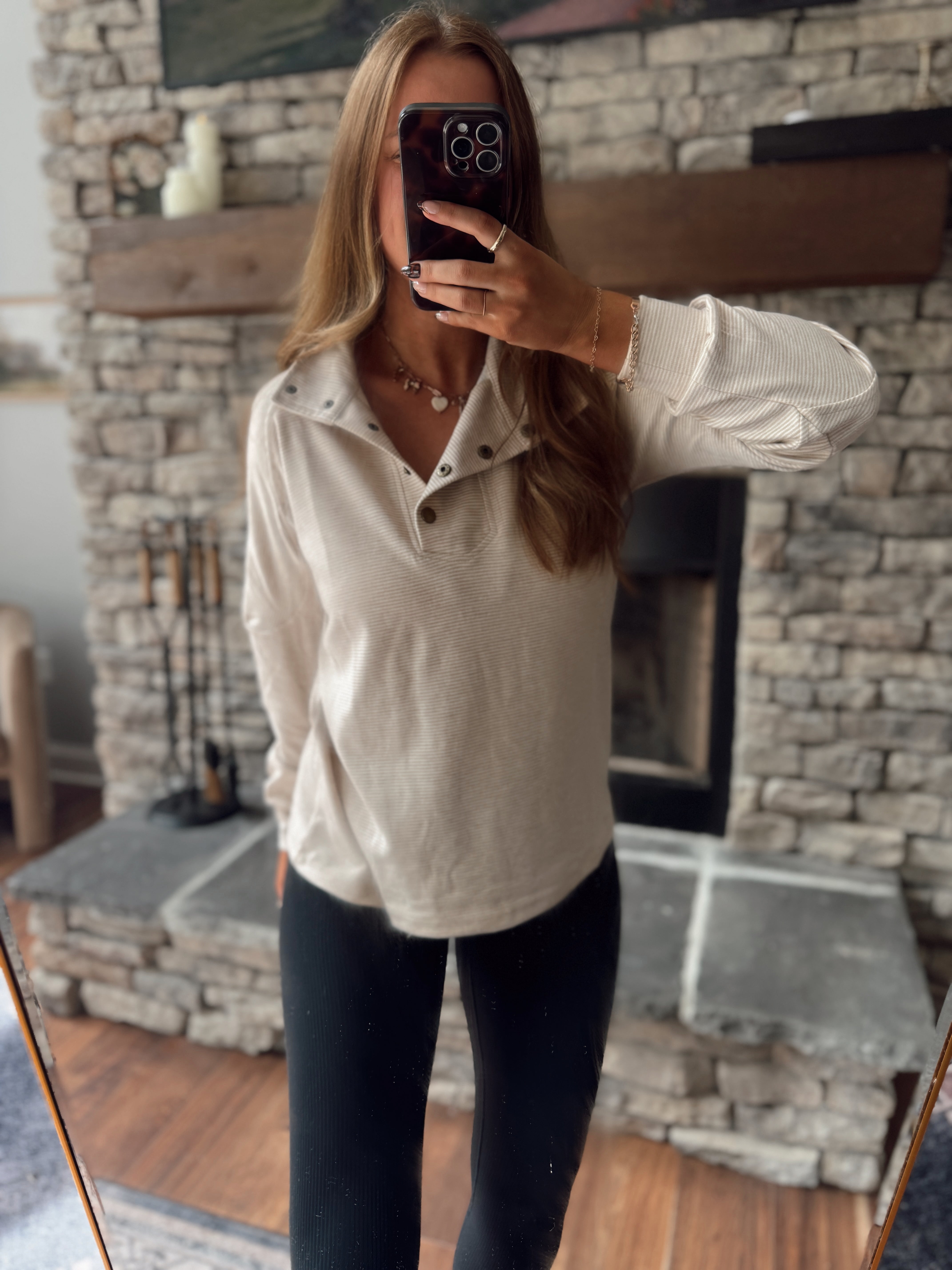 Beige Buttoned Bliss Pullover