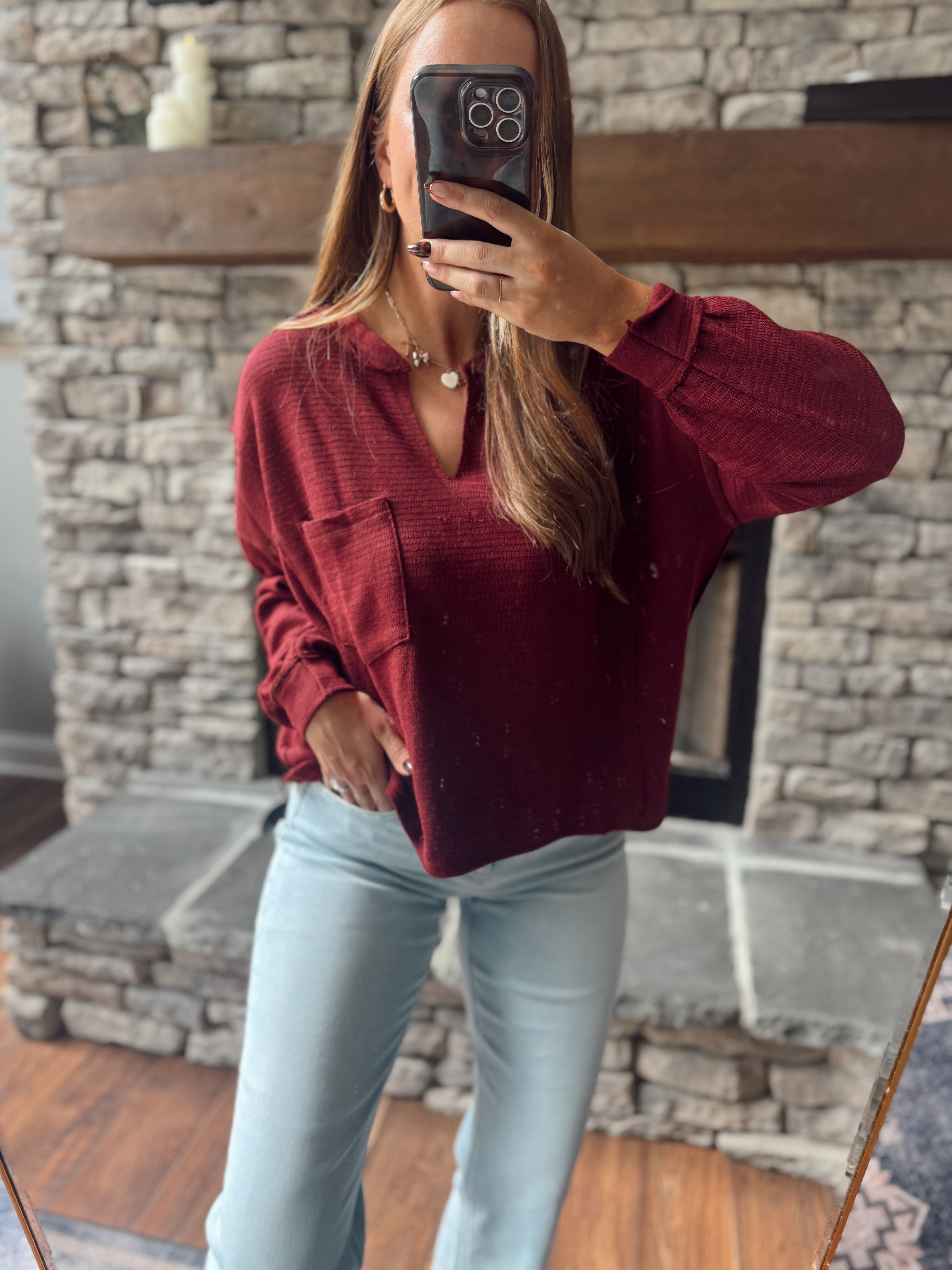 Good To Go Oxblood Textured Split Neck Top