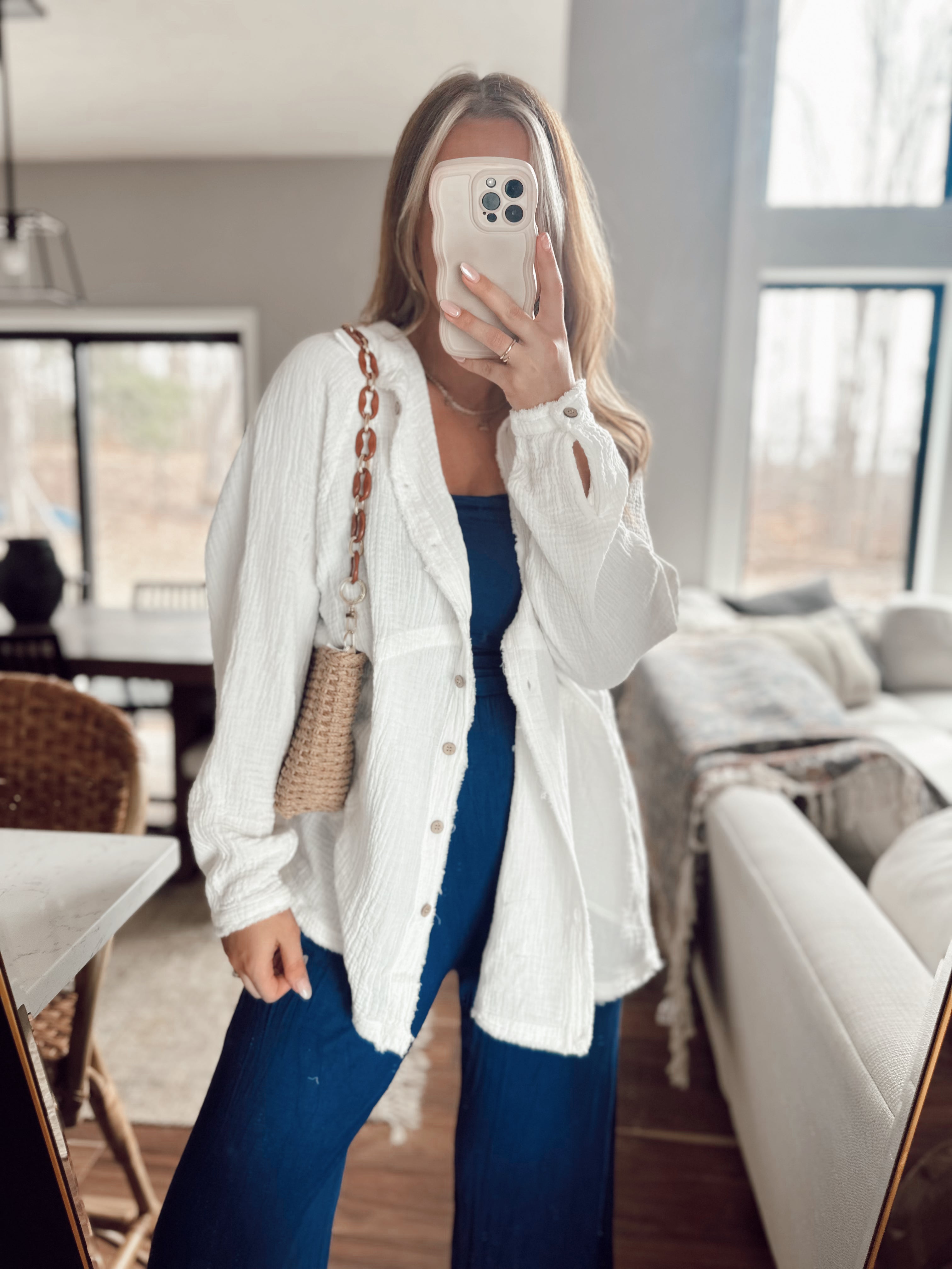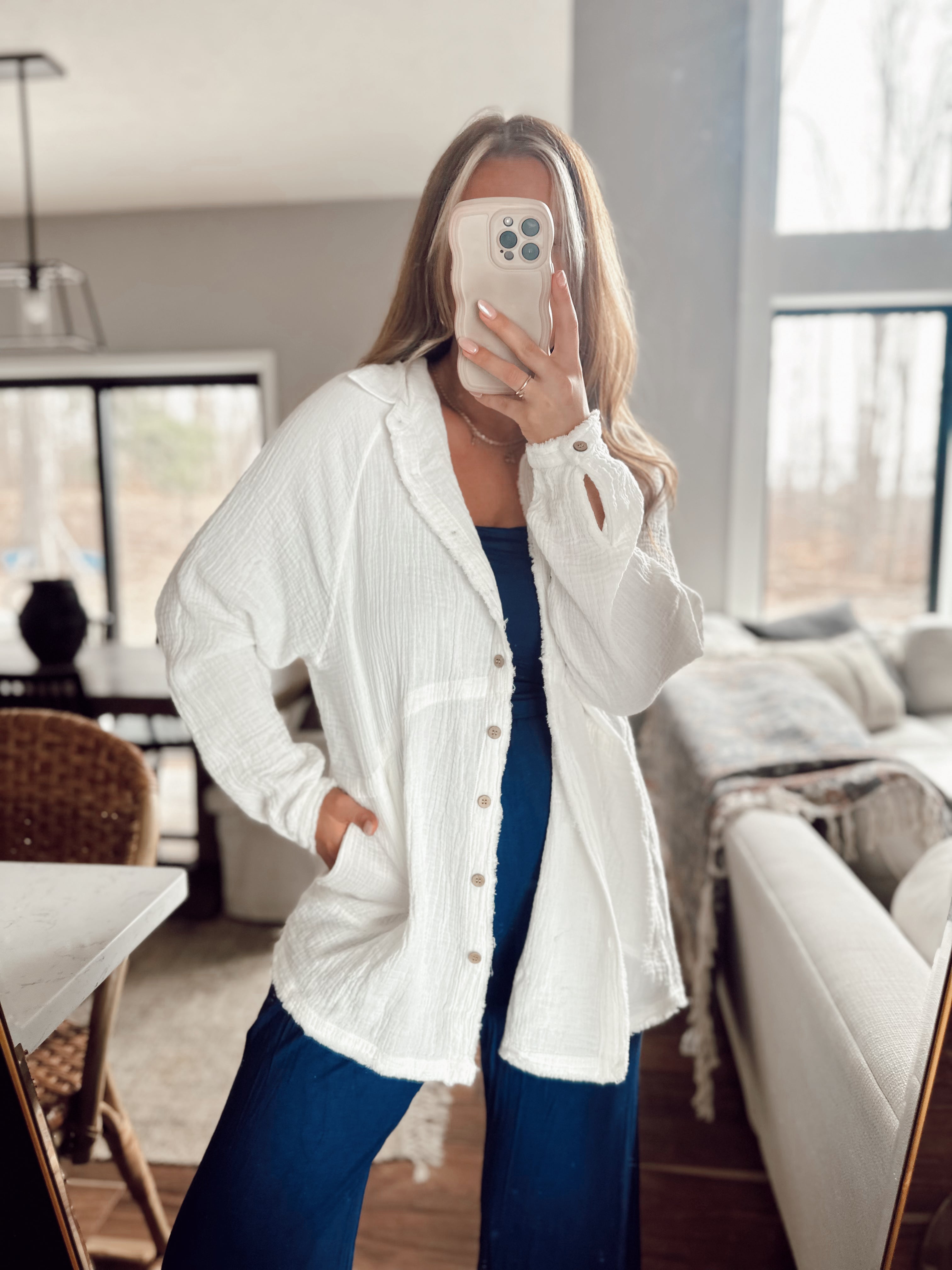 Alexis Off White Oversized Gauze Button-Up