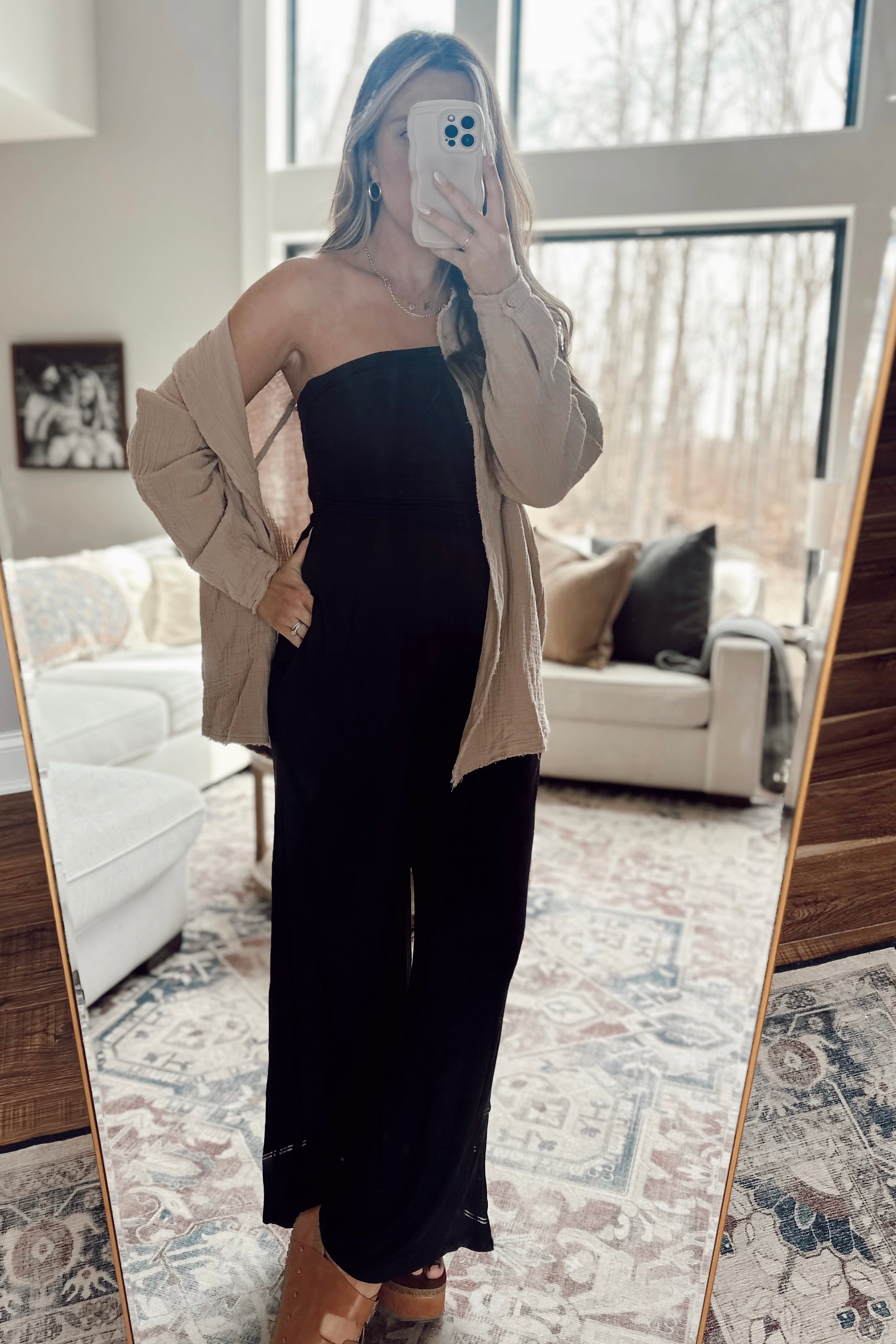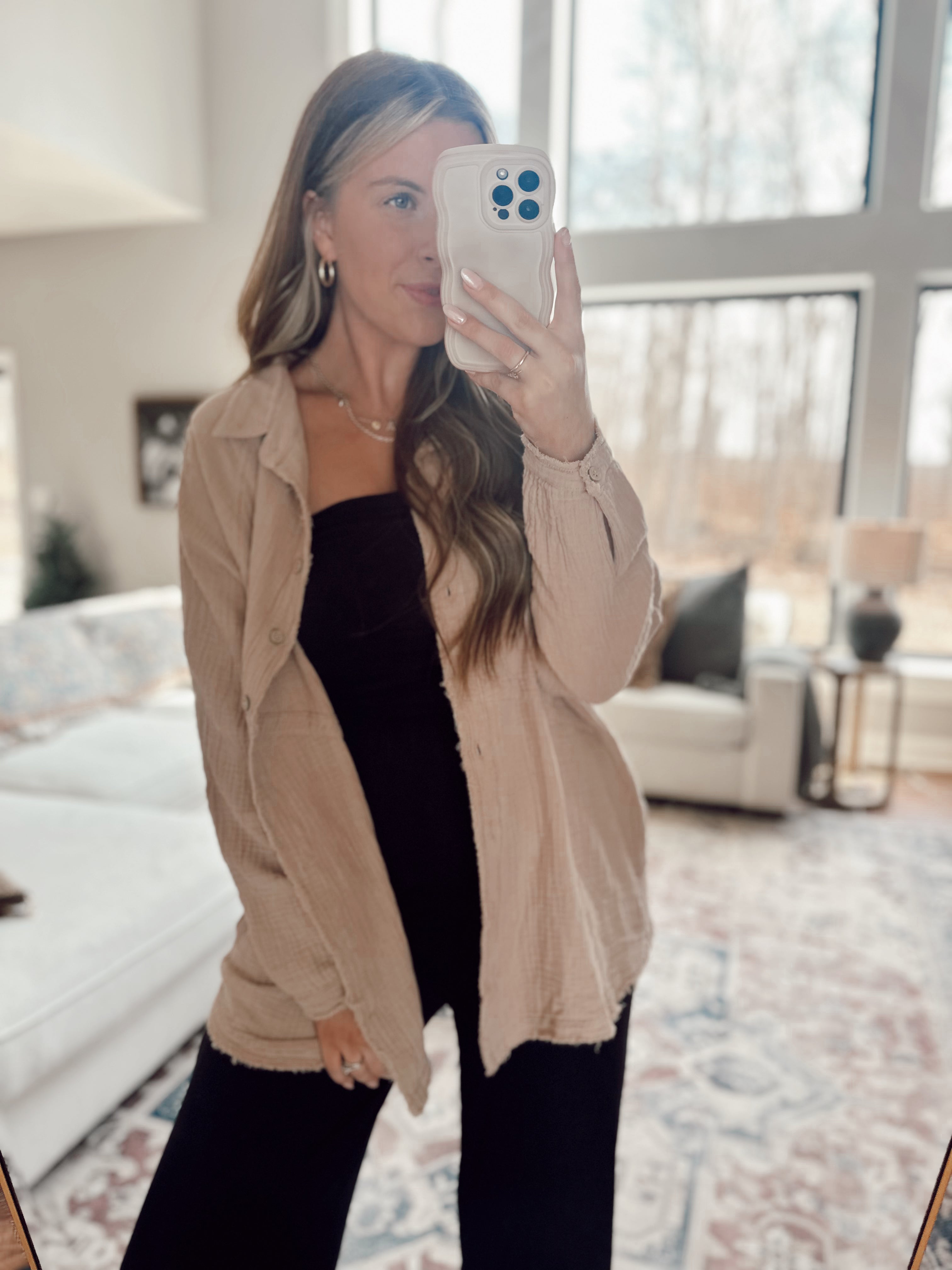 Alexis Mocha Oversized Gauze Button-Up
