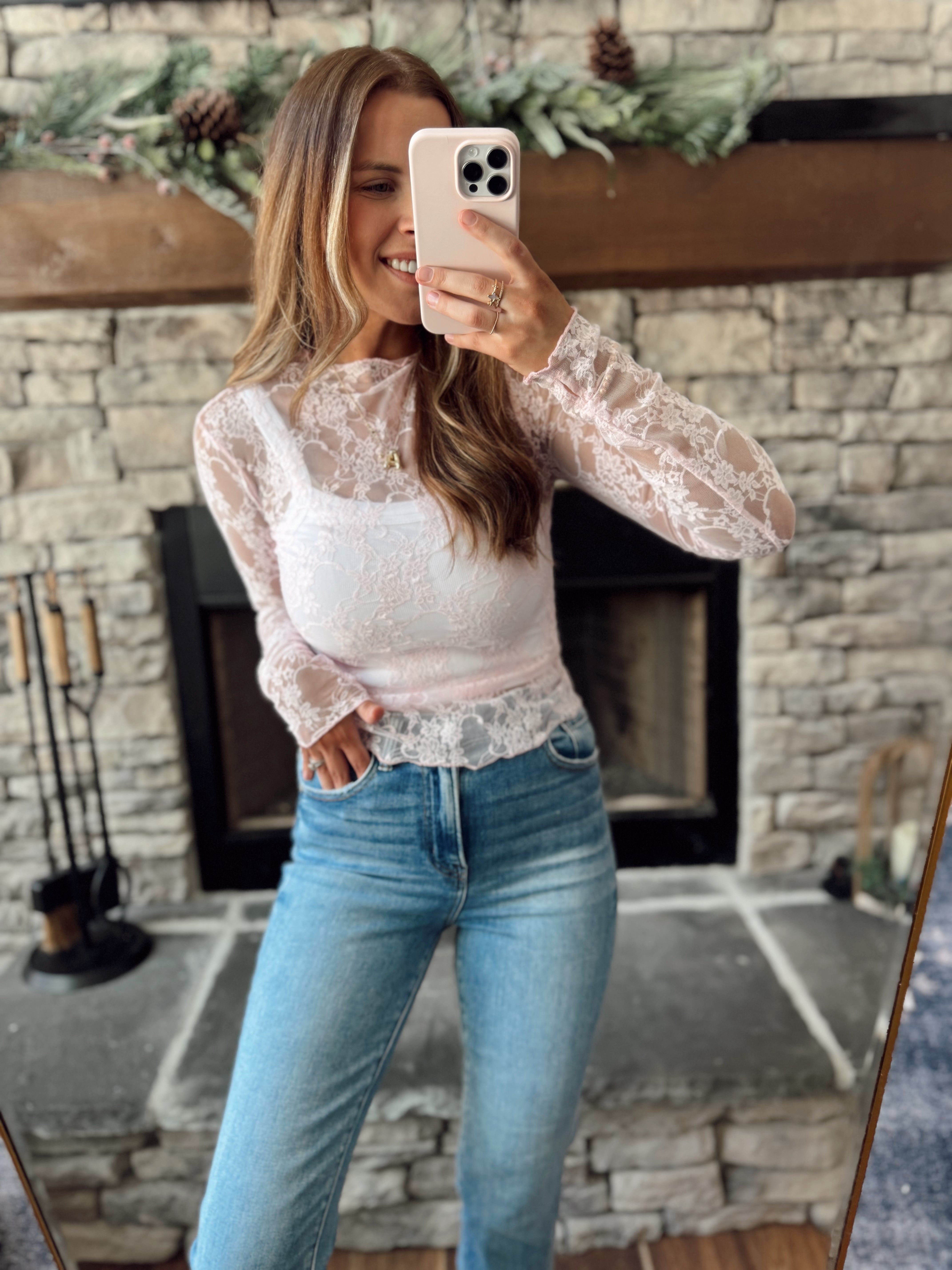 Going West Sage Flower Eyelet Ruffle Pocket Button Down