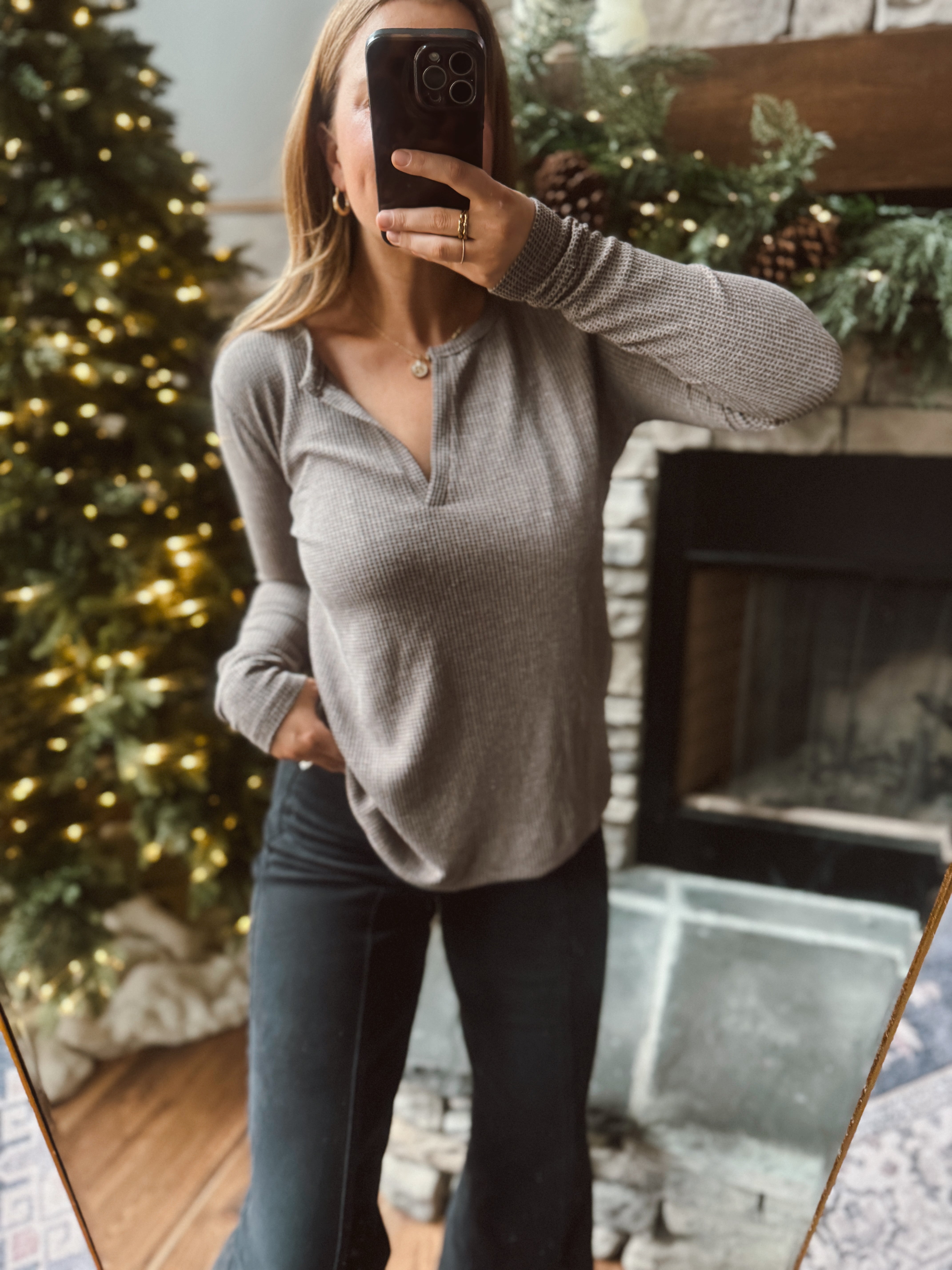 Oatmeal Mineral-Washed Crew Neck Long Sleeve
