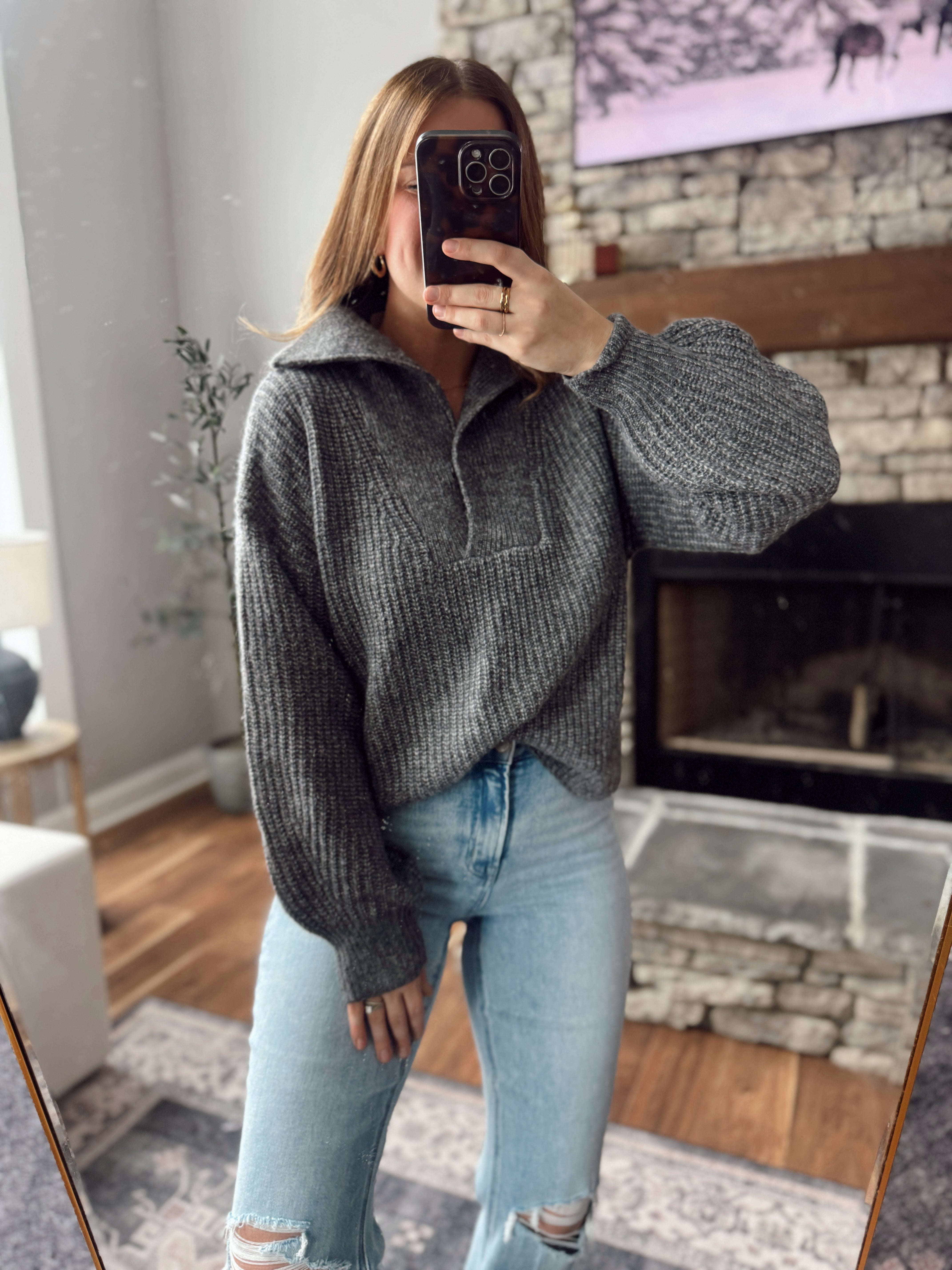 Charcoal Danae Henley Sweater