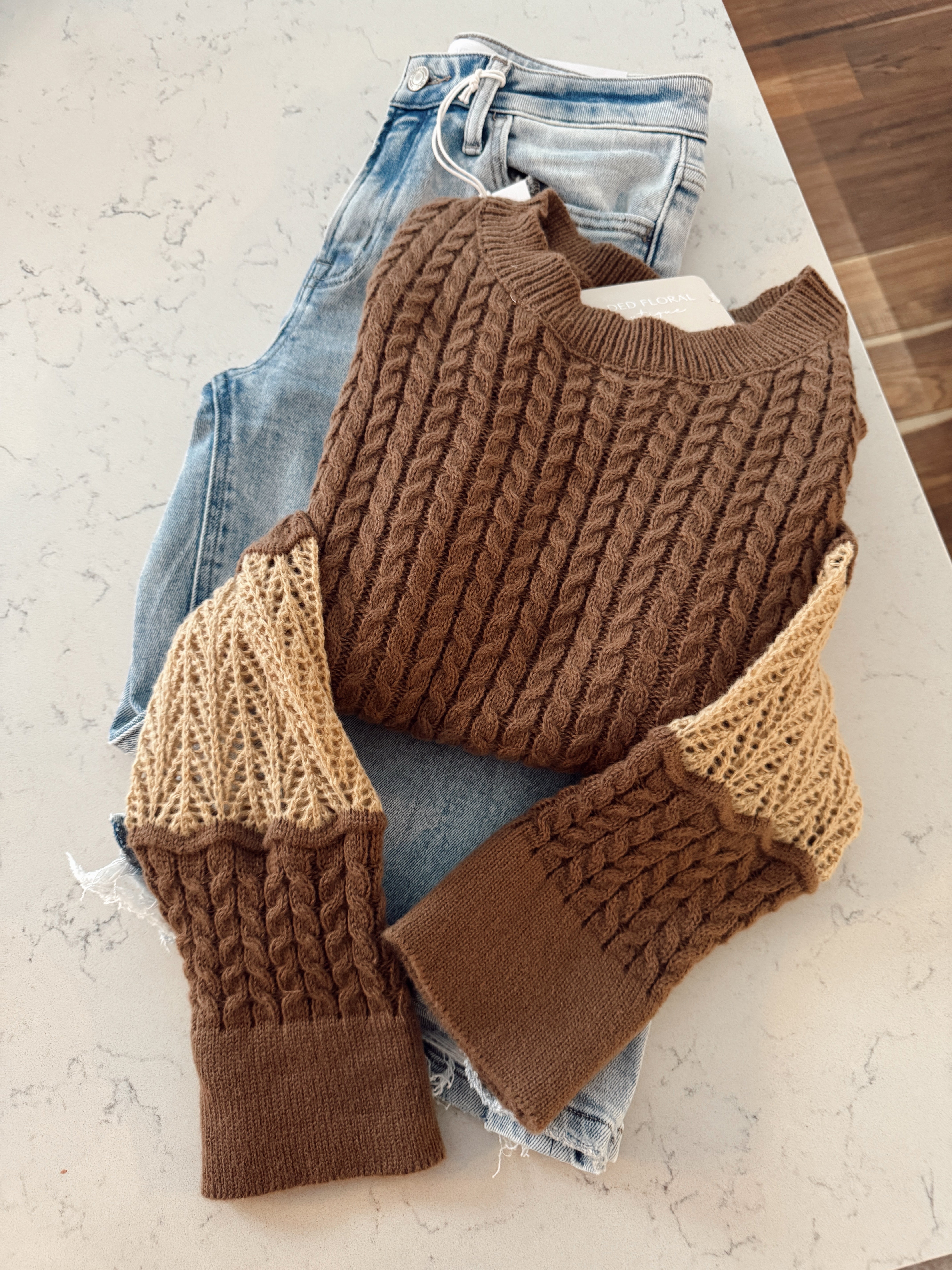 Mocha Colorblock Cable Knit Sweater