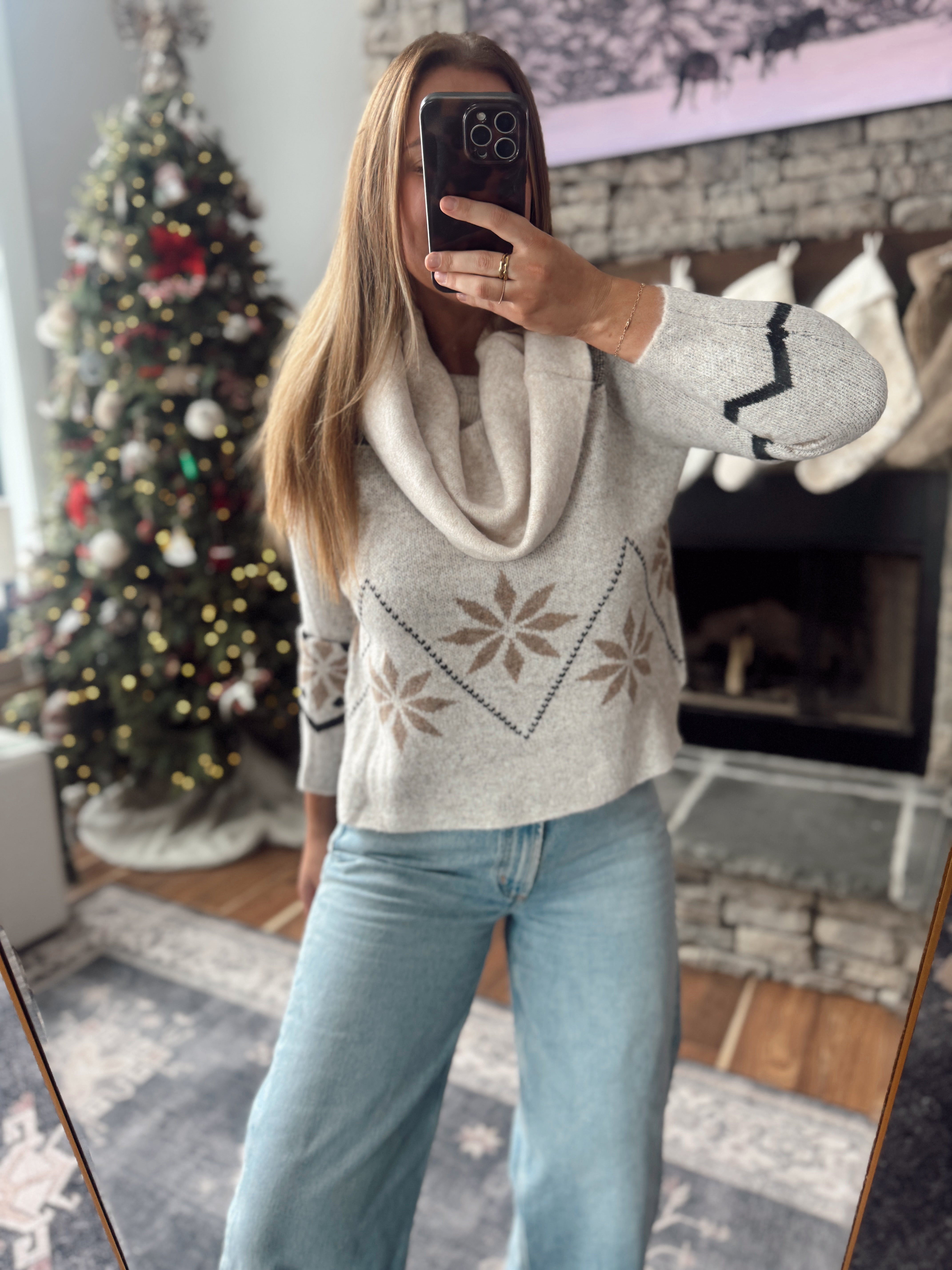 Oatmeal Nordic Shawl Collar Sweater