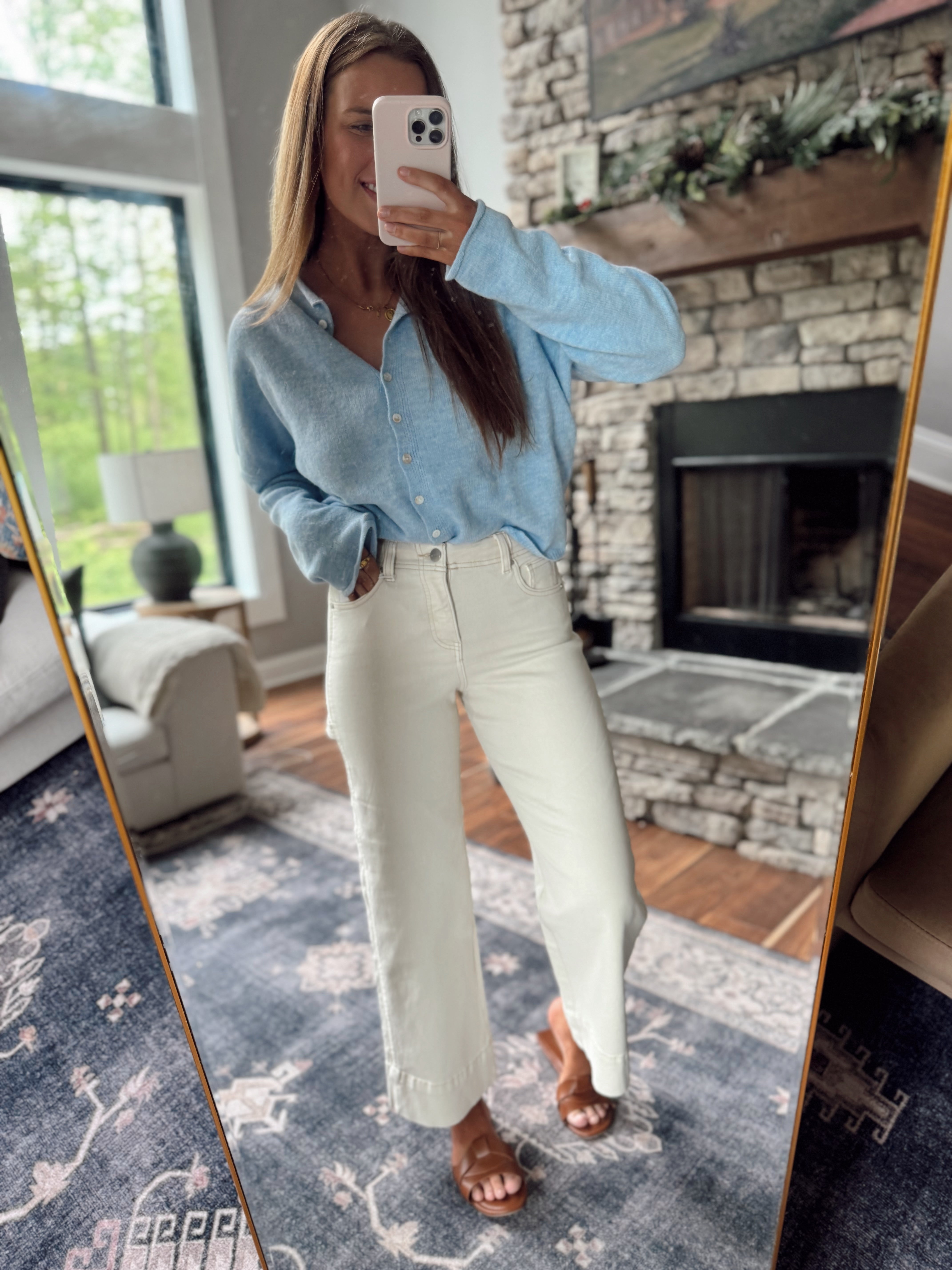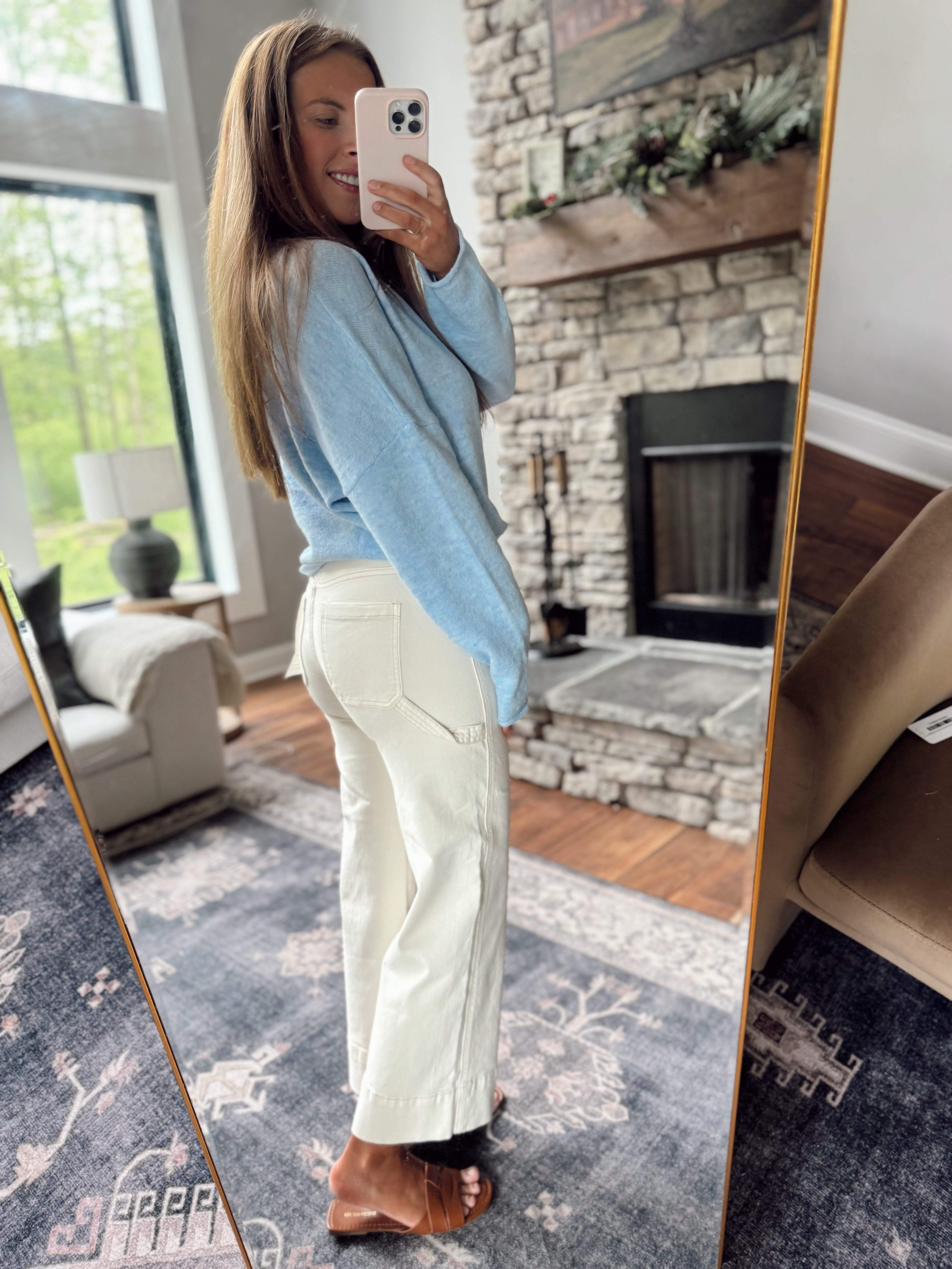Risen Ivory Tummy Control HR Crop Wide Pants