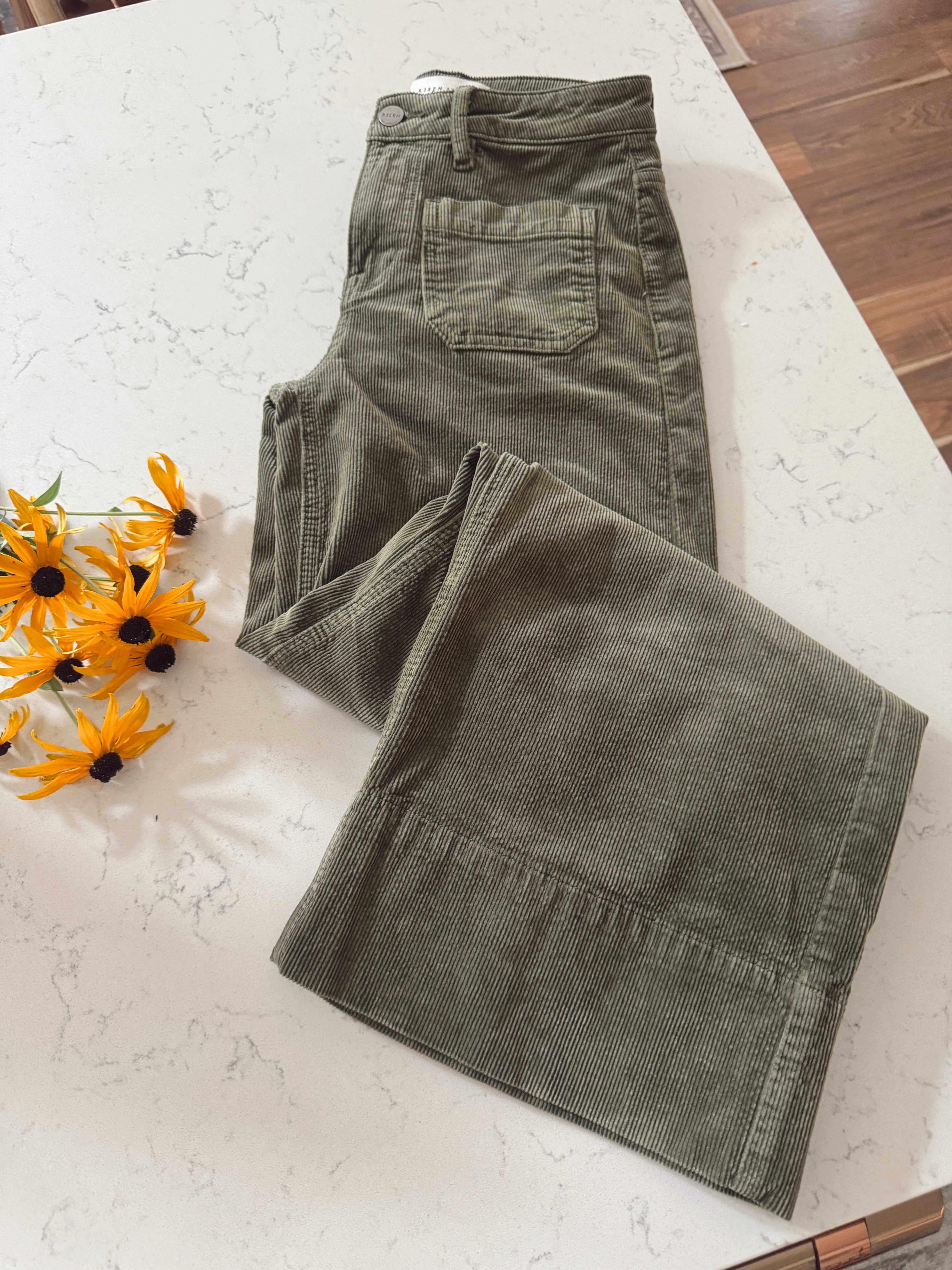 Risen Moss HR Crop Wide Patch Pocket Corduroy Pants