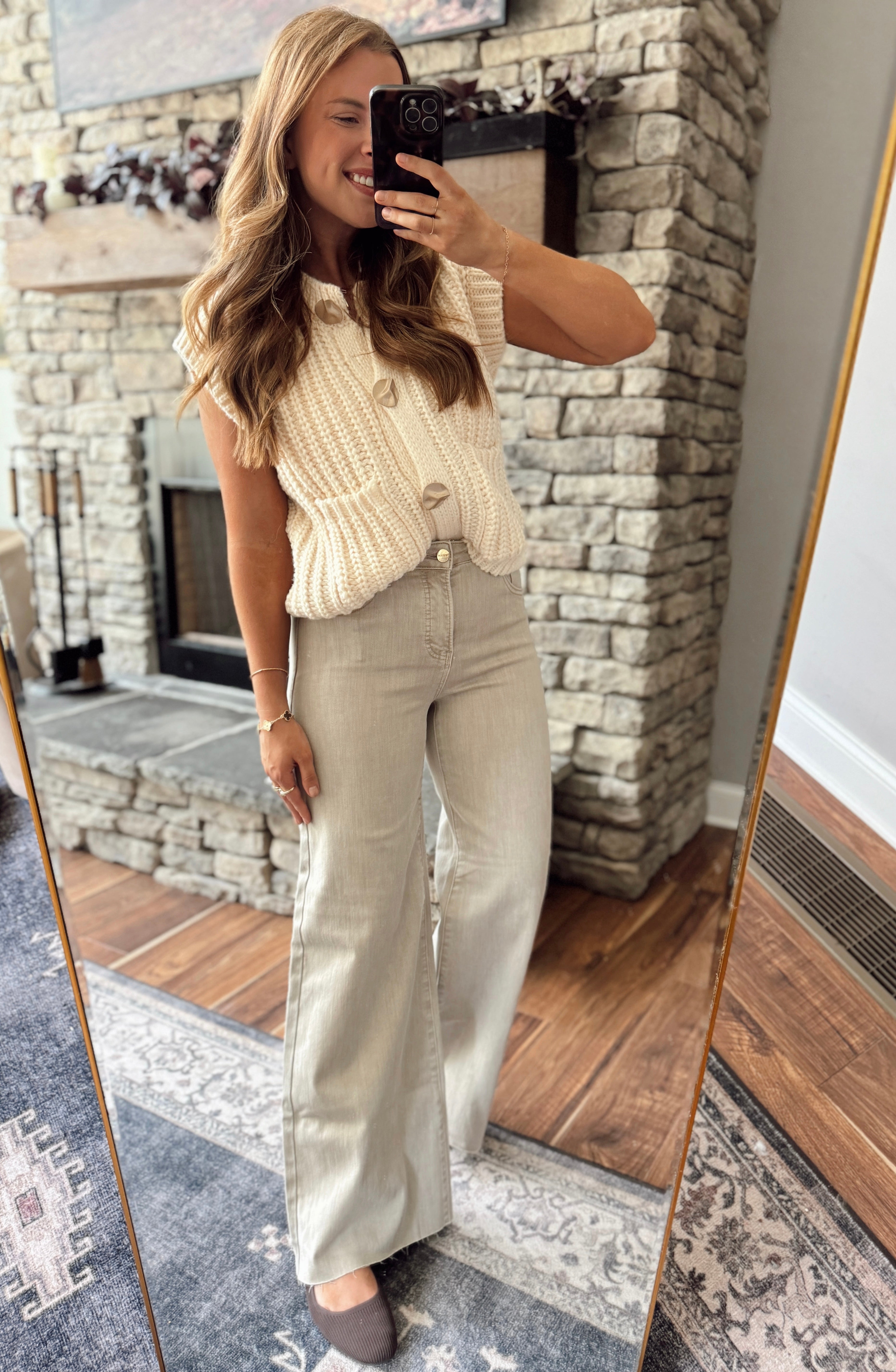 Get ready for a fashion-forward look (and a major confidence boost) with these Risen High Rise Tummy Control Wide Leg Pants. In stretchy taupe material with a subtle shimmer, these pants offer both style and comfort. The wide leg design and tummy control feature will have you feeling like a fashion icon.