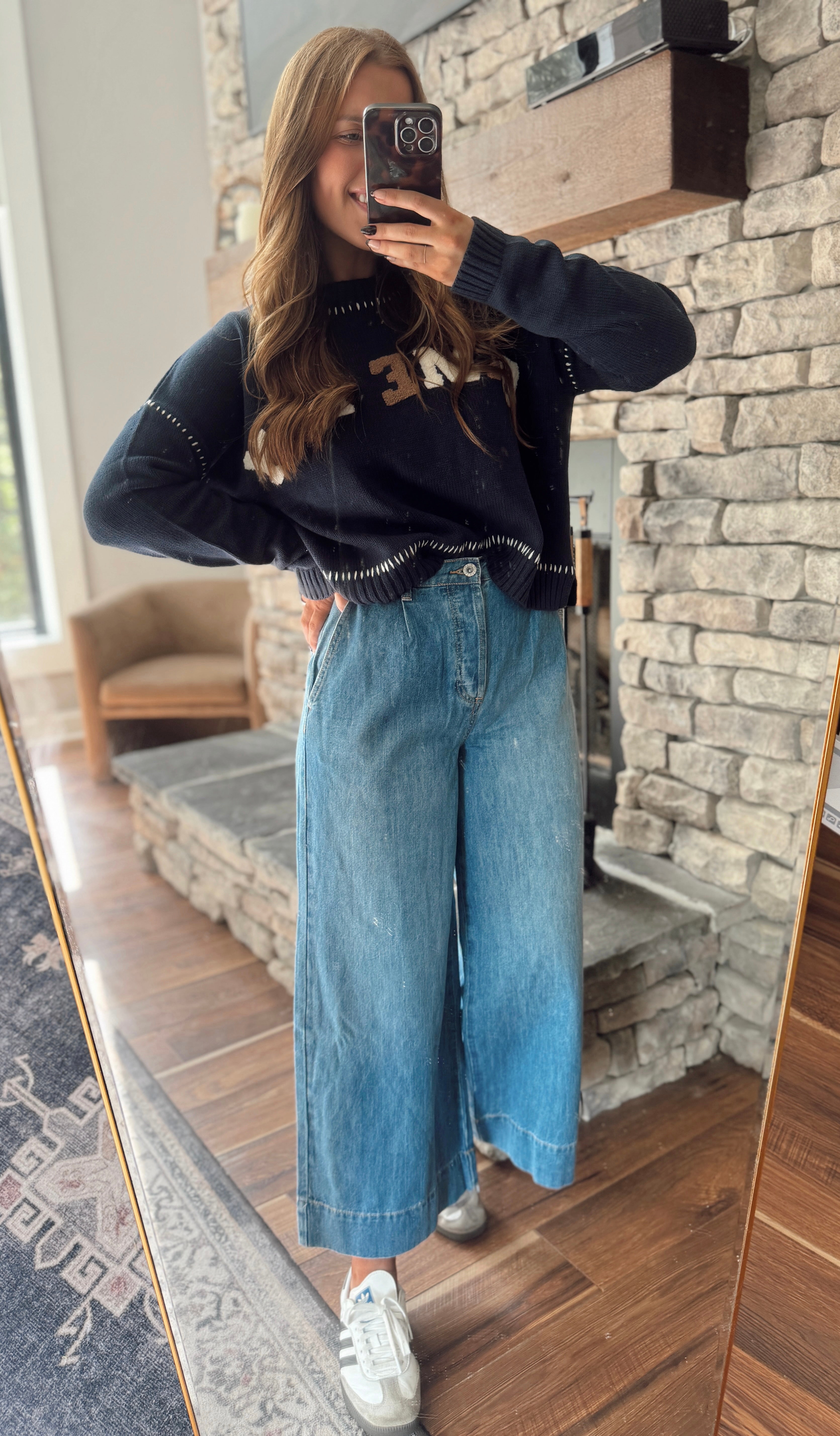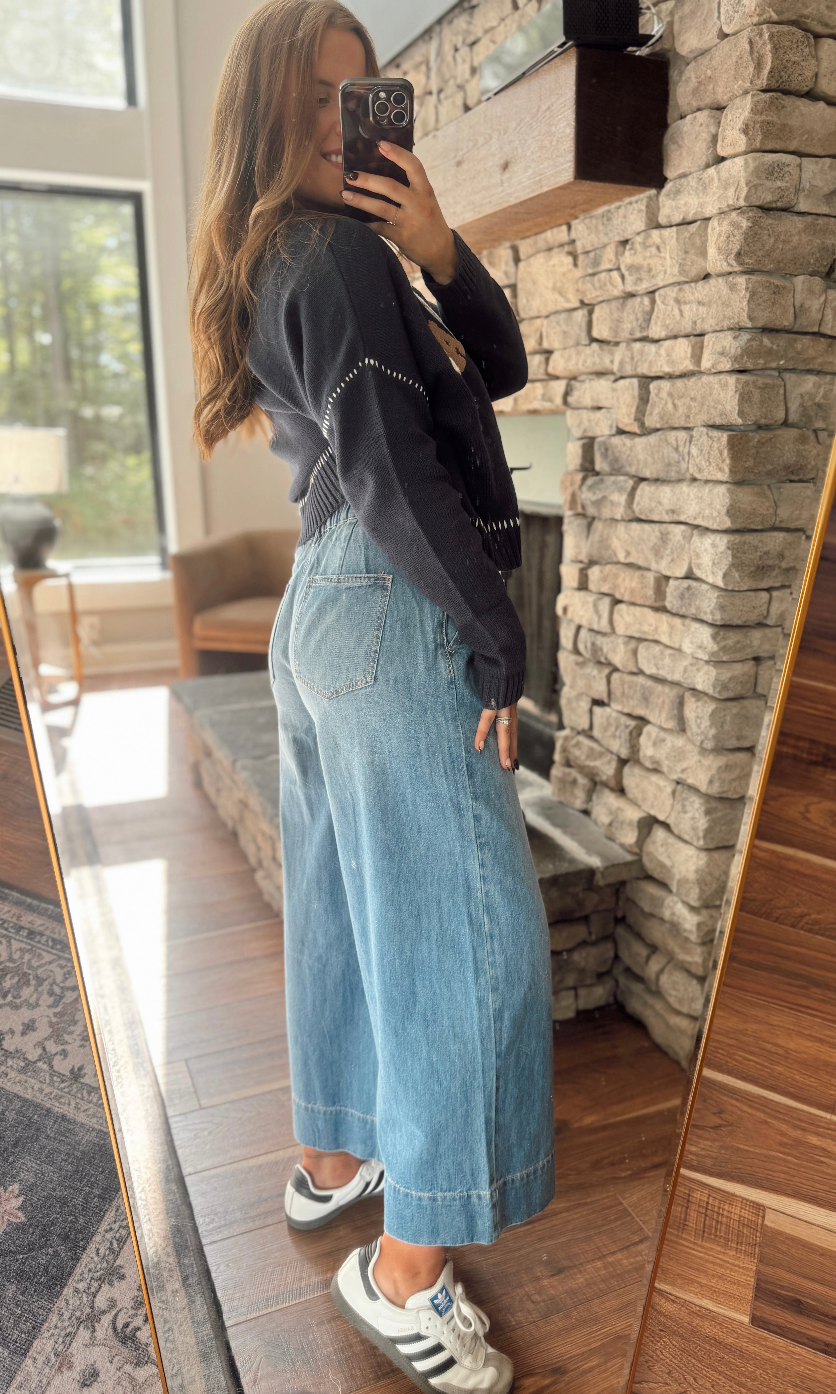 Your new go-to denim for an effortlessly cool fit. These pants feature a relaxed wide leg with just the right amount of structure, making them comfy and flattering. Designed with an elastic back waistband for extra comfort but also a functional button + fly closure in the front for that true denim look.