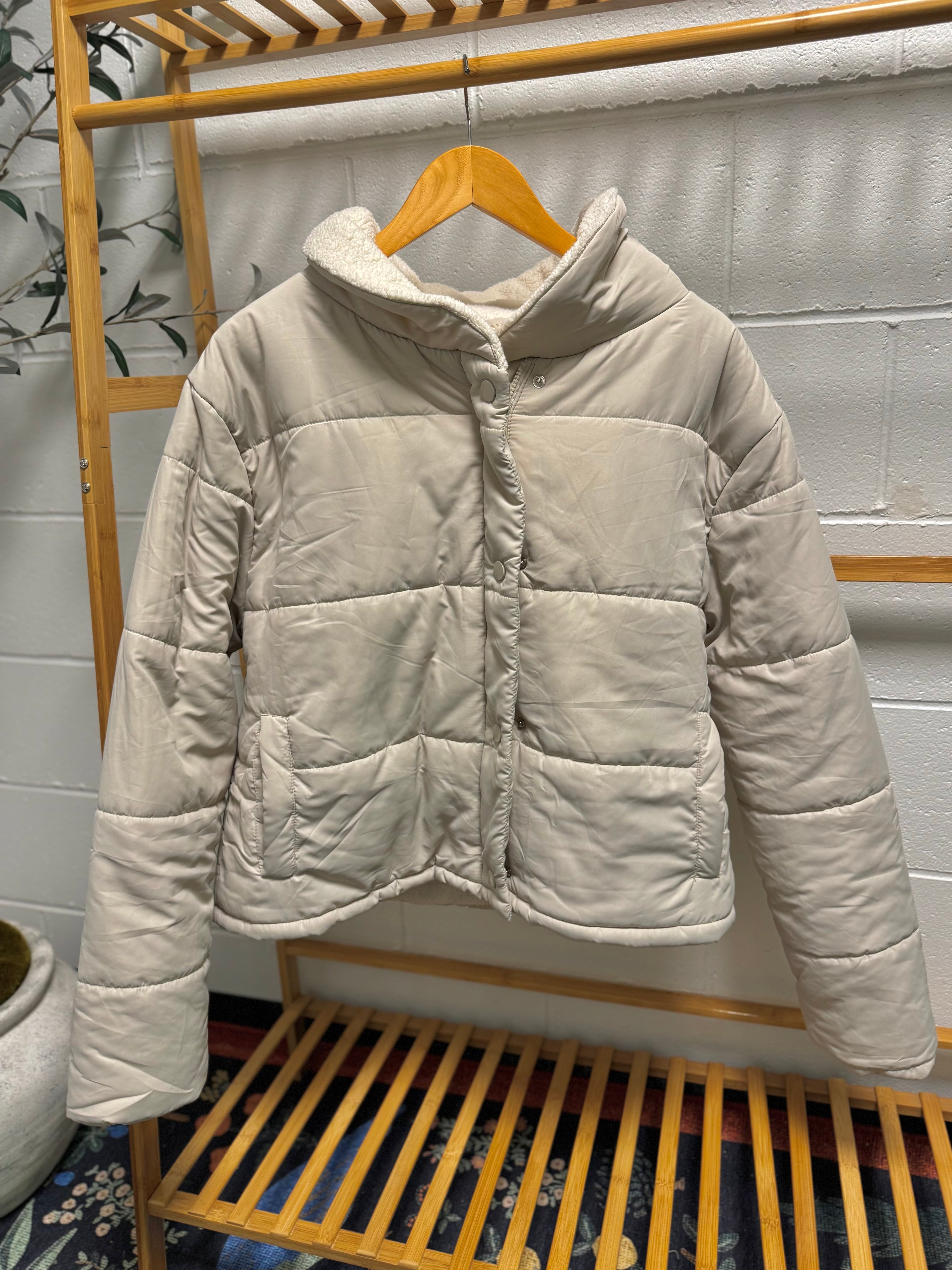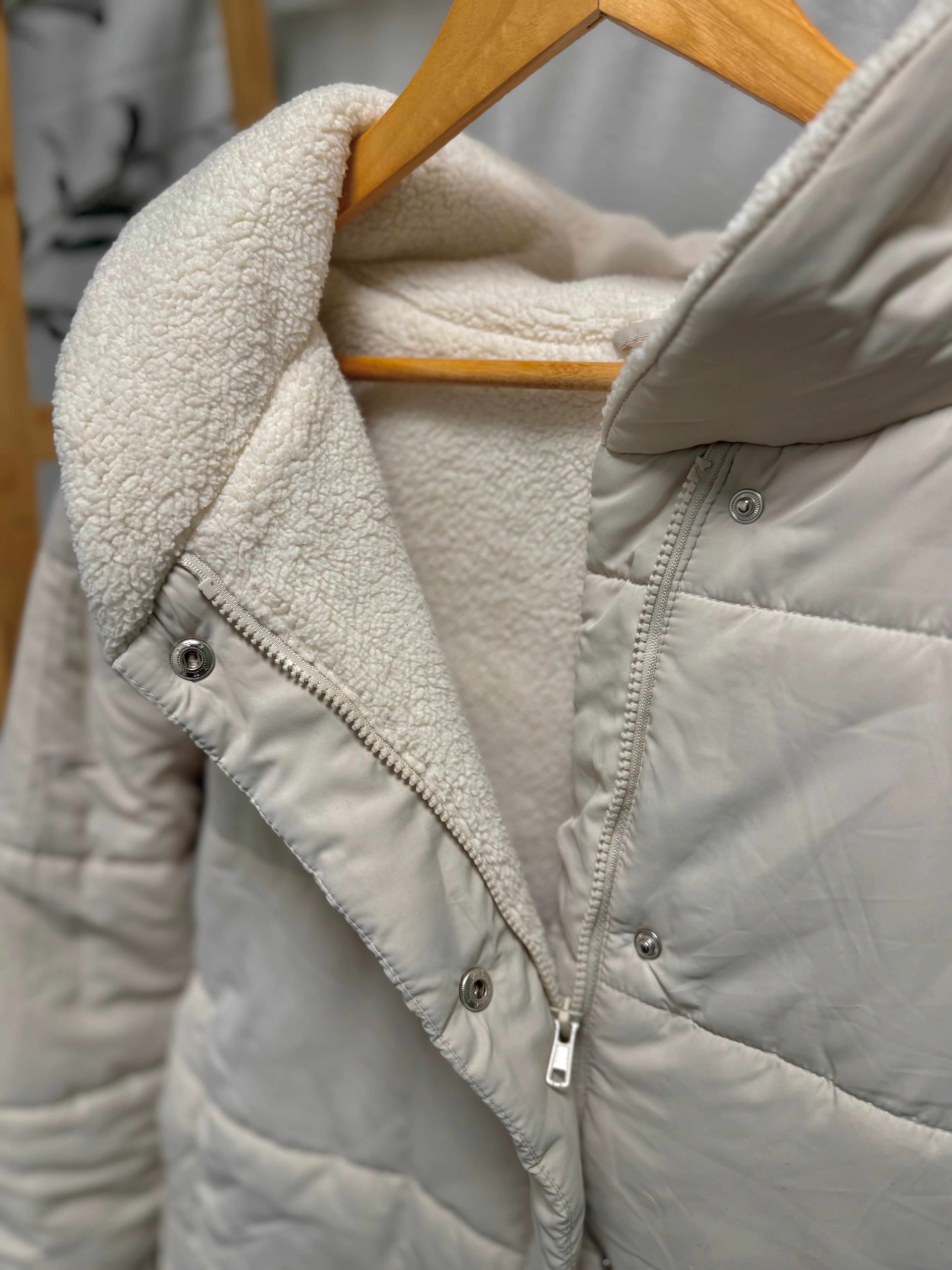Cream Fleece Lined Puffer Jacket
