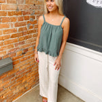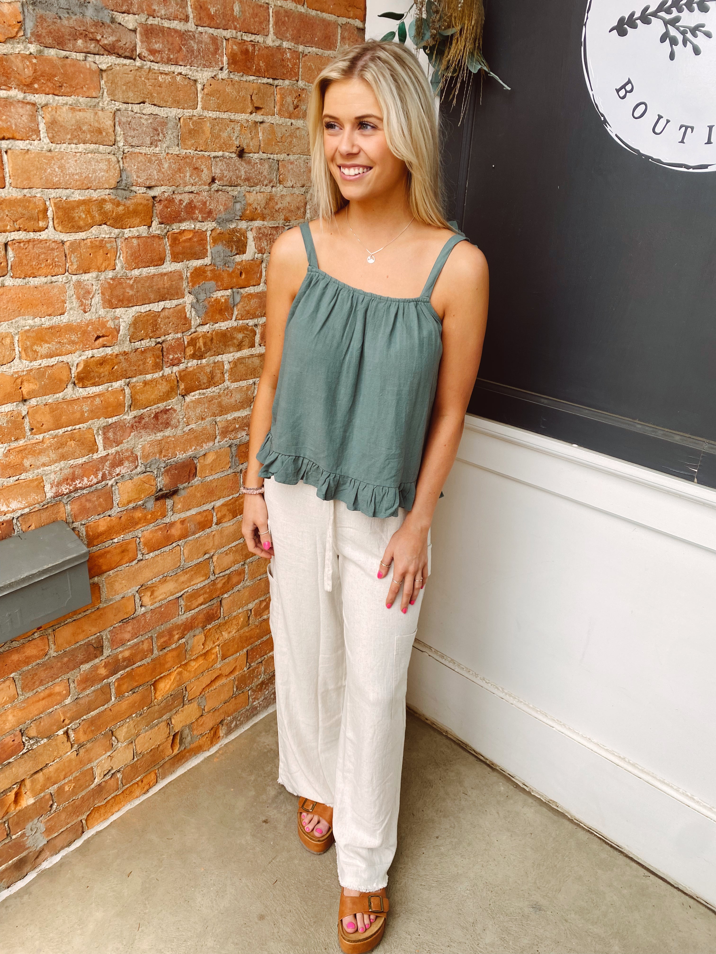 Breezy Aesthetic Sage Ruffle Tie-Strap Tank