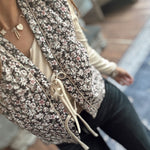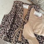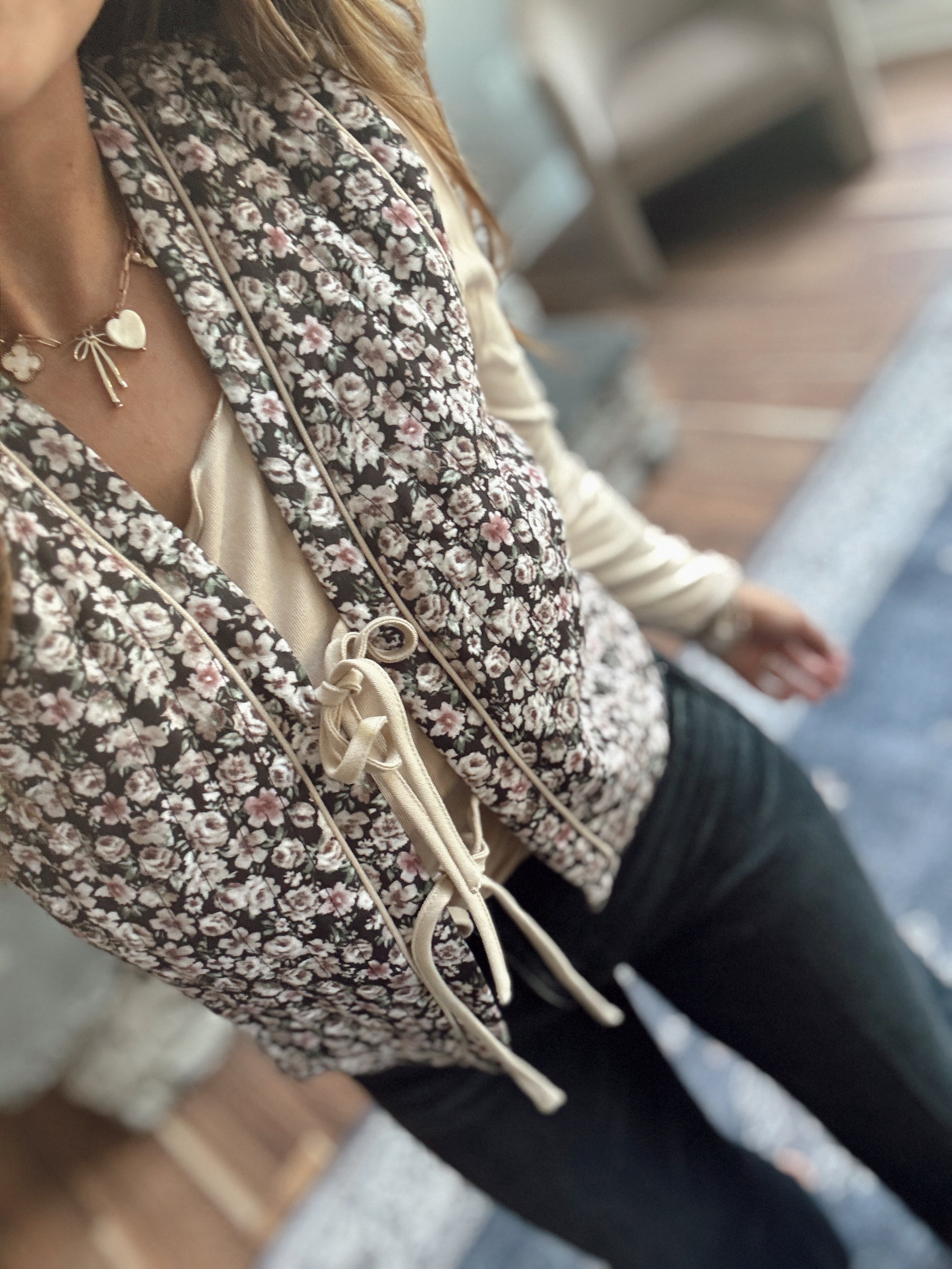 Add a touch of vintage charm to your fall layers with this floral lace-up vest. Featuring a quilted design, delicate rose-toned florals, and a cream tie-front detail, it’s the perfect piece to pair with long sleeves and denim. Whether you’re sipping cider or browsing the farmer’s market, this vest pulls the whole look together.