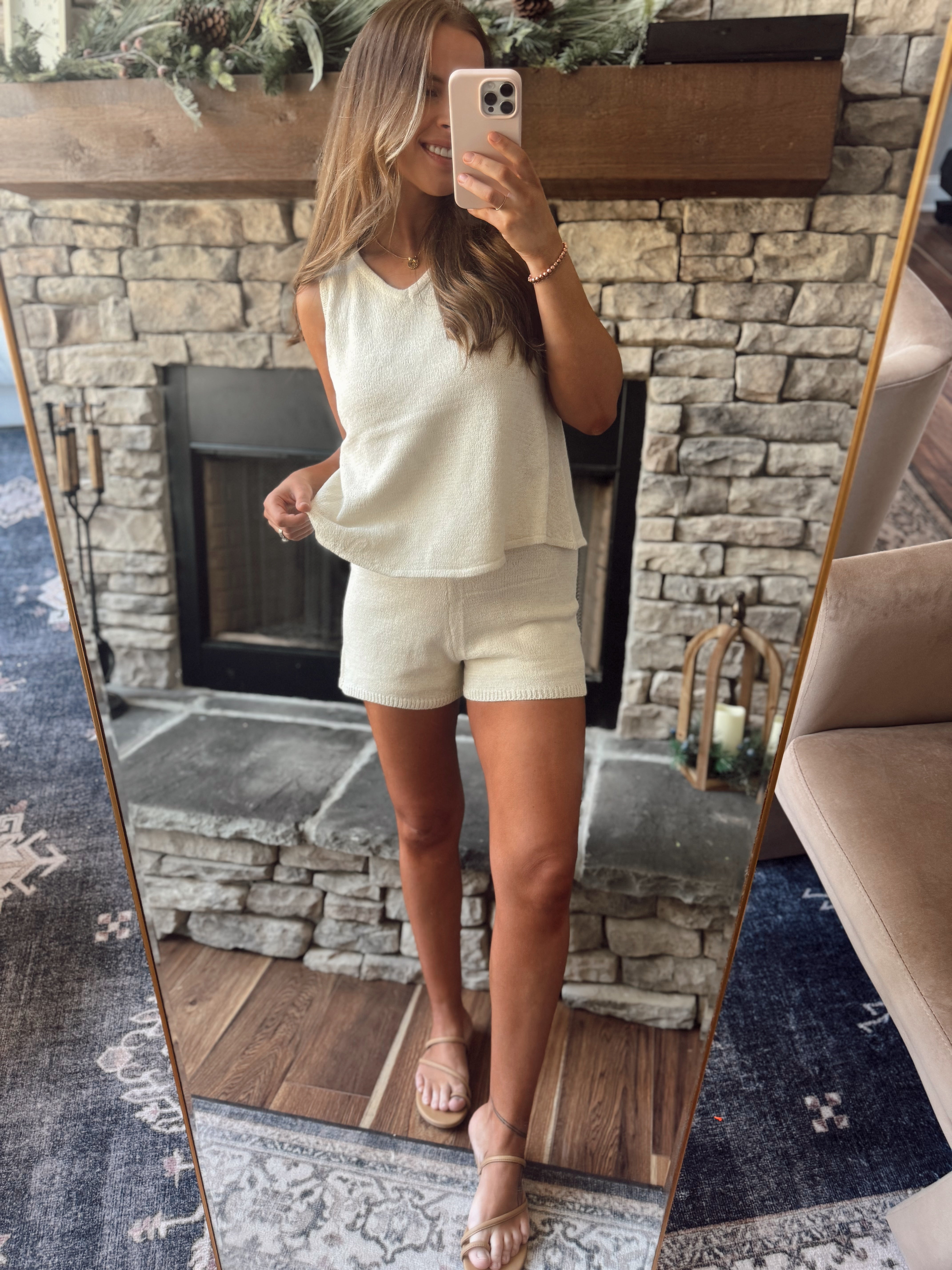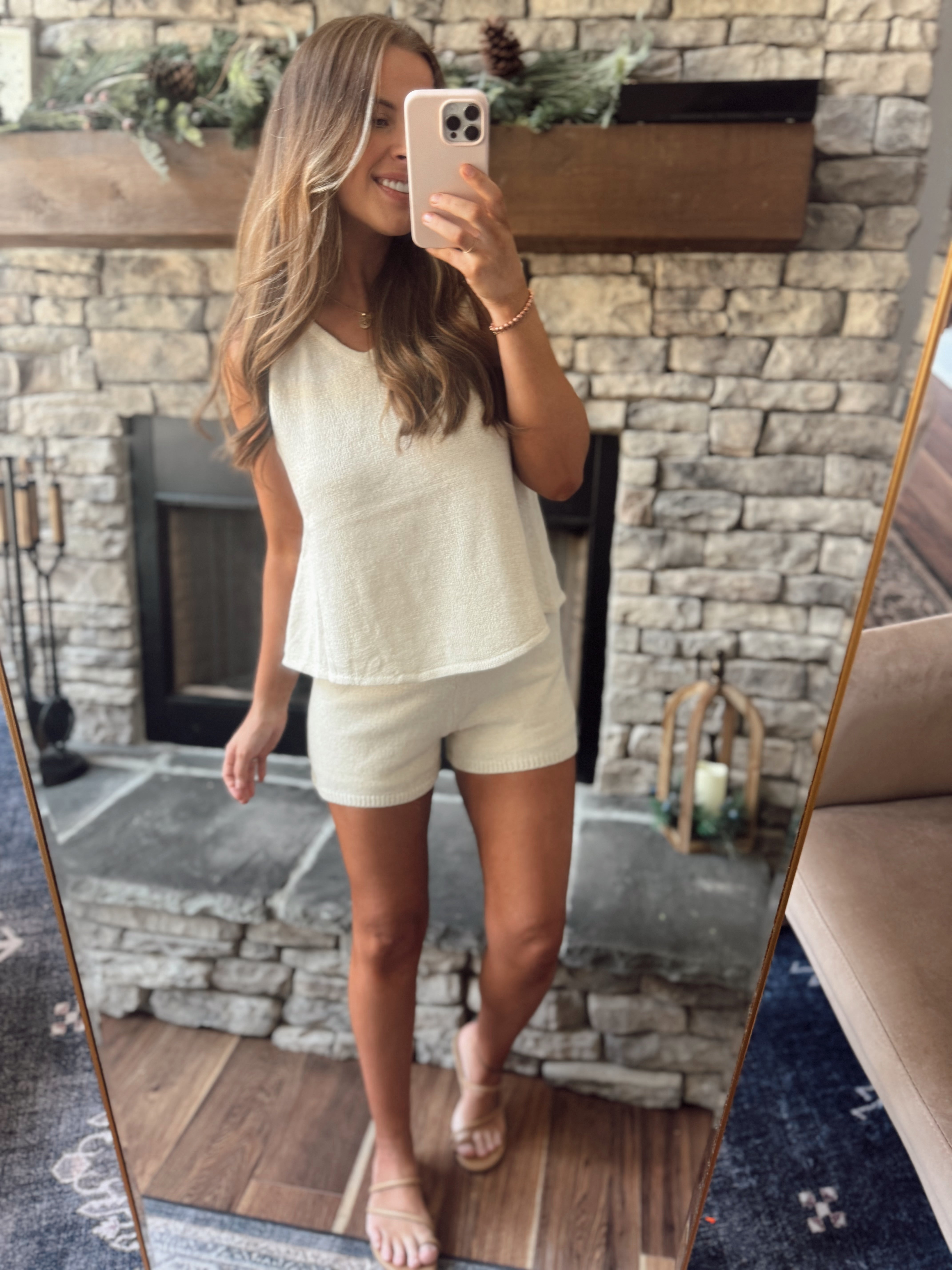 Cream & Cozy Tank and Shorts Sweater Set