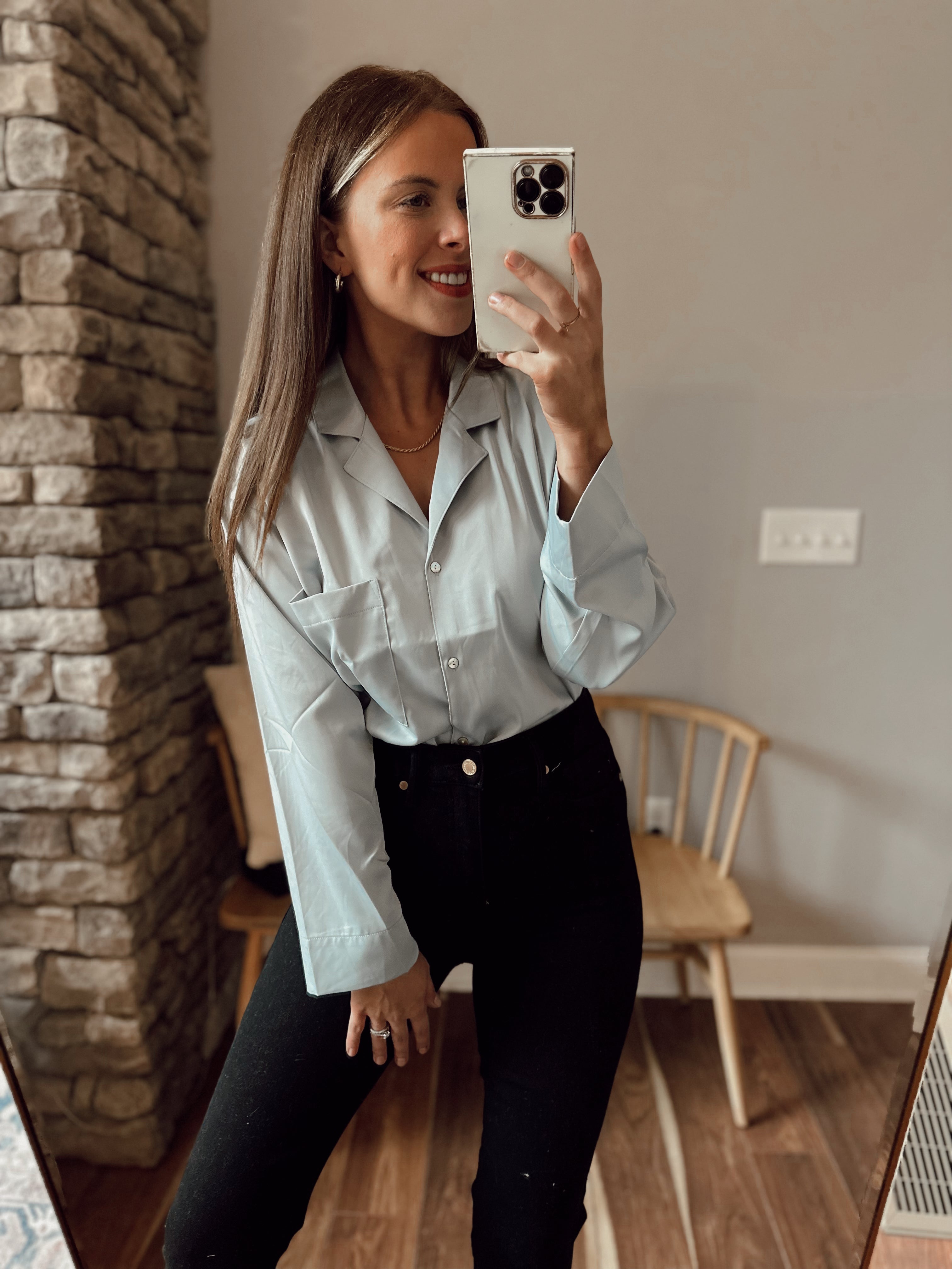Everyone absolutely needs a satin top for the upcoming season! A classic piece and the satin will level up your outfit. Oversized fit - can size down.