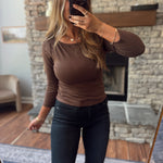 A layering essential you’ll wear on repeat. This chocolate brown long sleeve from Wishlist has that just-right fit for every day.