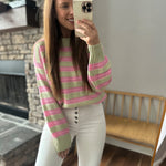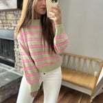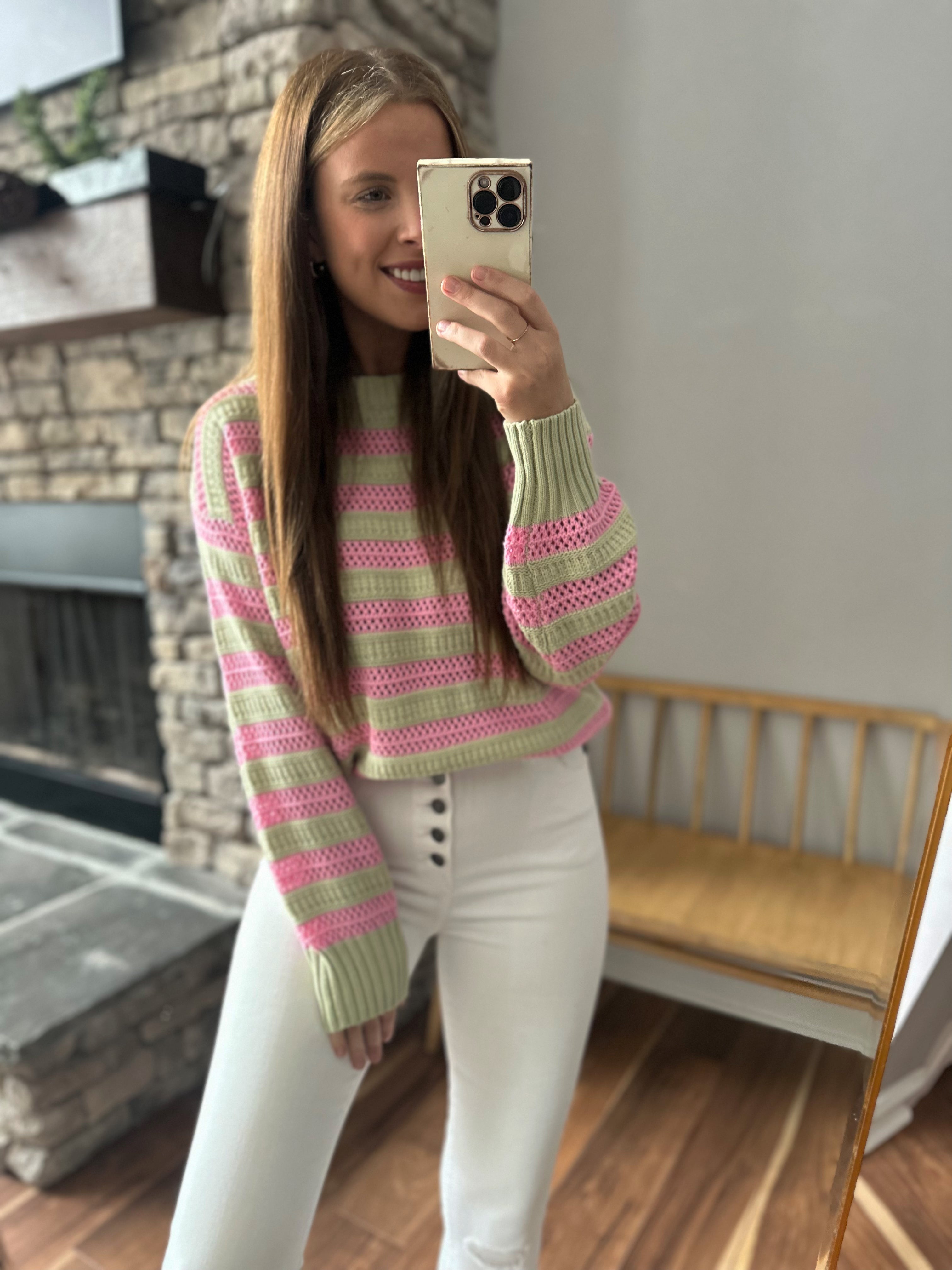 Flirting Fireside Sage/ Pink Crochet Stripe Sweater