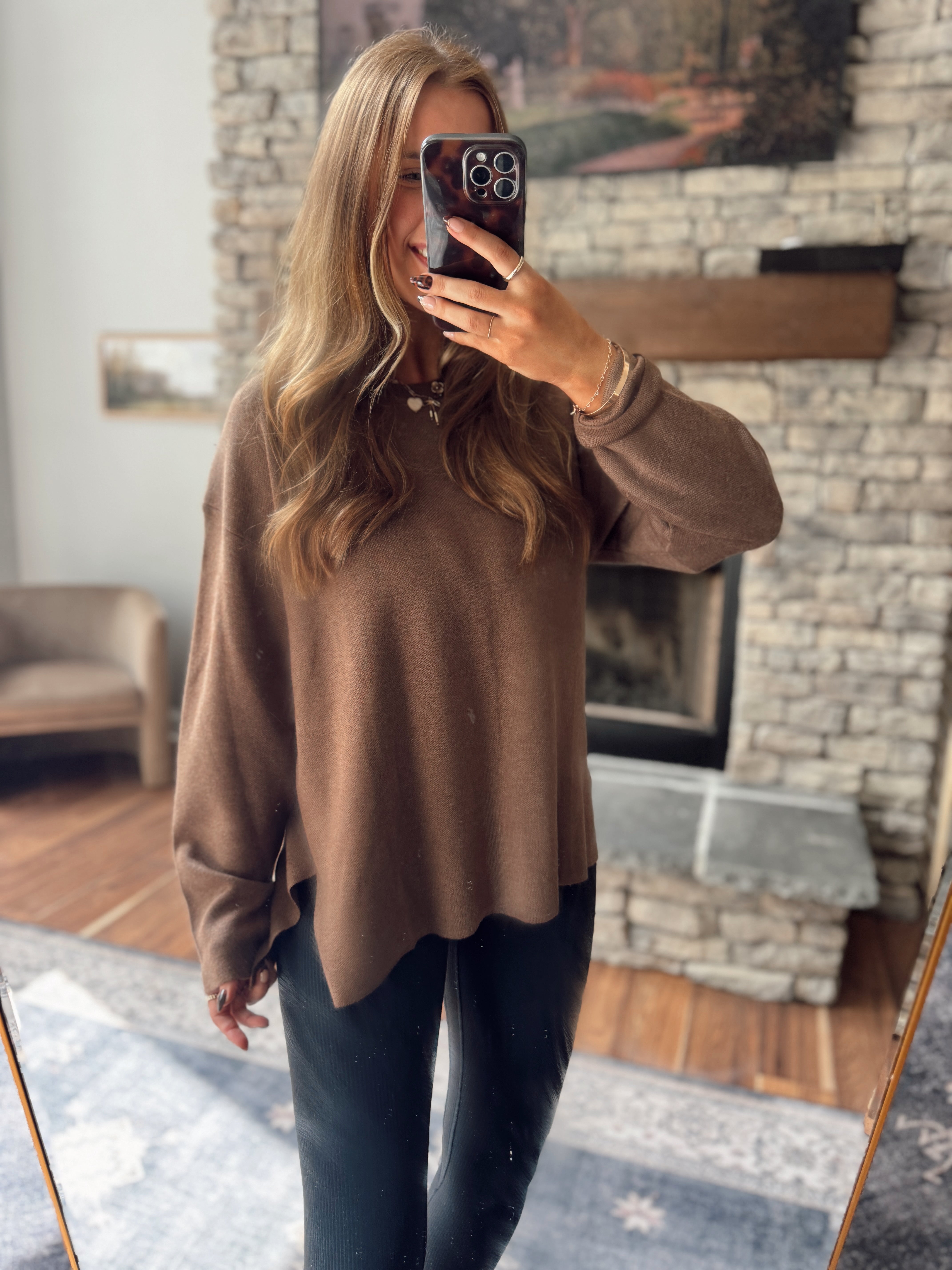 Wishlist !! Really great length in the back if that’s something you LOVE! More of an oversized fit - you can size down if you’d like!