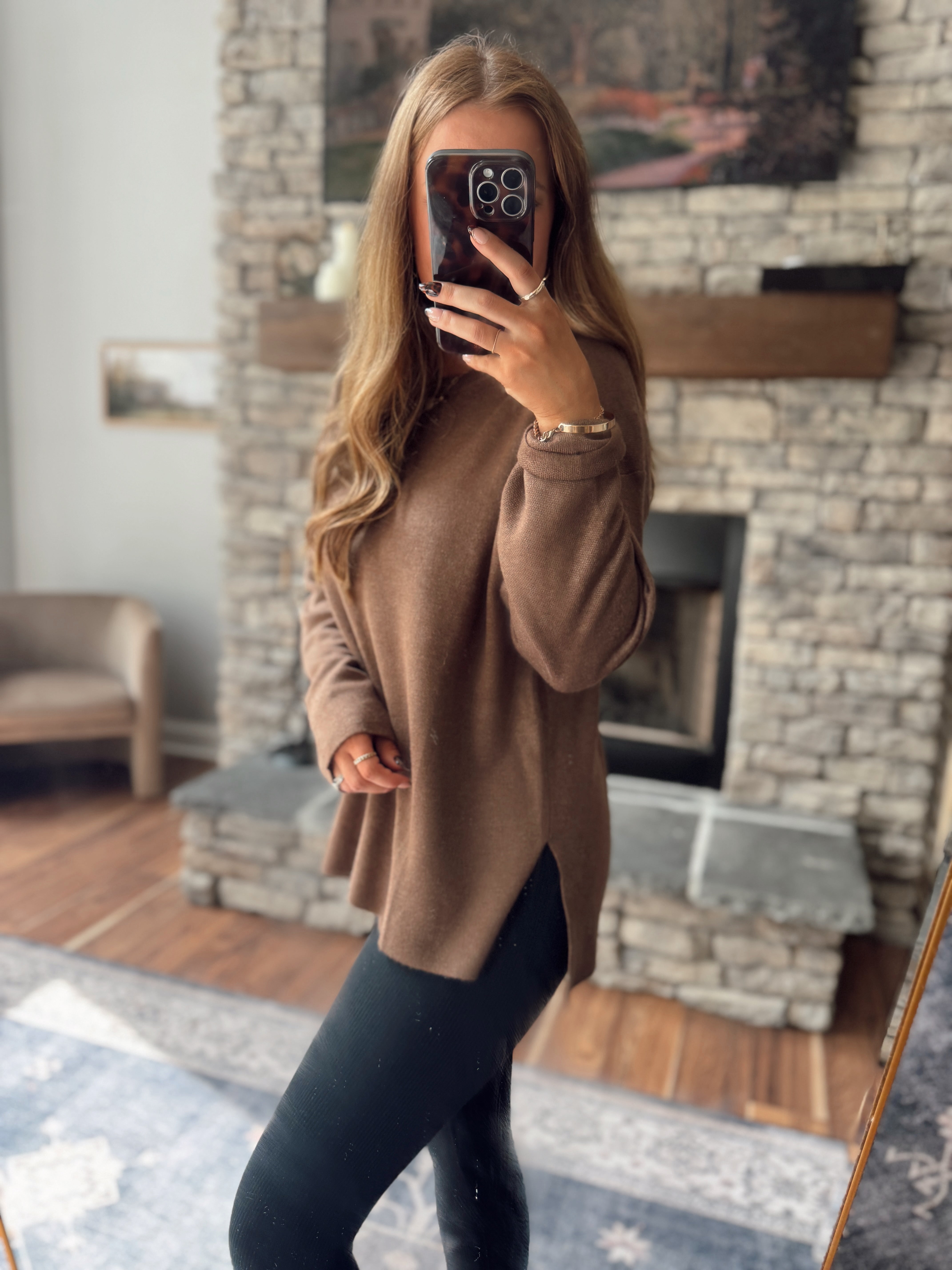Lexi Chocolate Drop-Shoulder Sweater