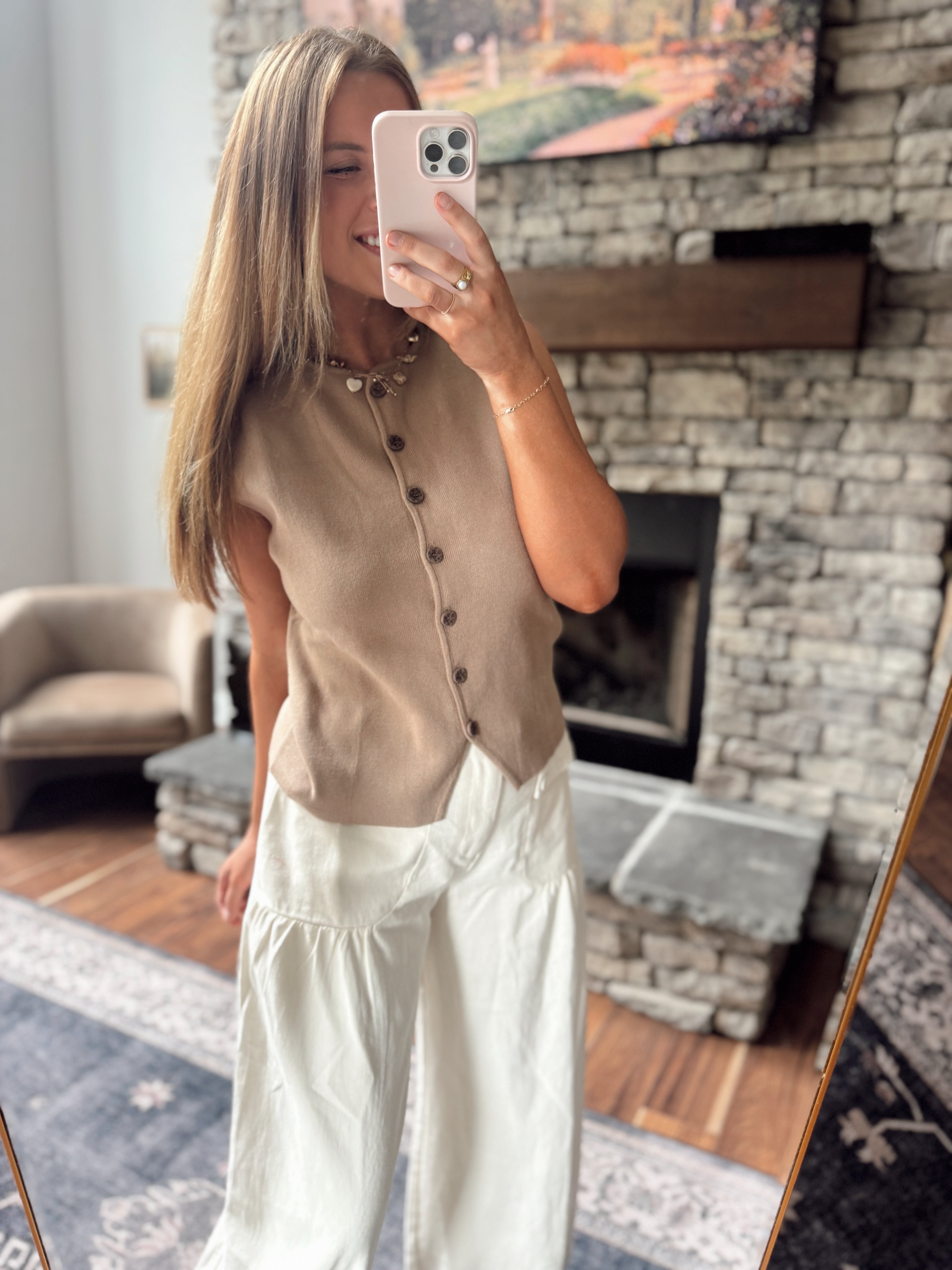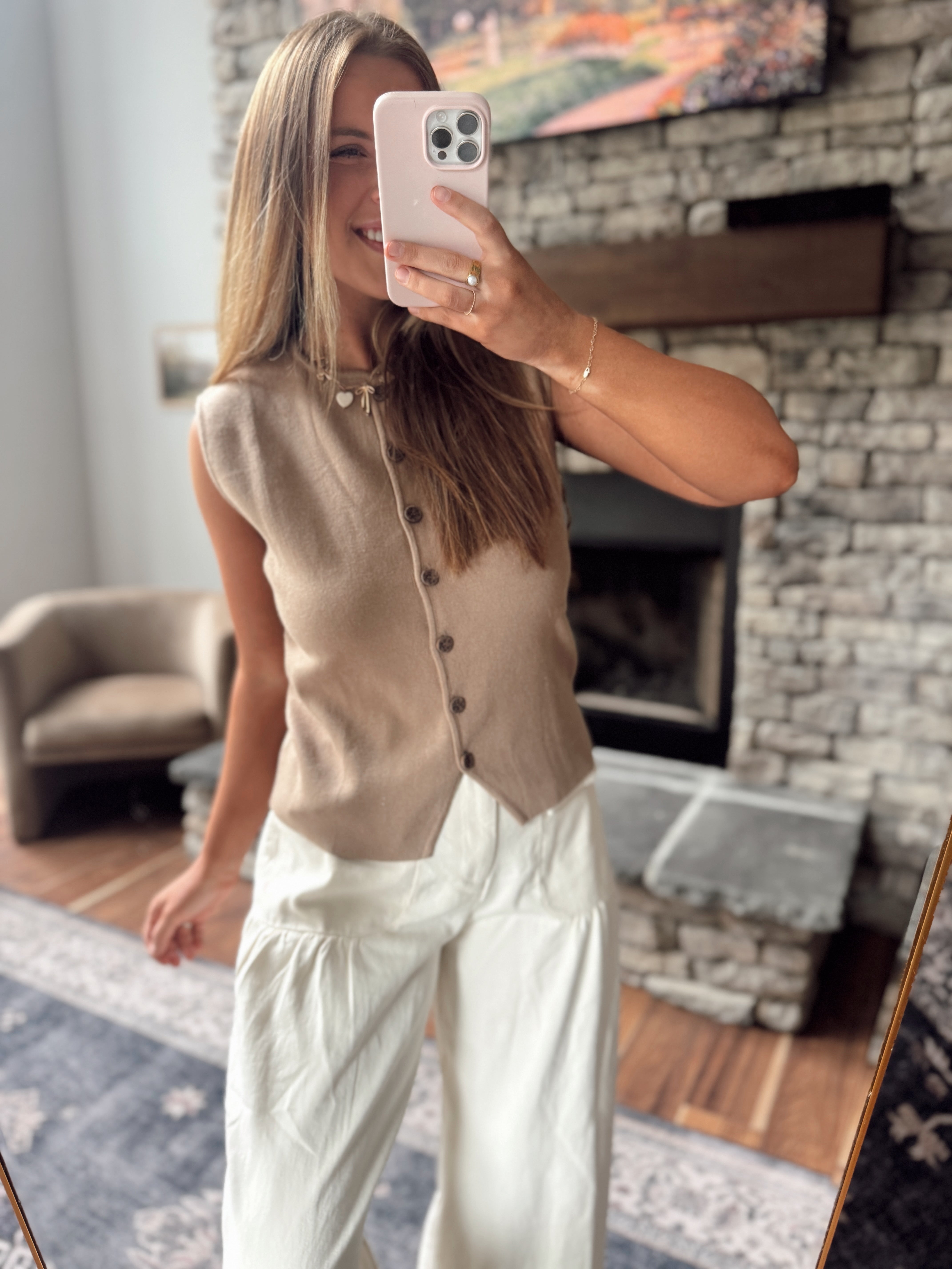 Mocha Jenafer Button Up Sweater Vest