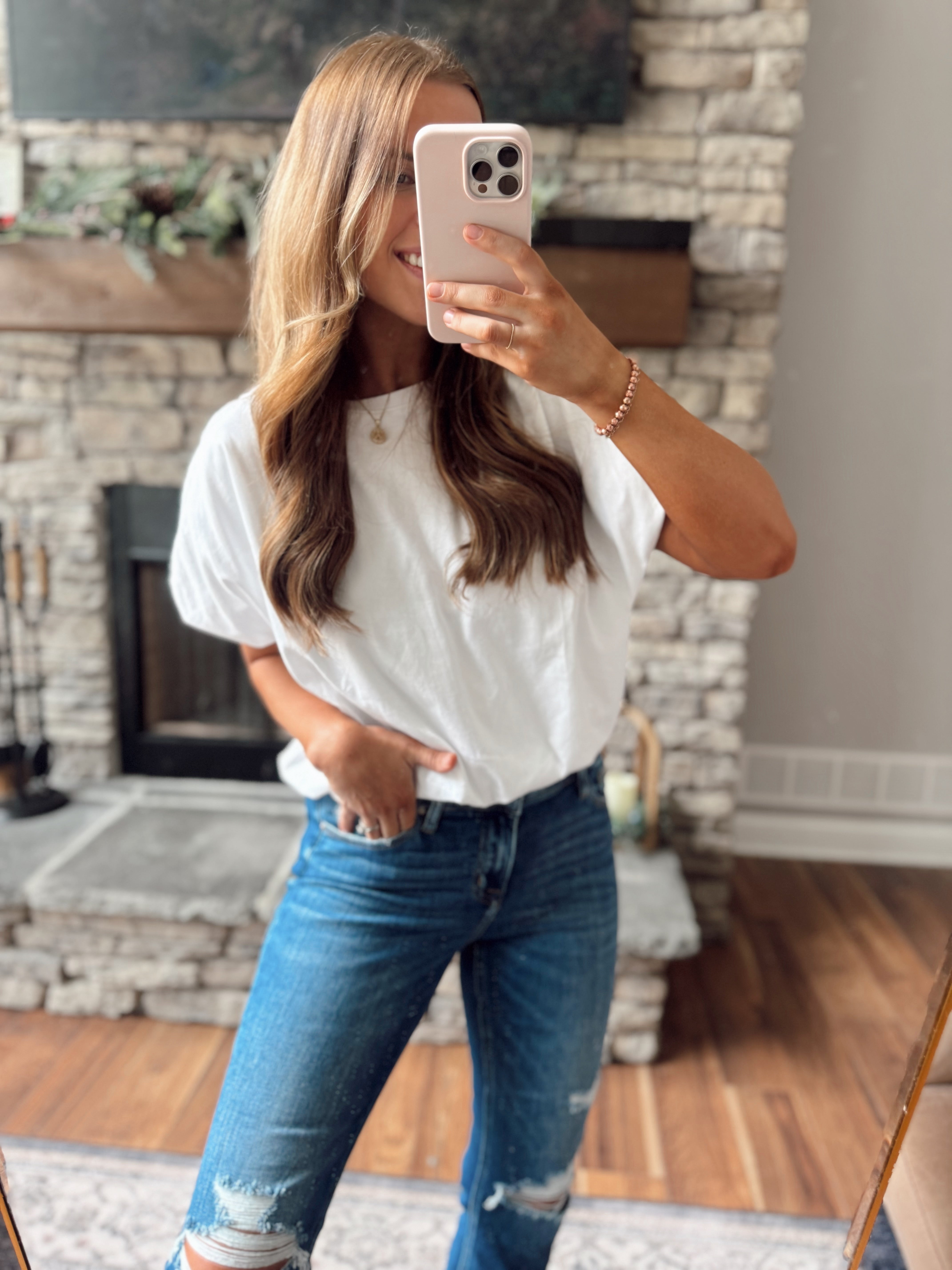 Wishlist. We had this and blue and it’s a must have / keep. The cutest tee ever! Relaxed fit - awesome quality. Relaxed fit. Bubble sleeve and bottom.