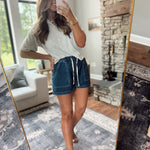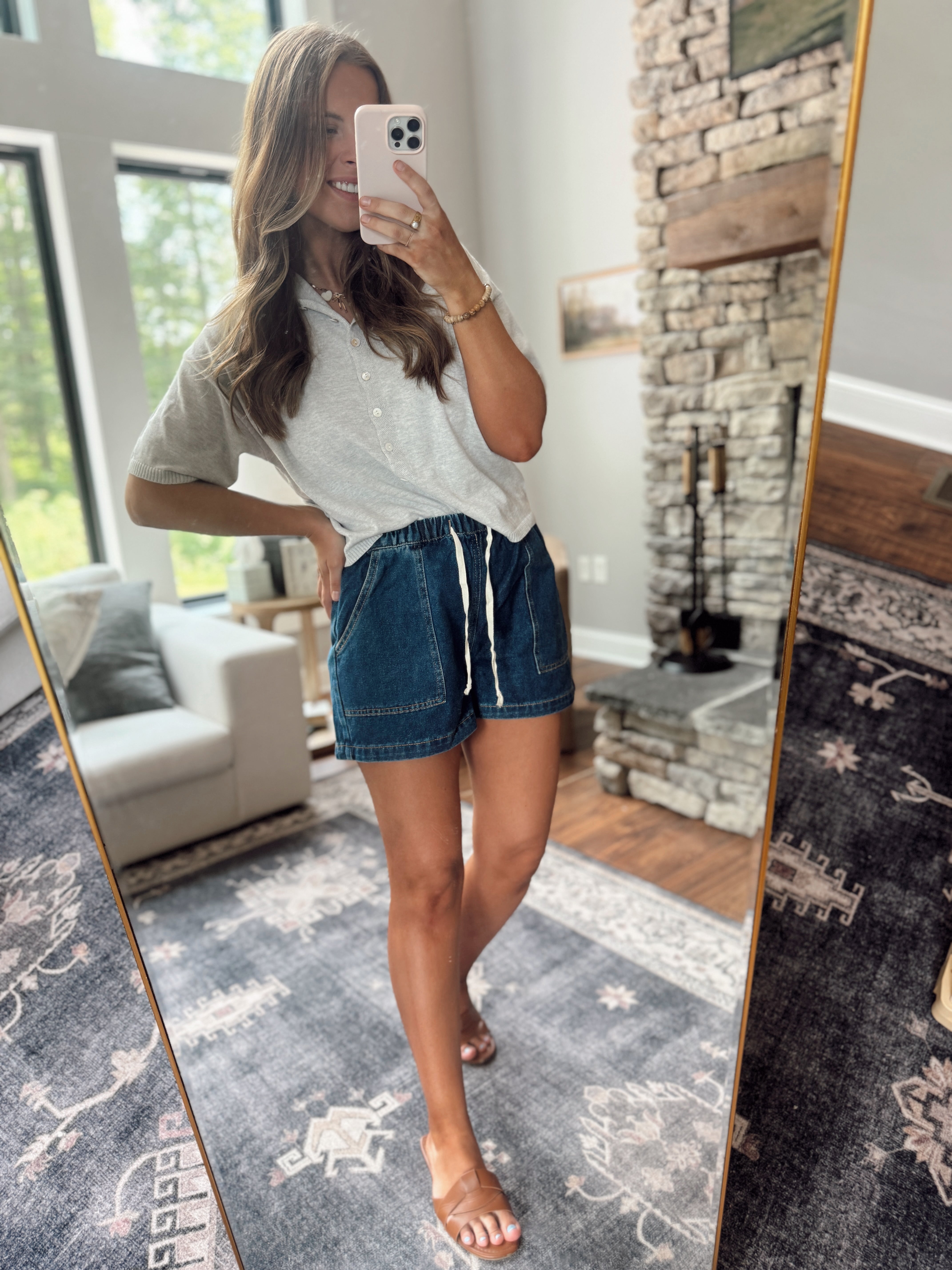 Wishlist - super spacious - elastic waist. Awesome length. Highly recommend