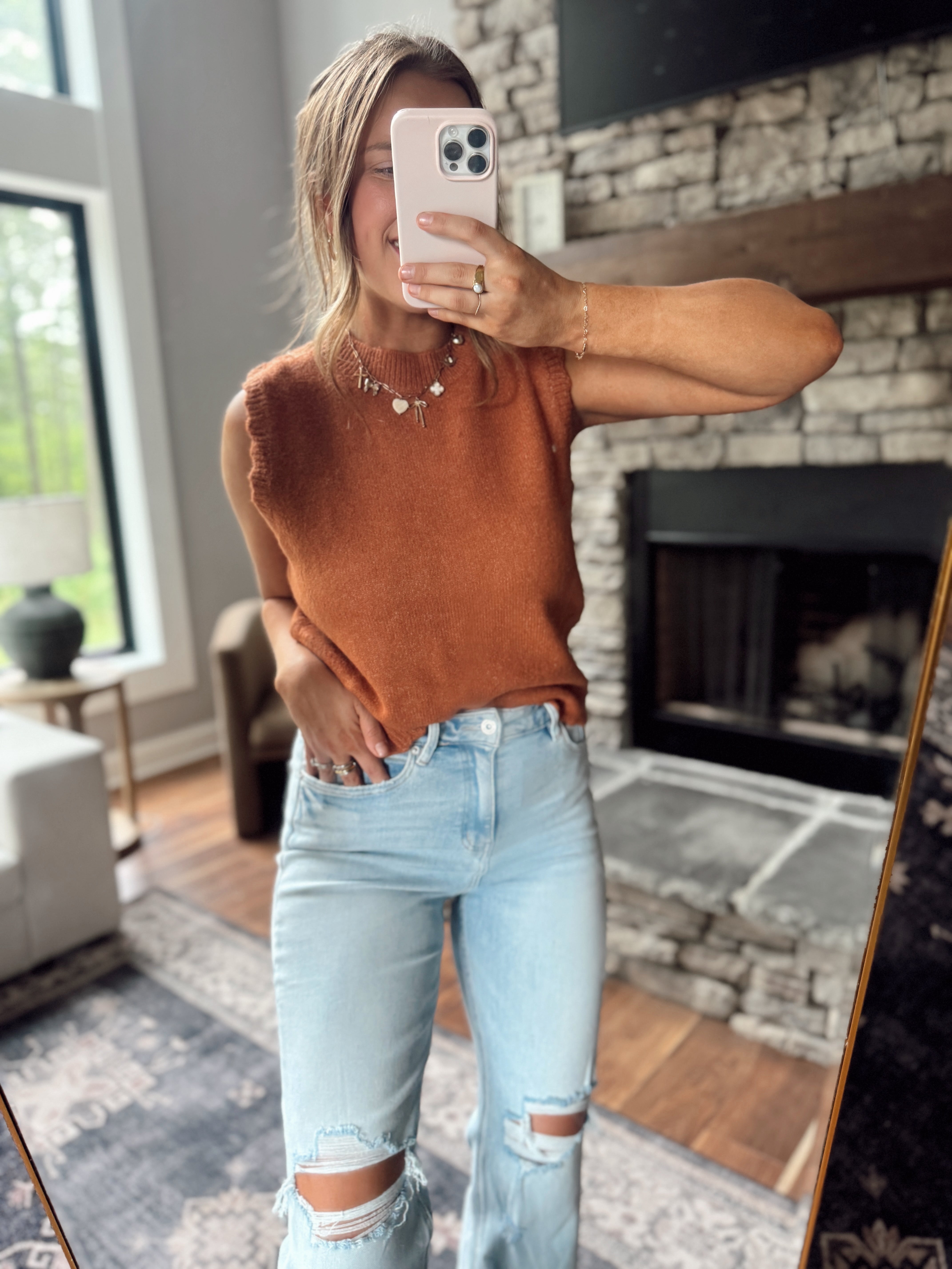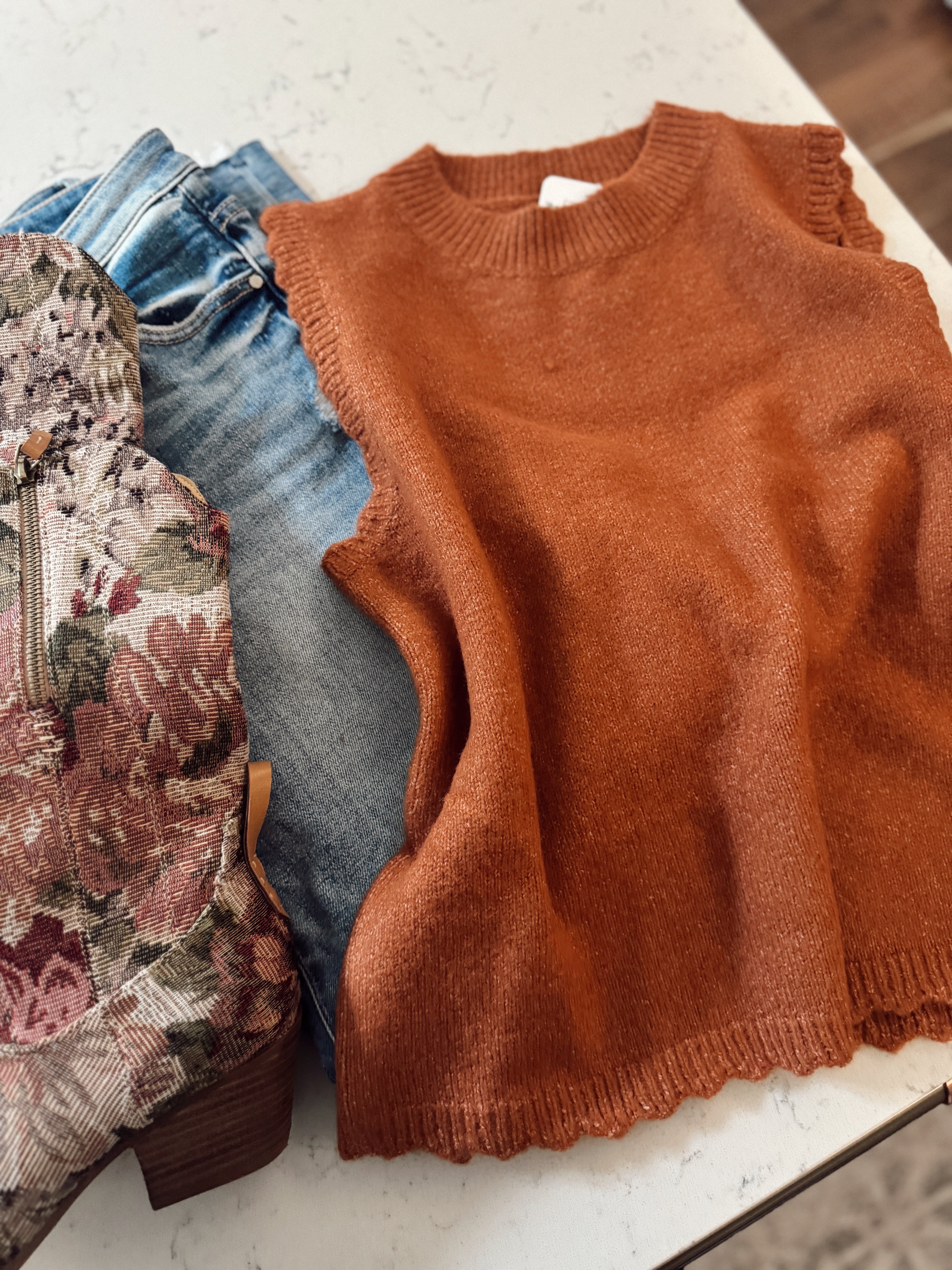 Rust Scalloped Knit Sweater Vest