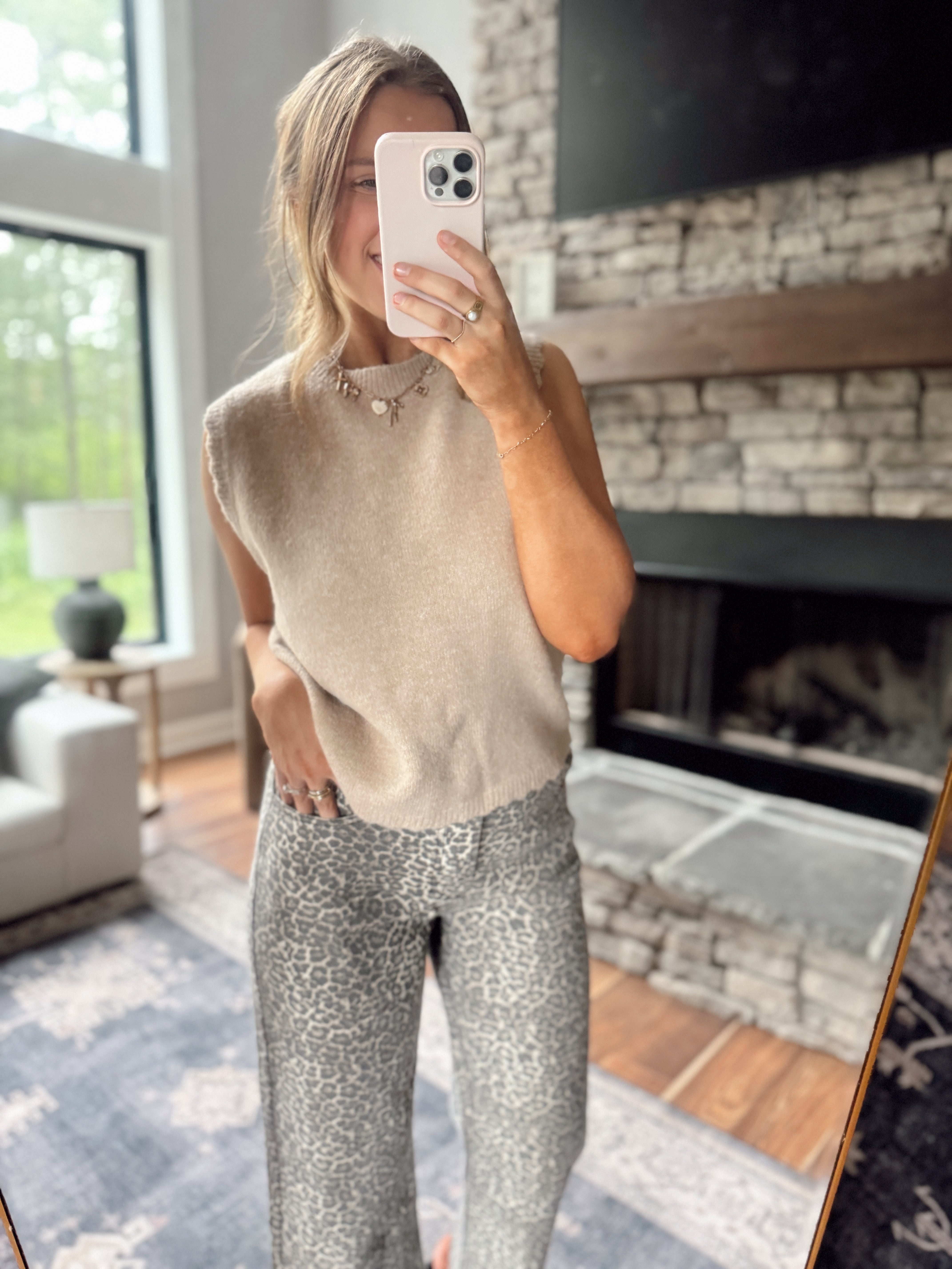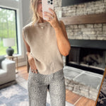 Taupe Scalloped Knit Sweater Vest