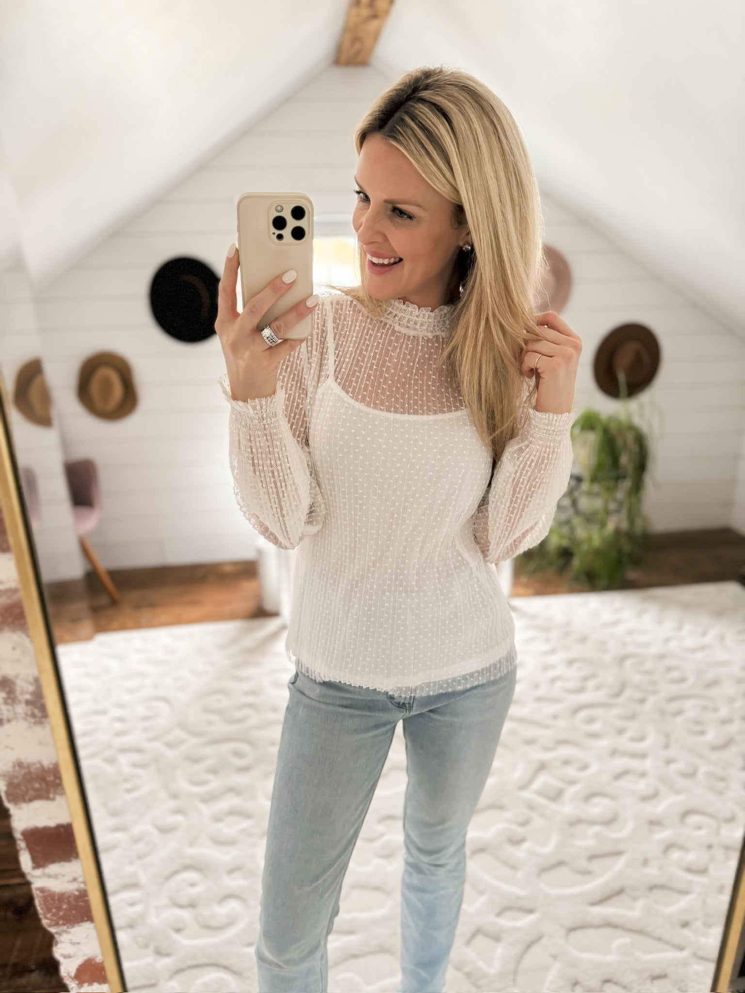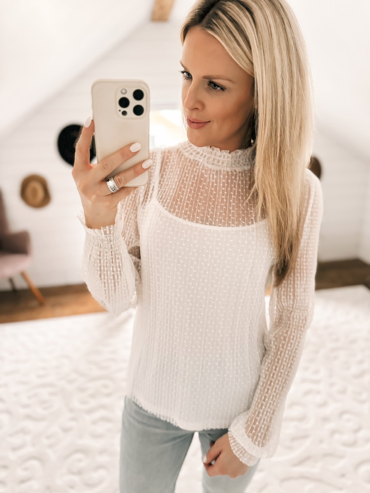 Together Forever Ivory Cami-Lined Lace Top