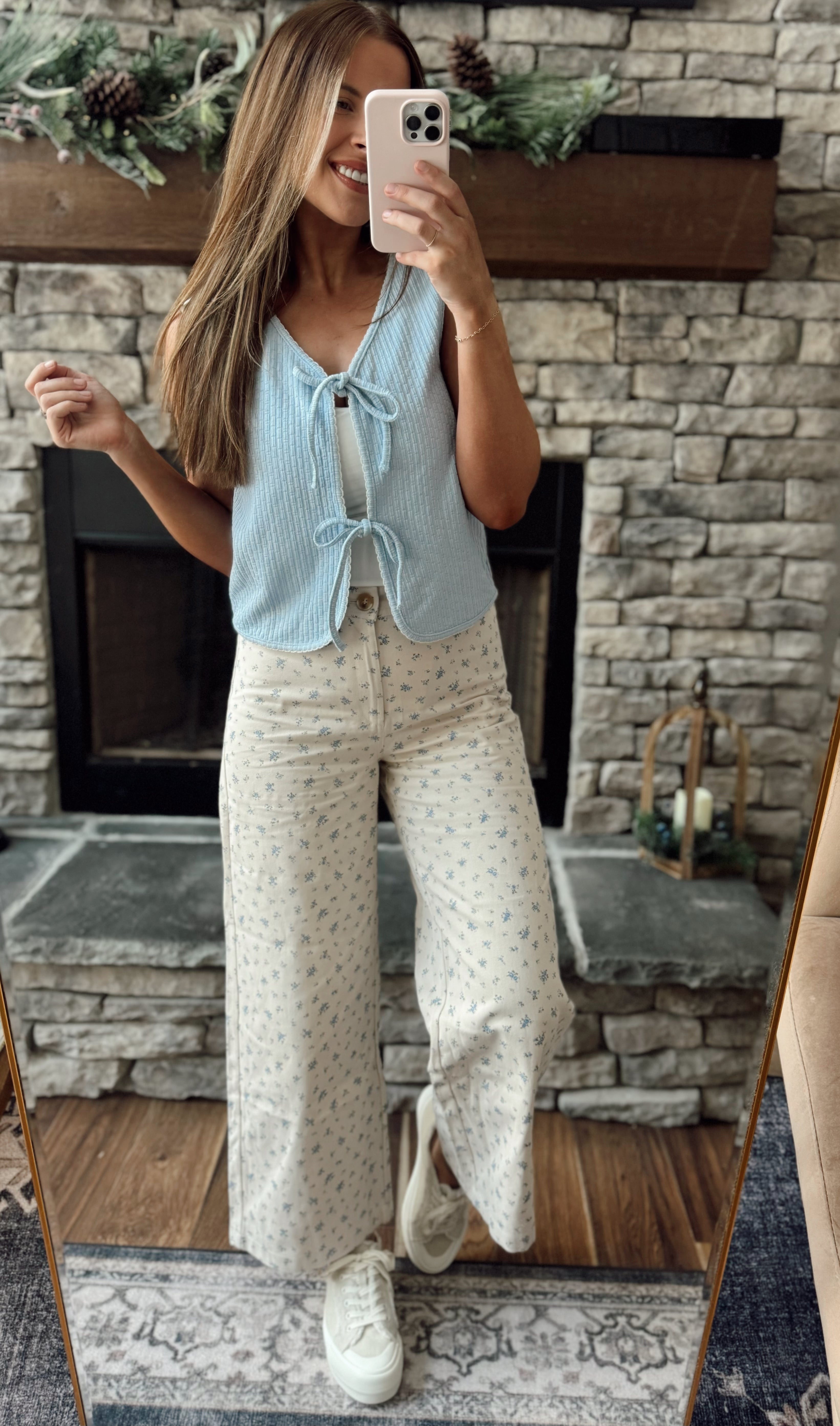 The cutest pants! I elastic waist in the back for an easy fit! I’m 5’7, size 26 and in the small and they fit perfectly. Hope to restock so authorize!