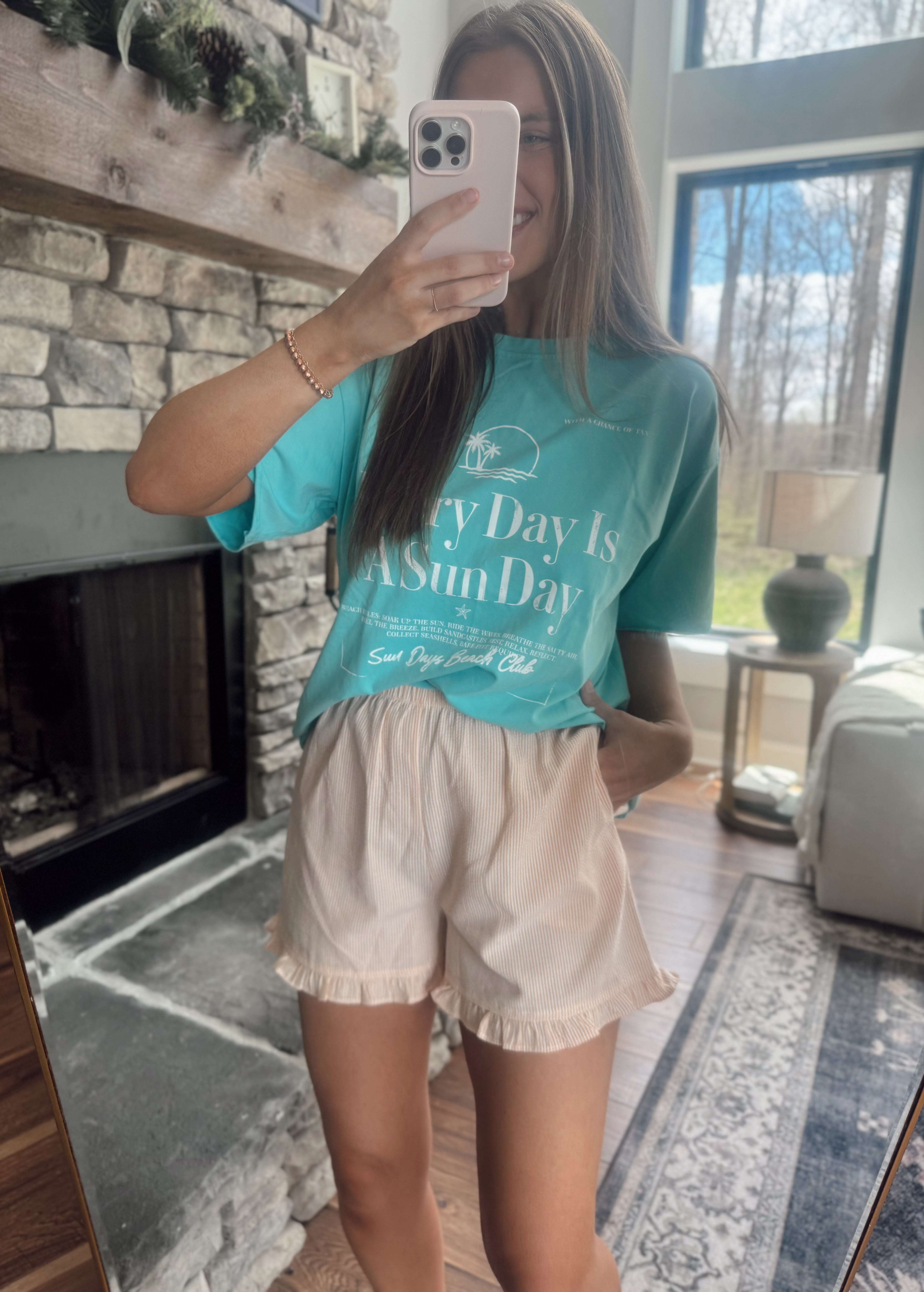 Warm Breeze Citrus/White Ruffled Rem Striped Shorts