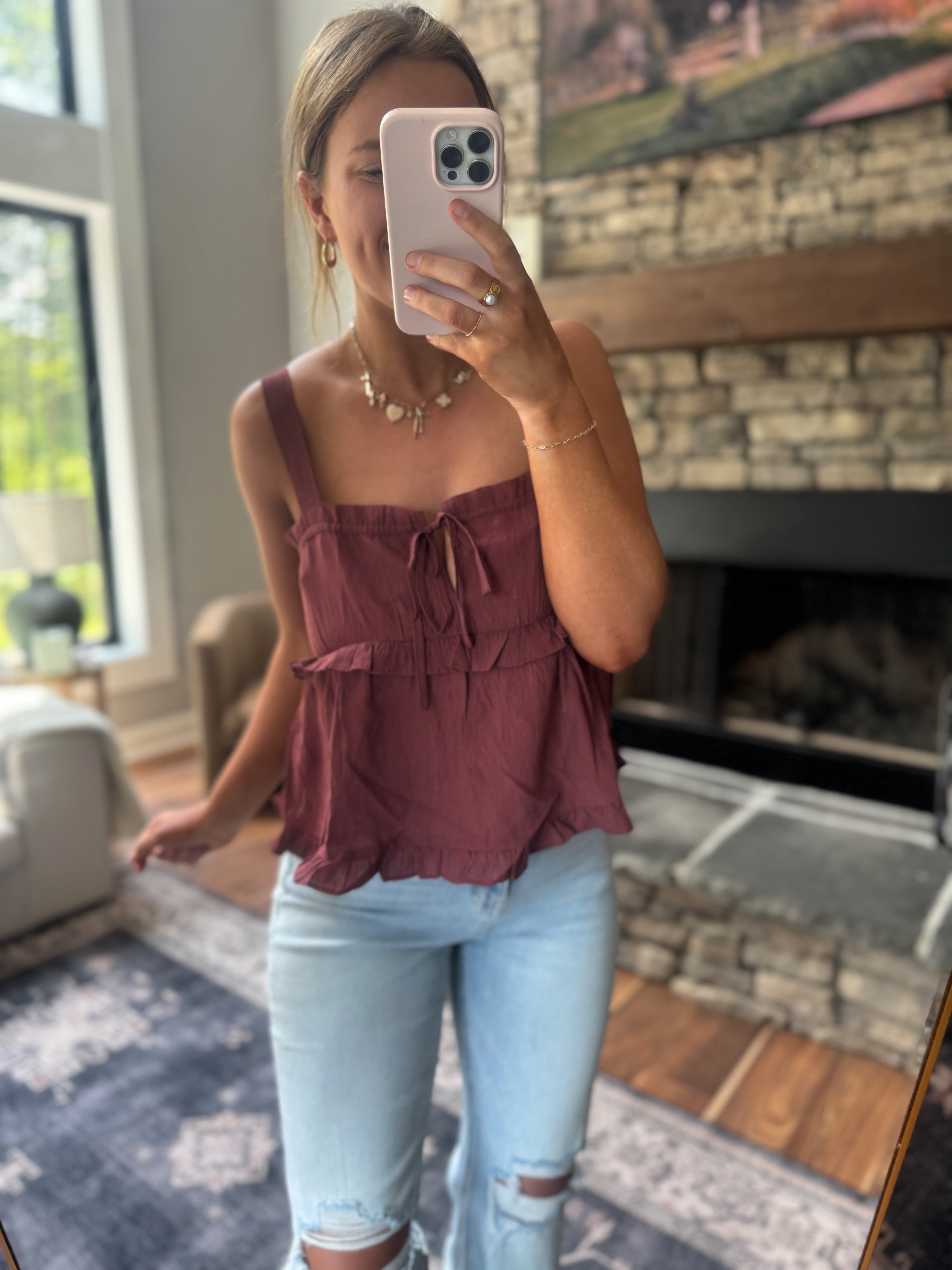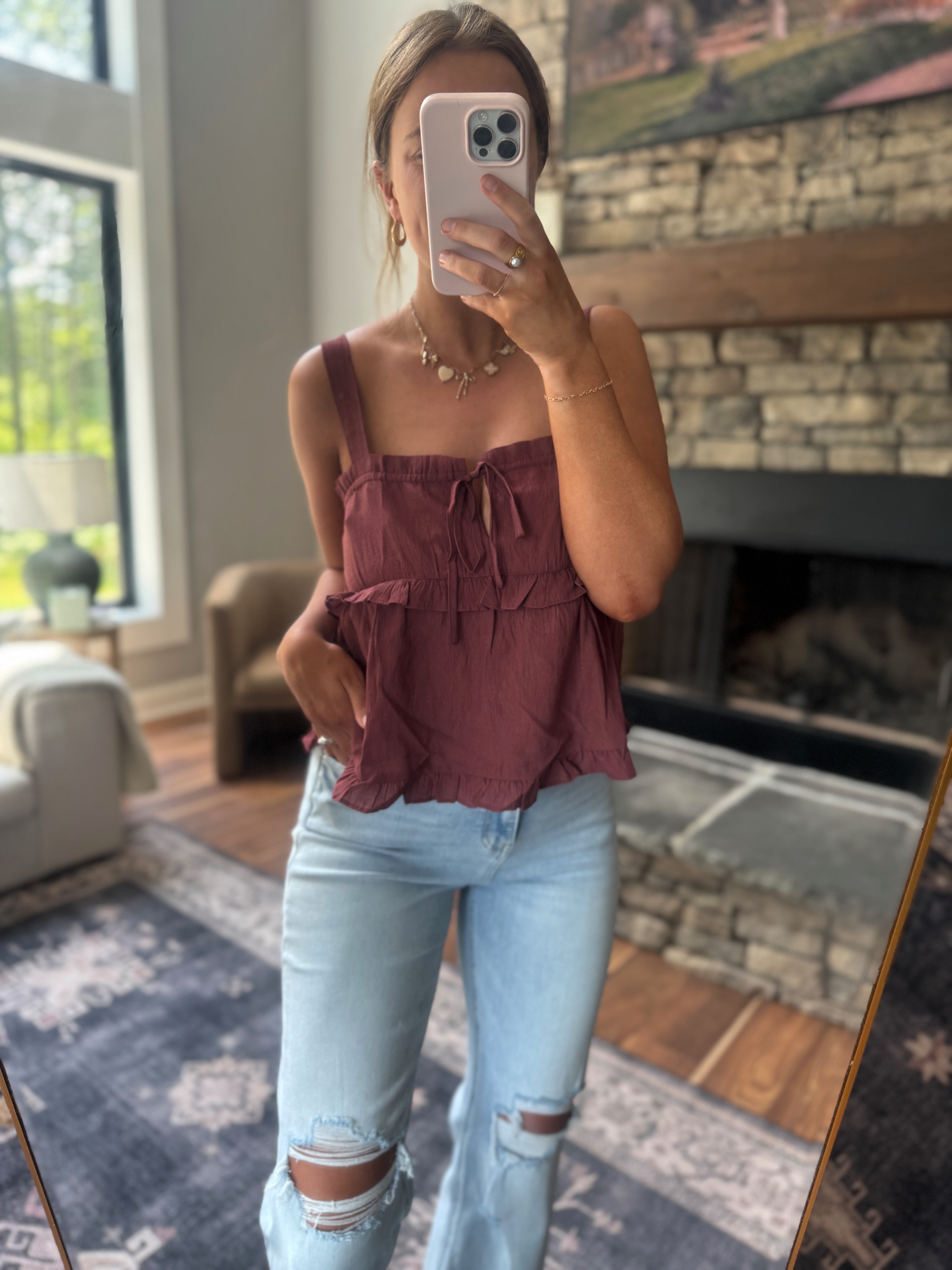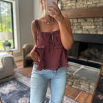 Wrenlee Merlot Ruffle Tiered Cami Top