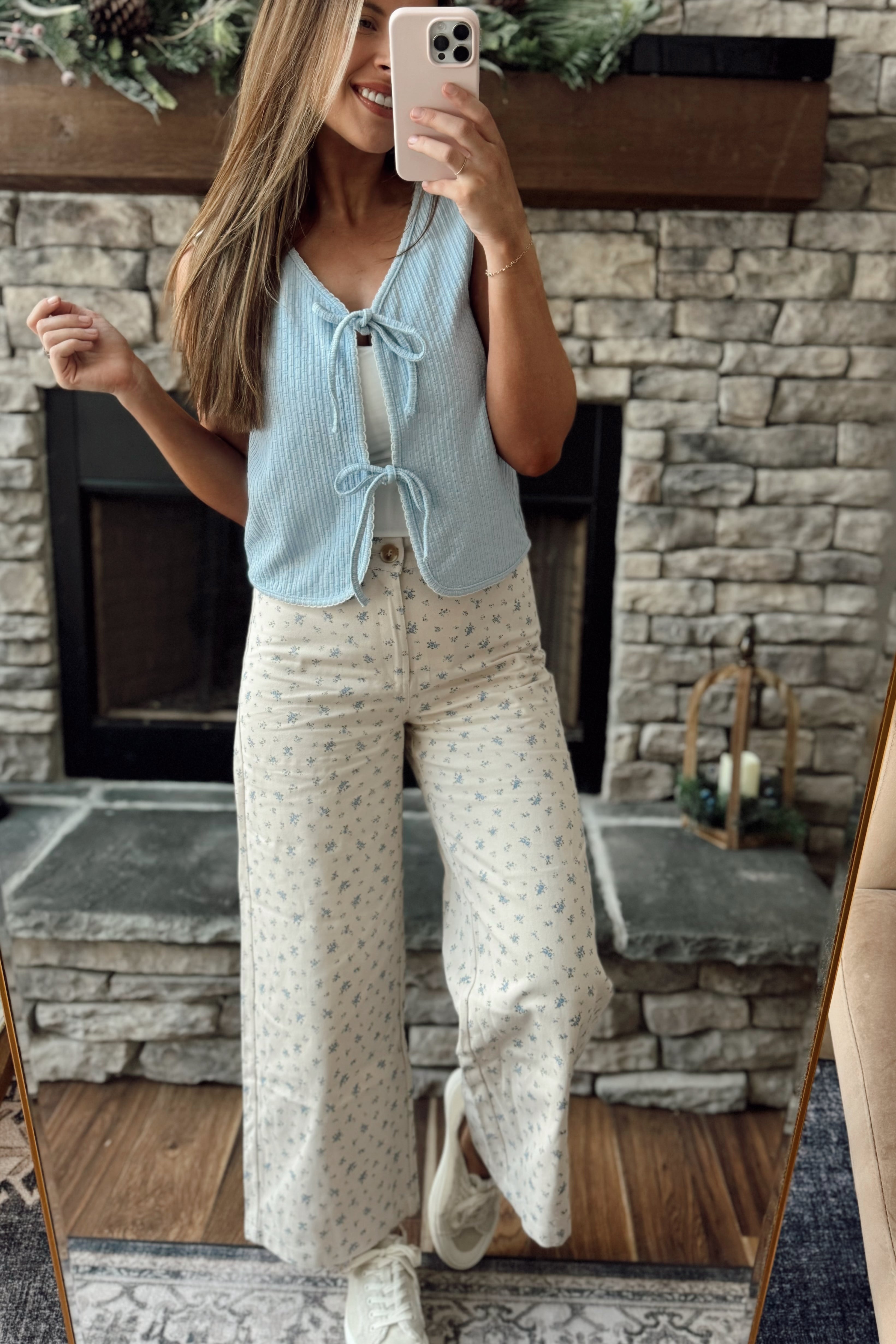Unforgettable Taupe/Blue Wide Leg Floral Print Pant