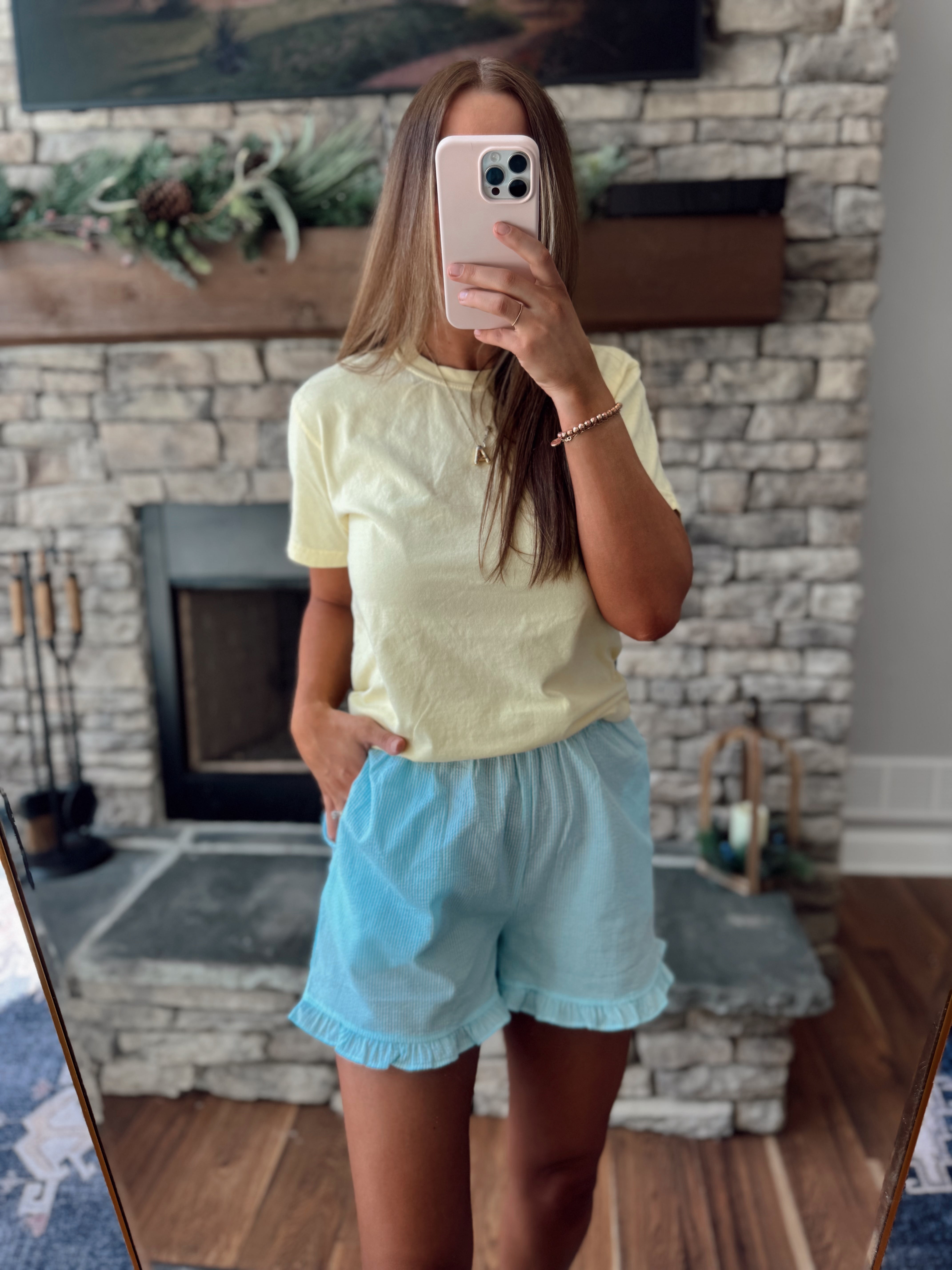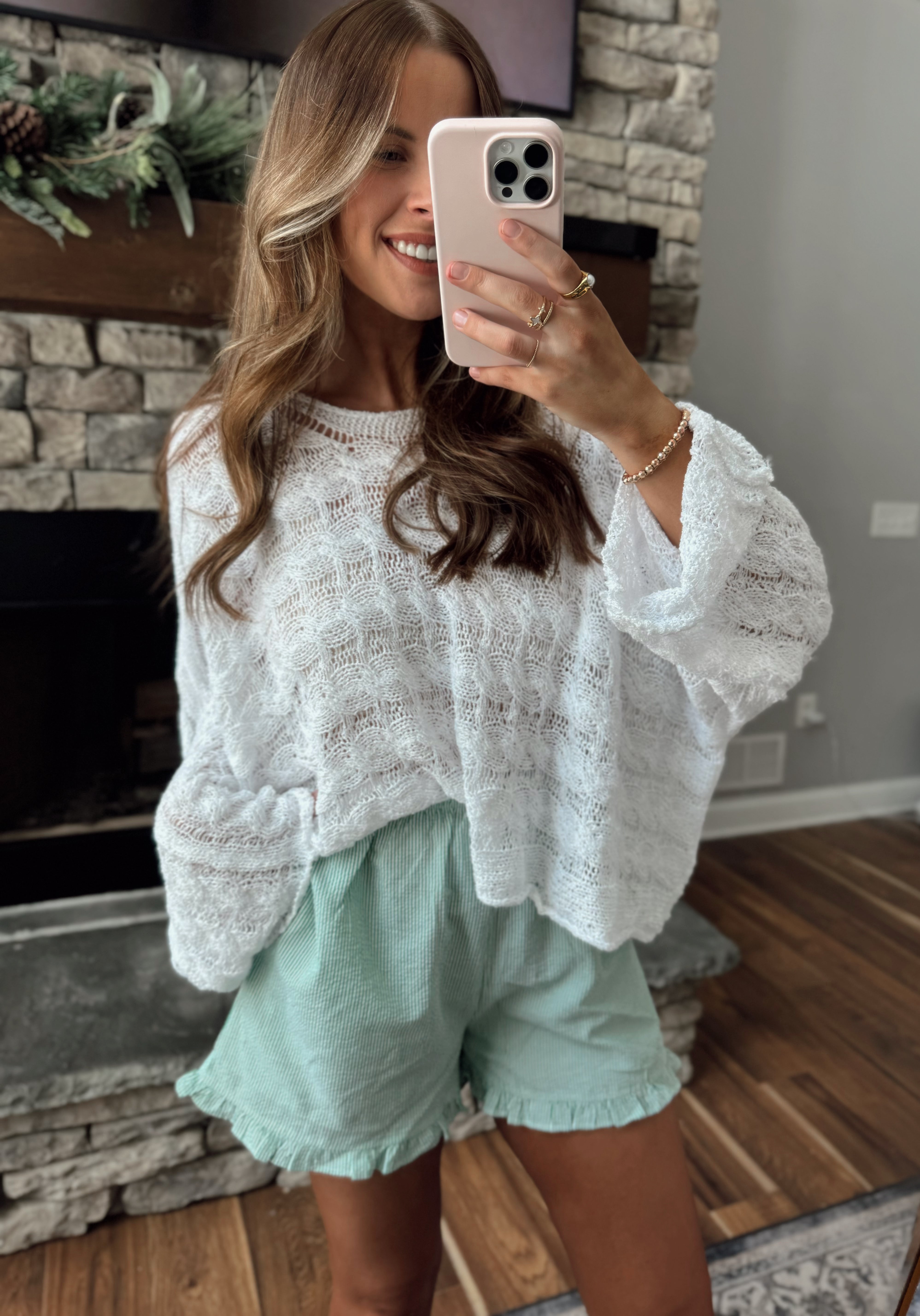 Warm Breeze Mint/White Ruffled Rem Striped Shorts
