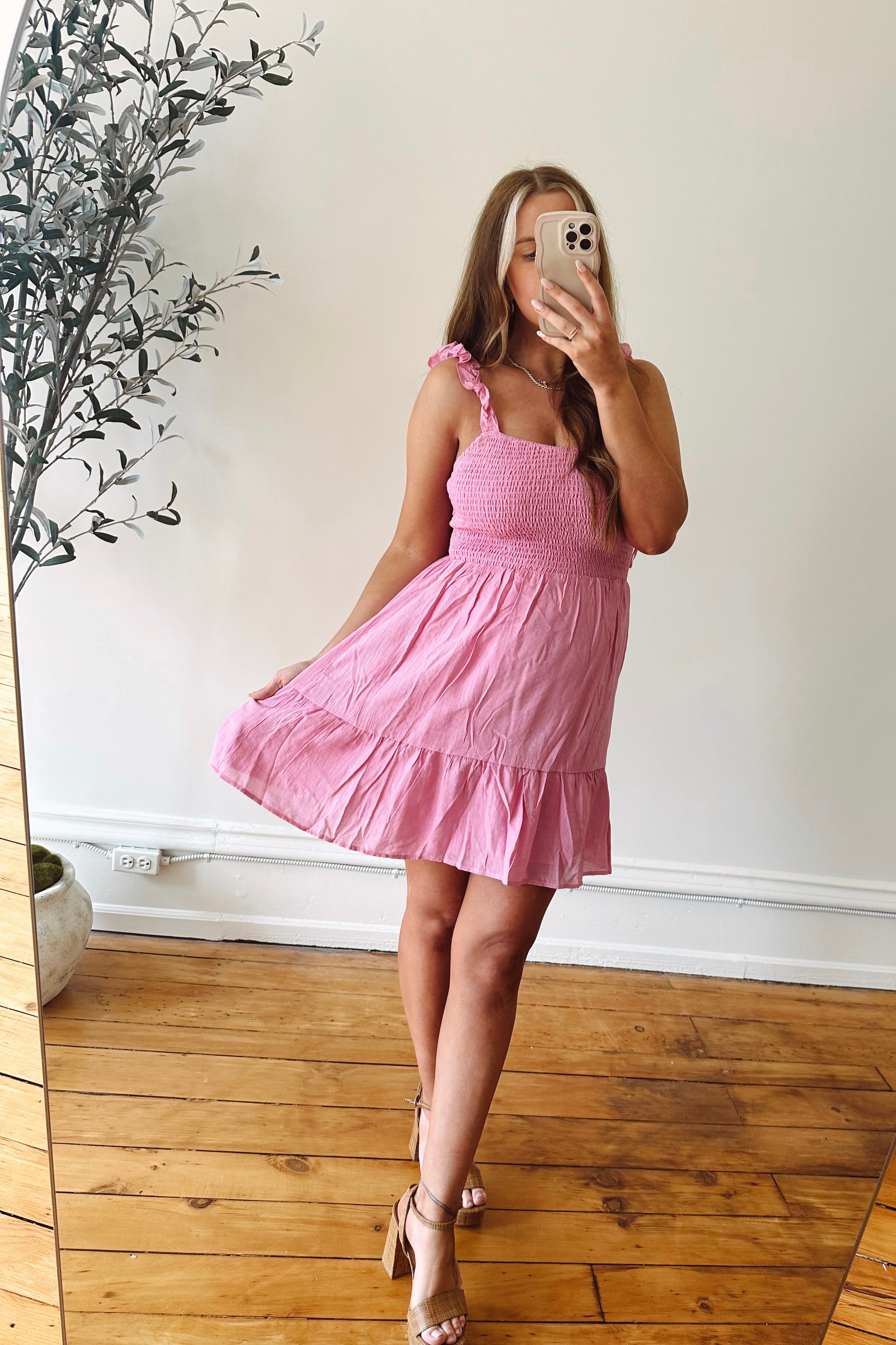 Warm Breeze Pink/White Ruffled Rem Striped Shorts