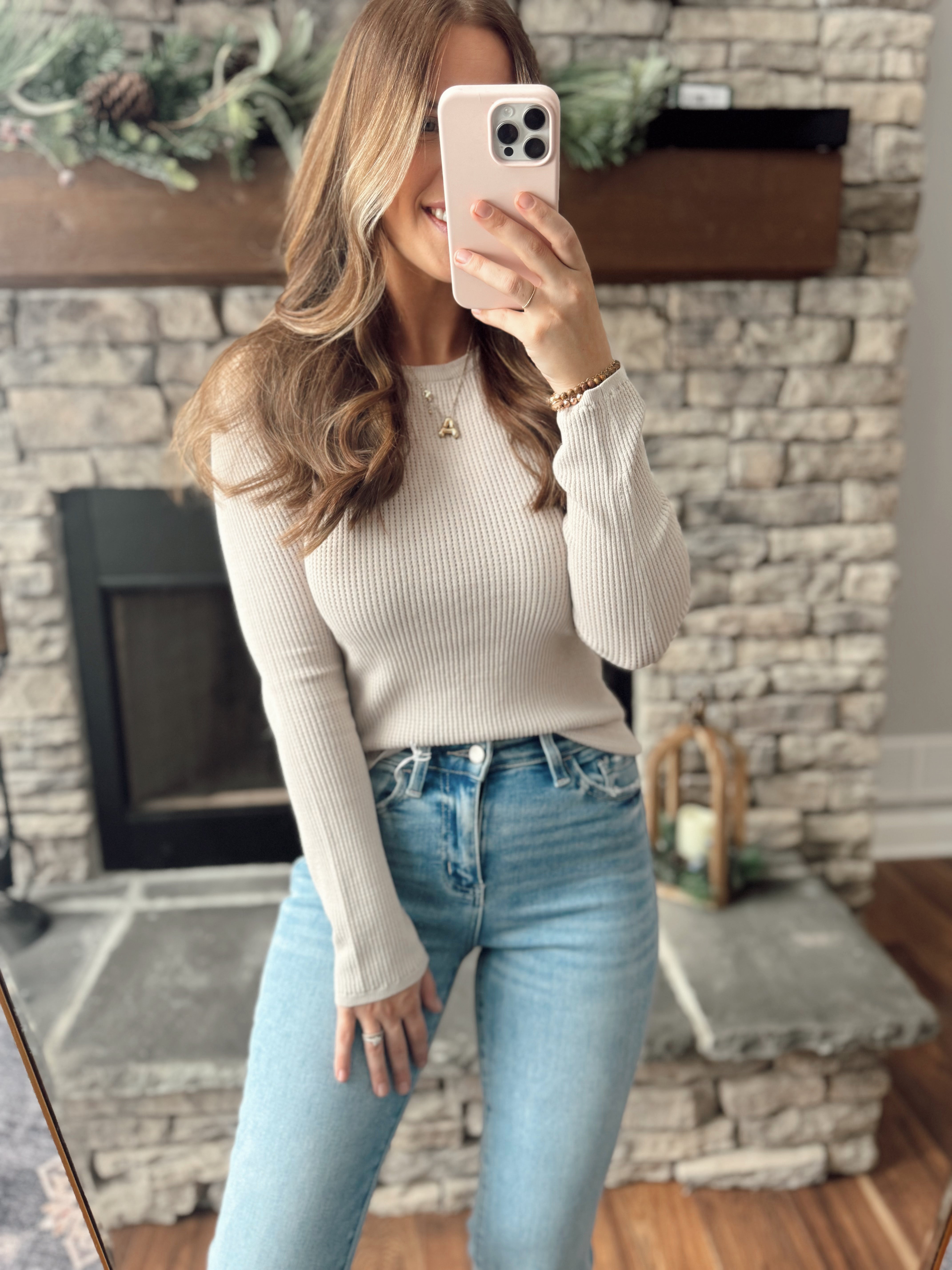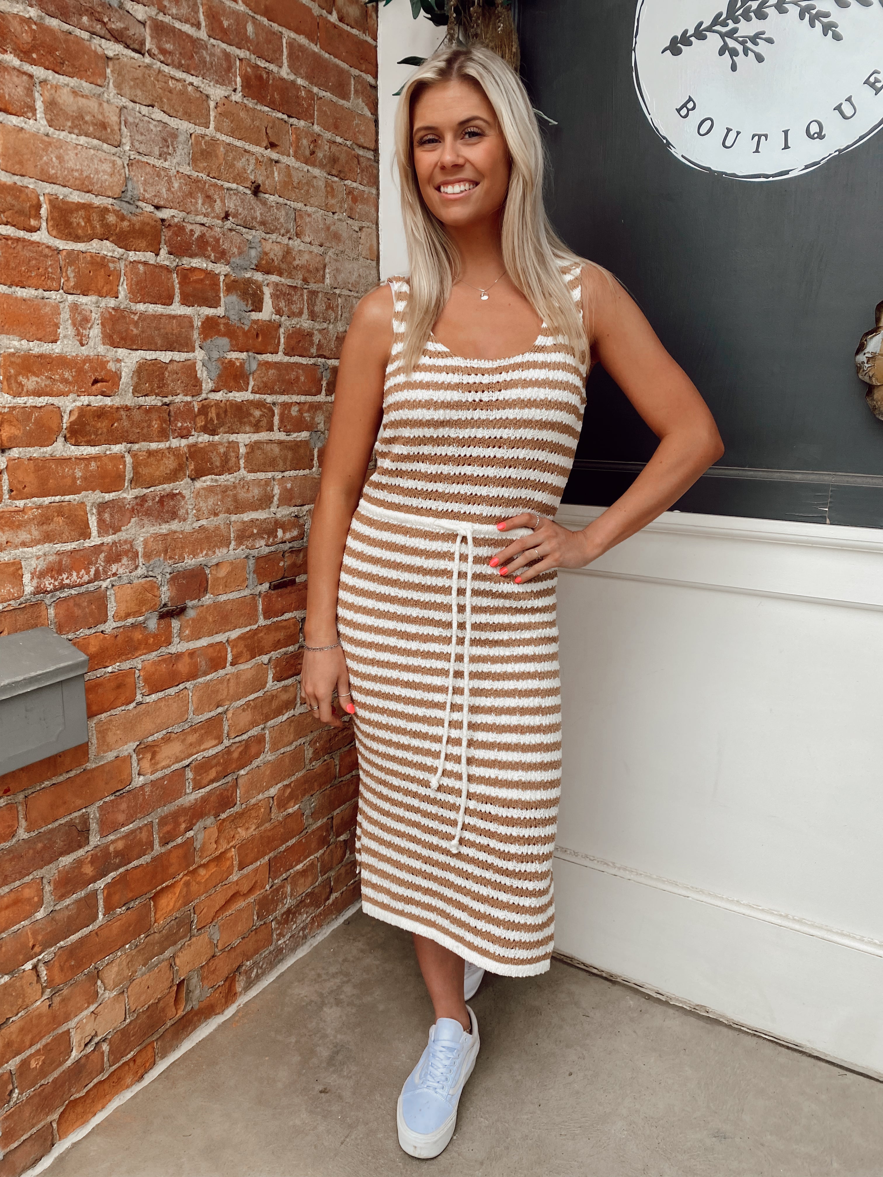 Kaitlyn Cream/ Camel Striped Sweater Midi