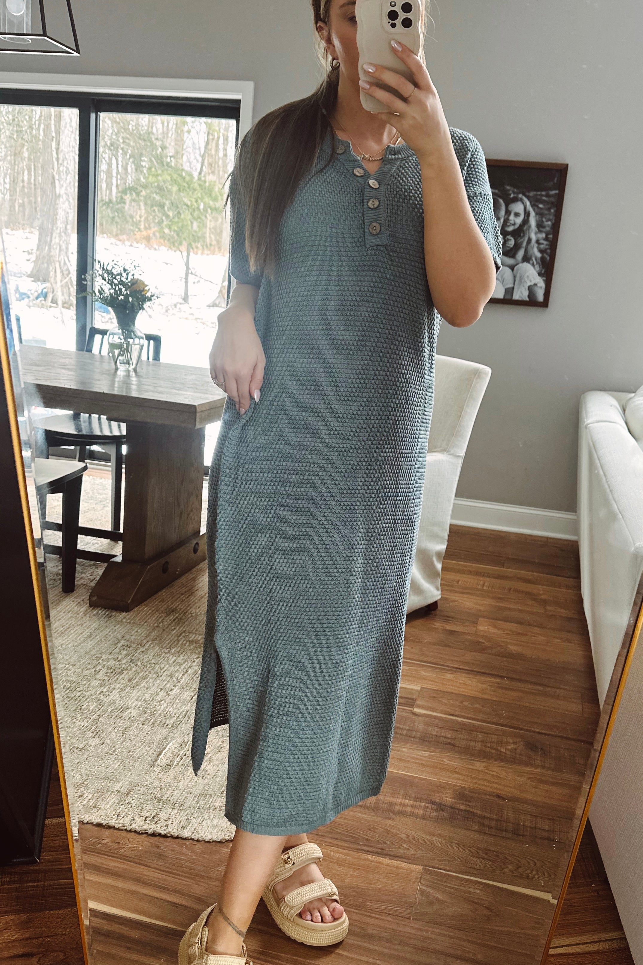 Kaitlyn Taupe/ Sage Striped Sweater Midi