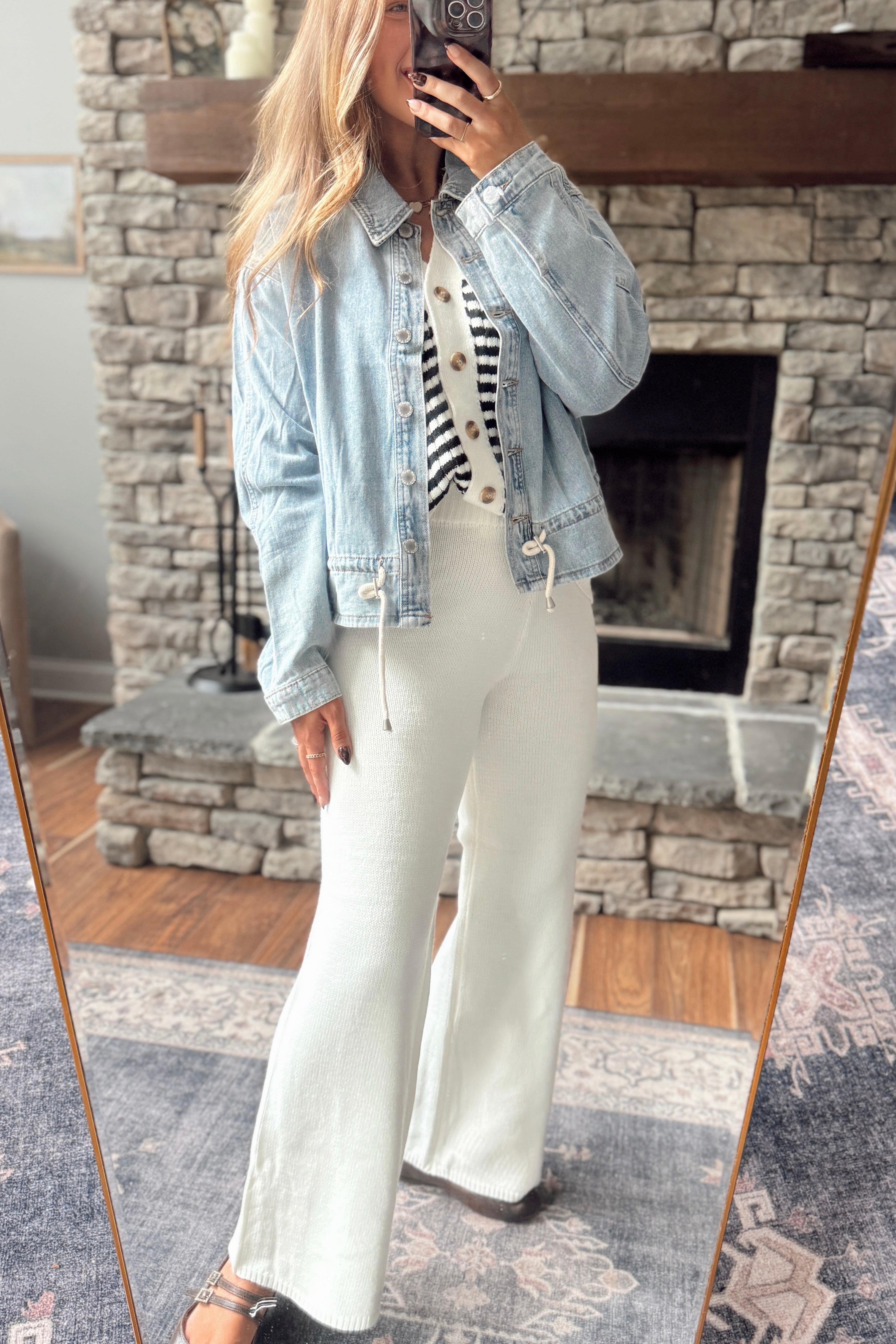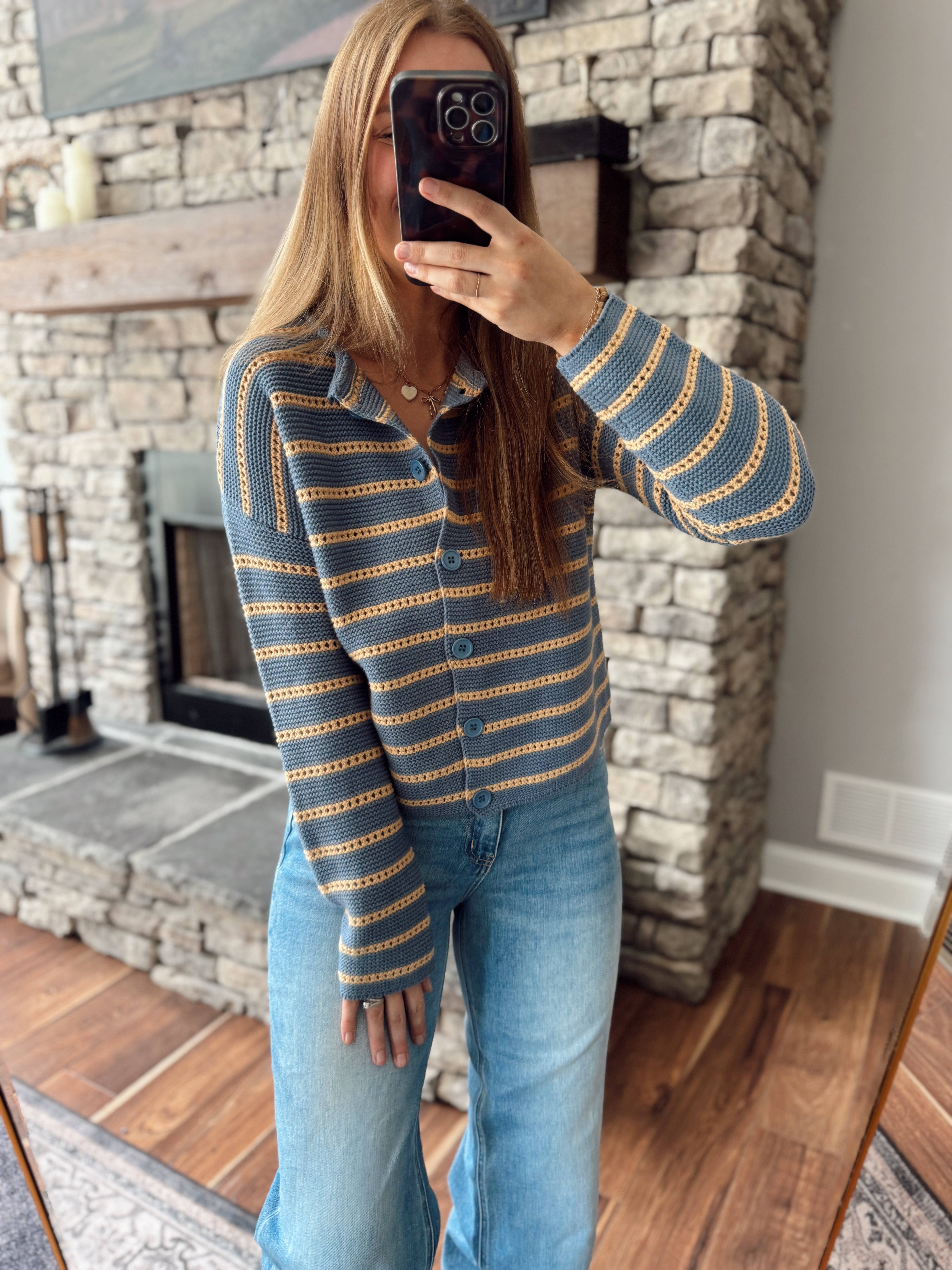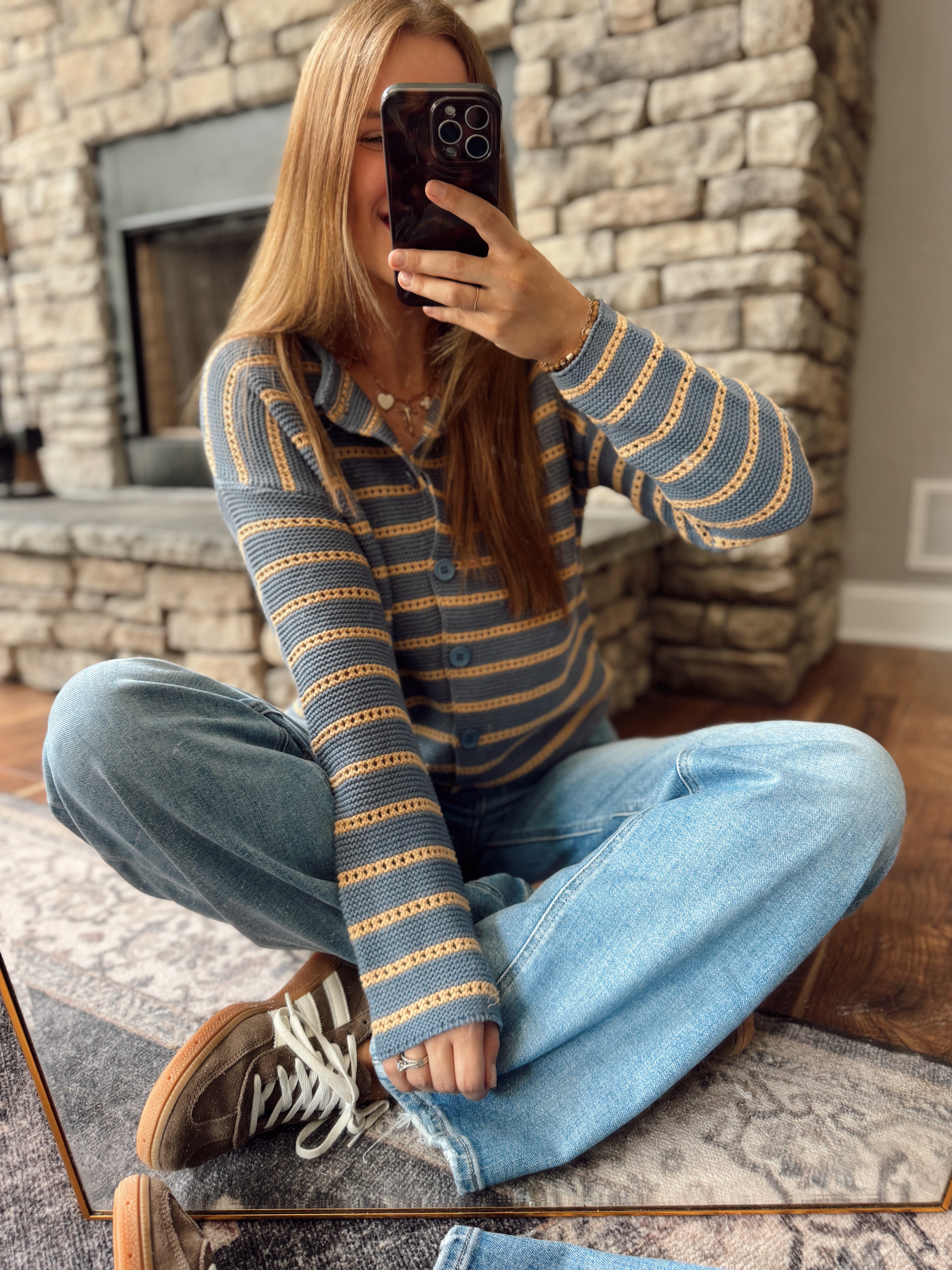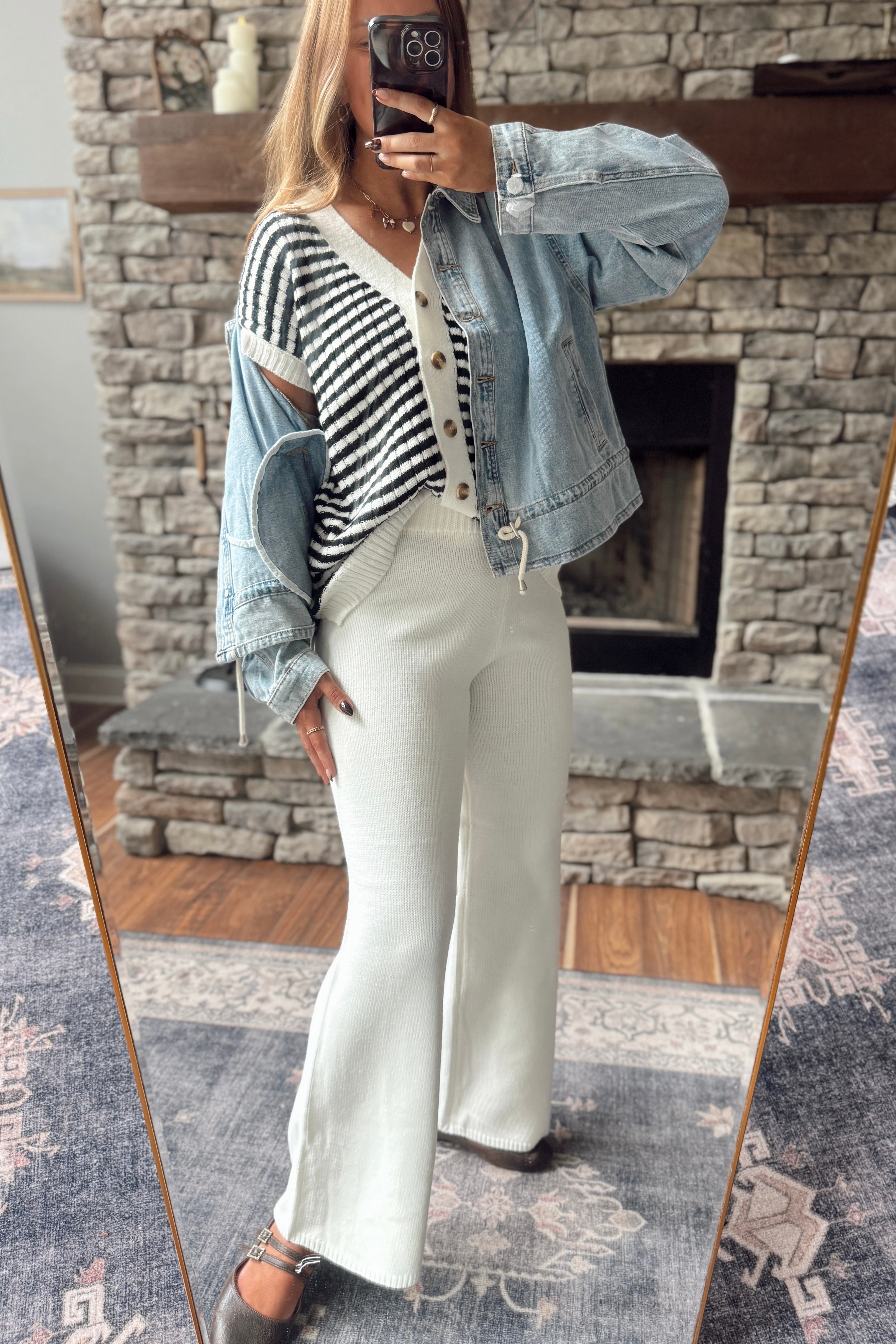 Monochrome Stripe Button Up Sweater Top & Pants Set
