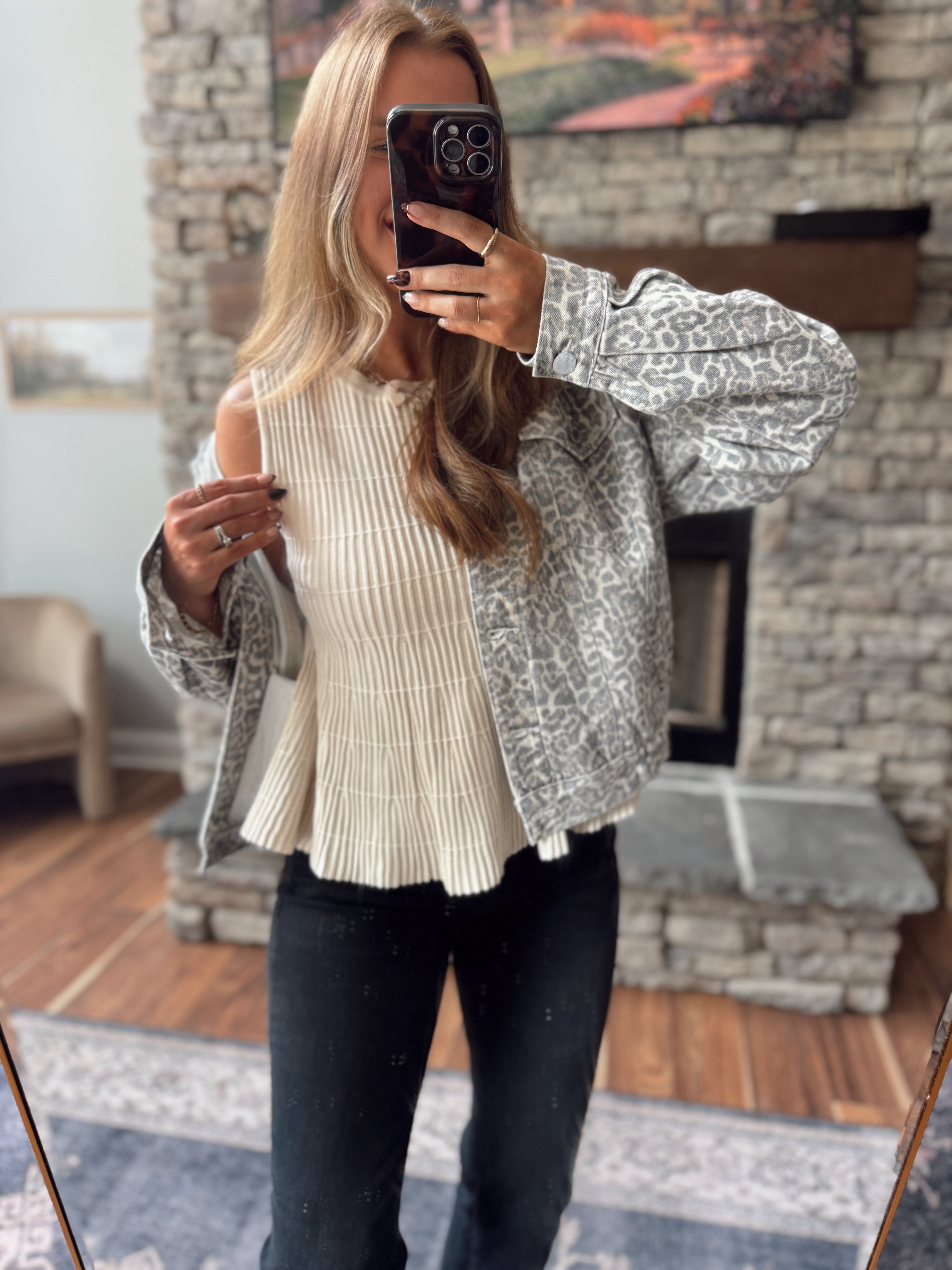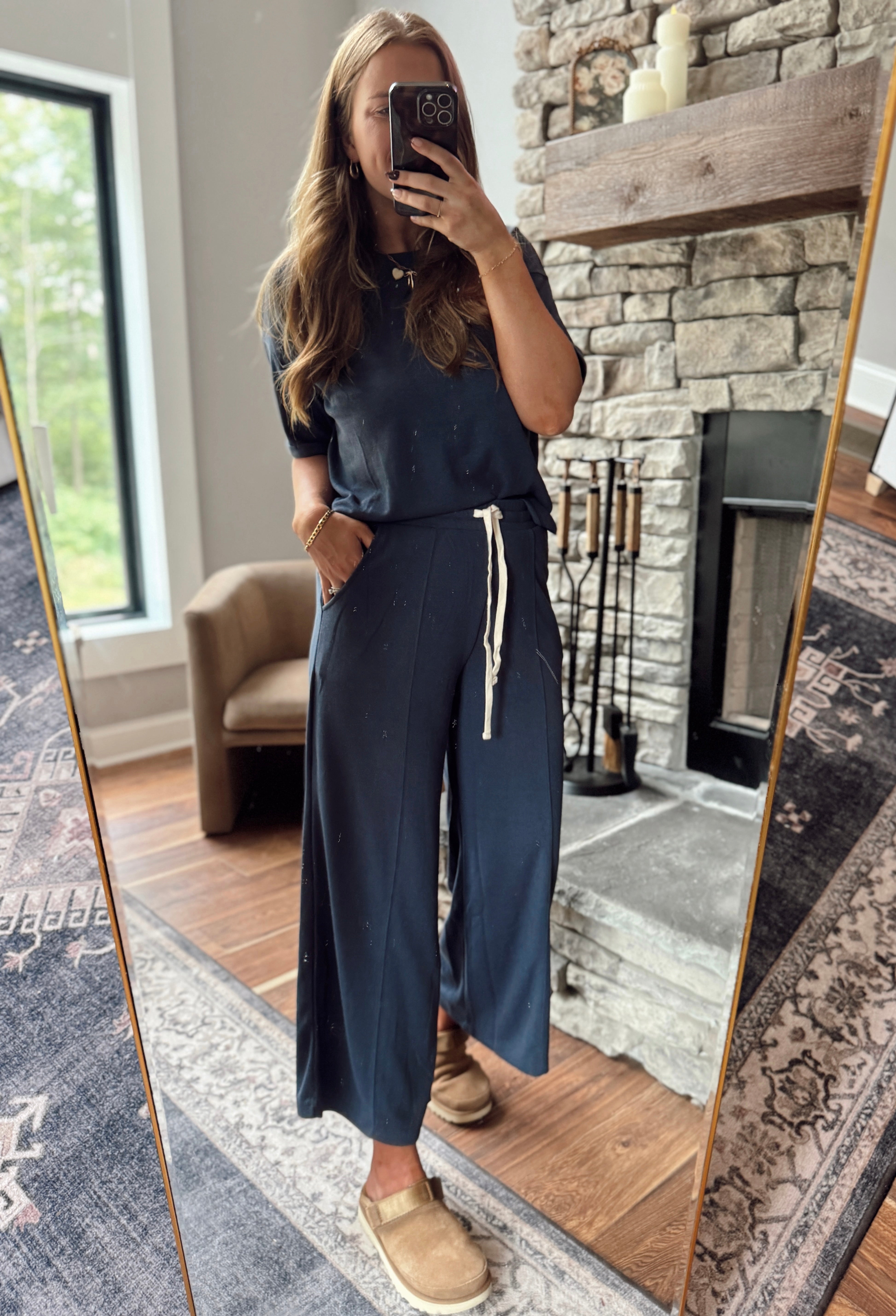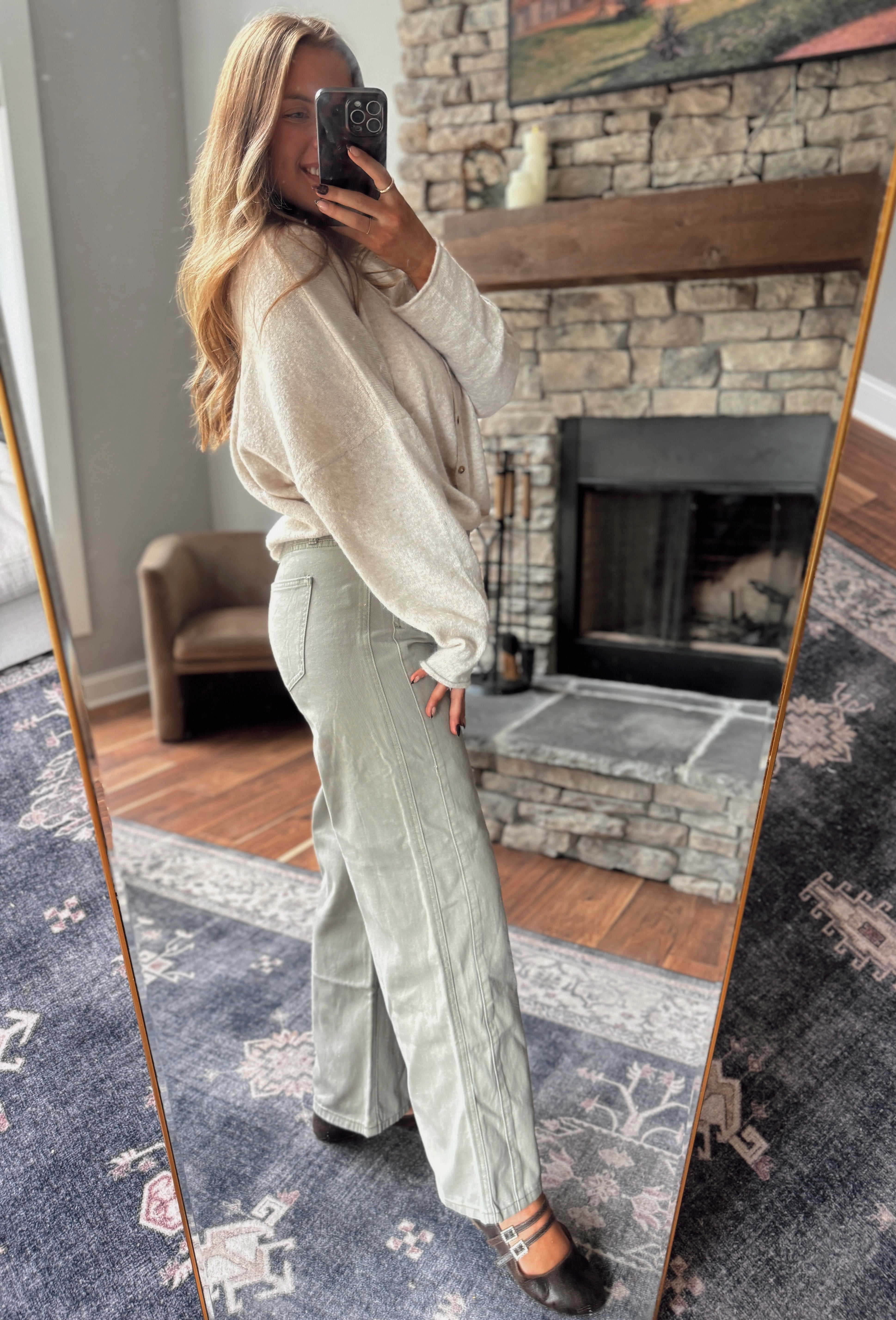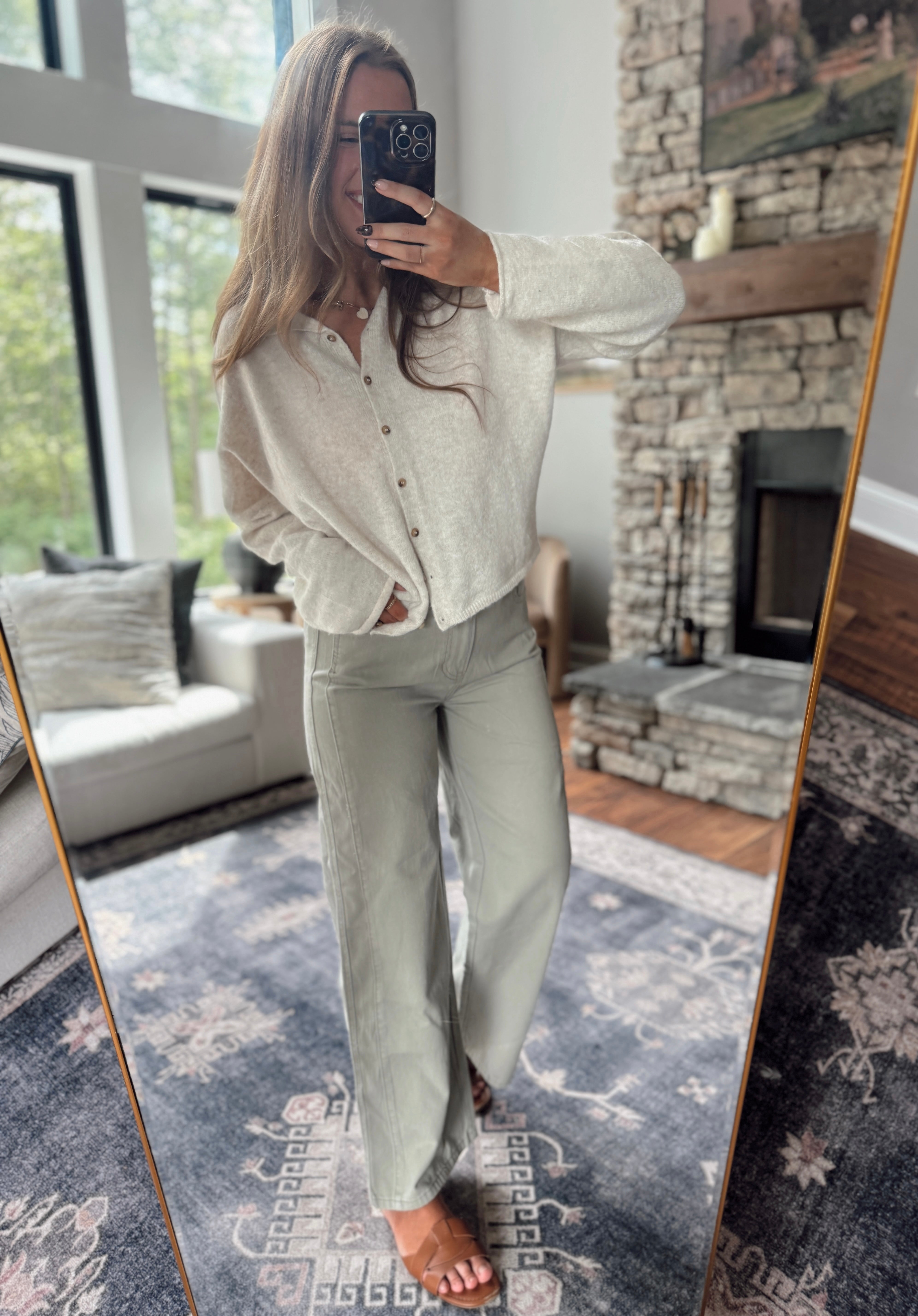 Monochrome Stripe Button Up Sweater Top & Pants Set