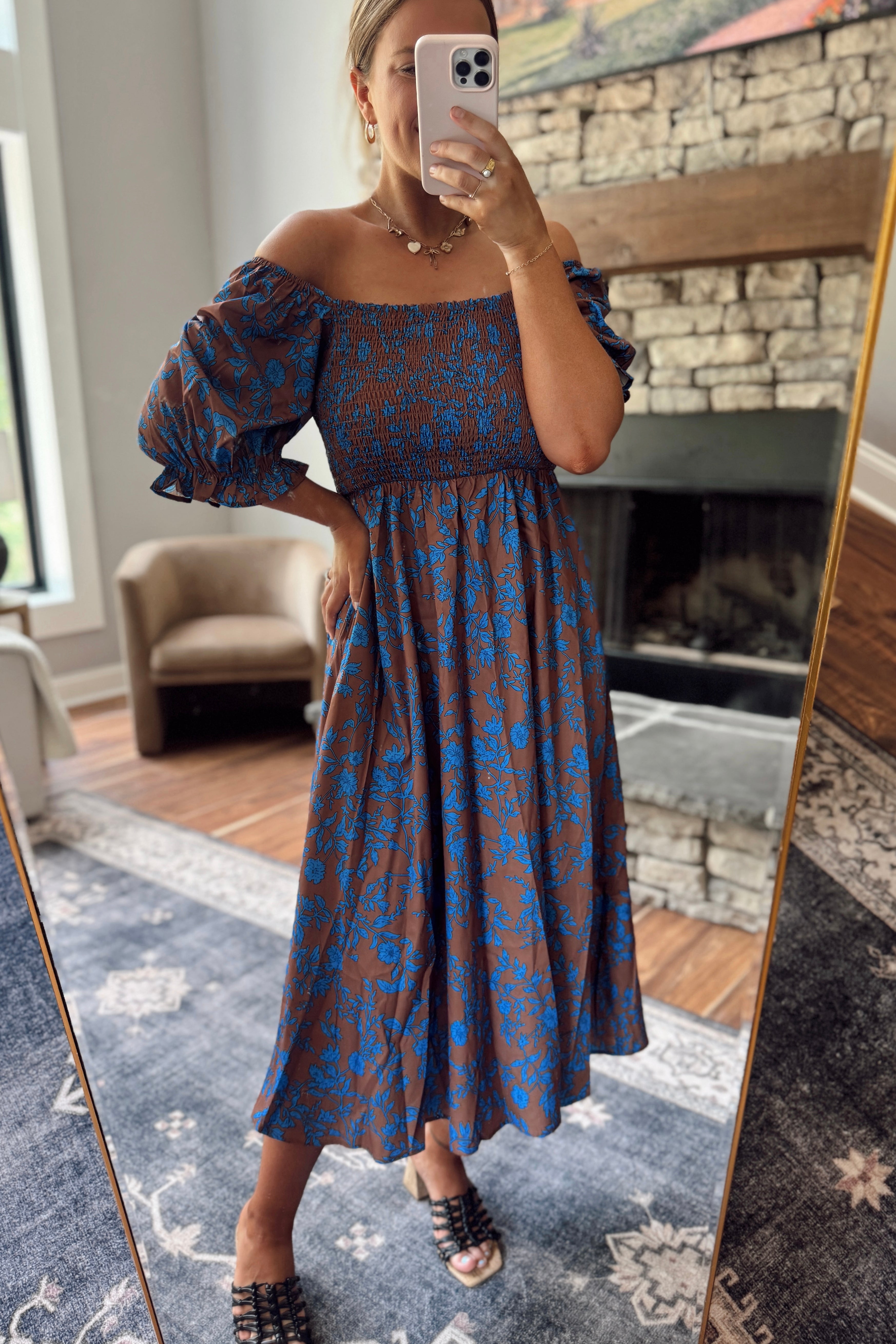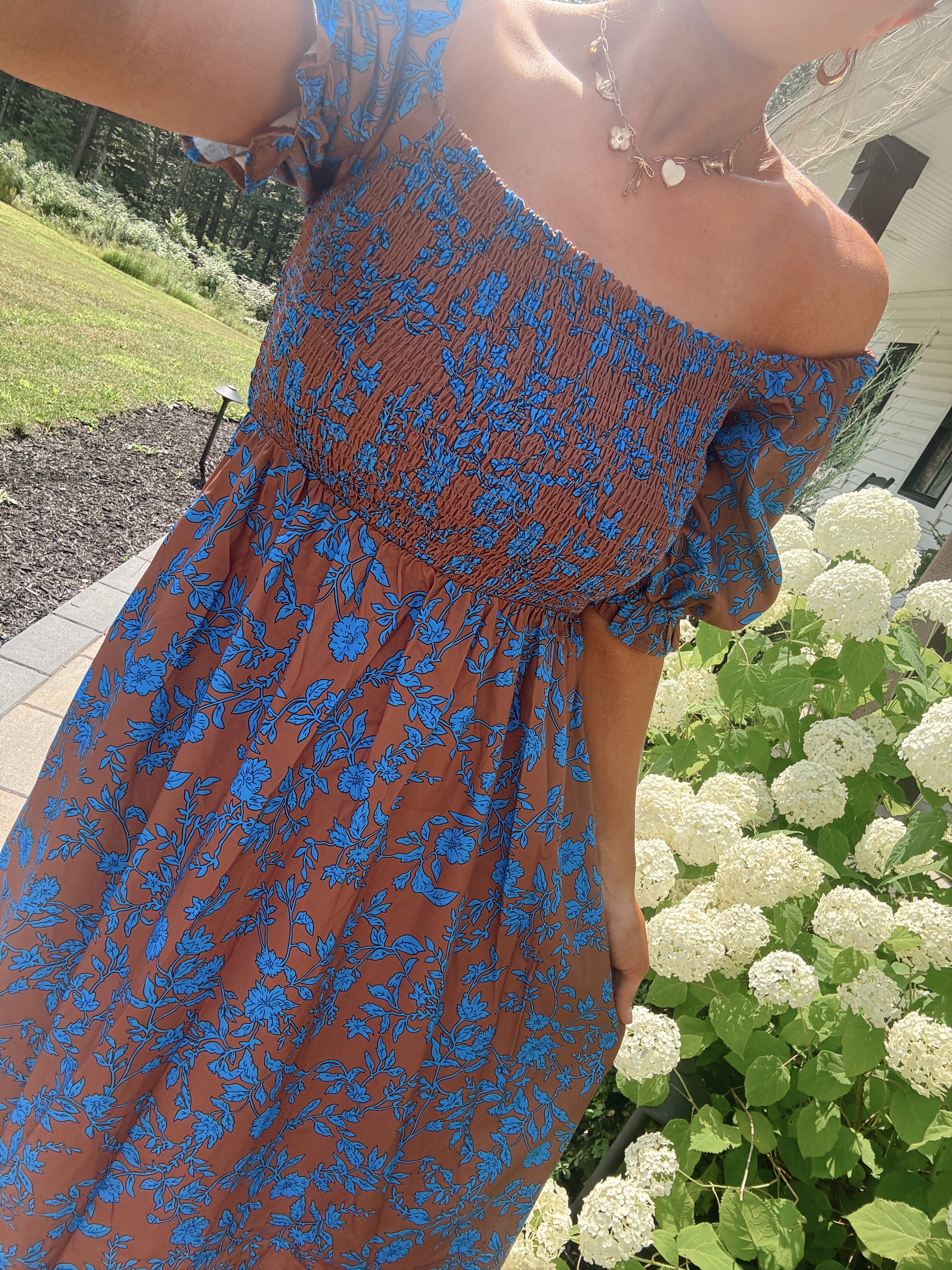 Espresso Bloom Smocked Midi
