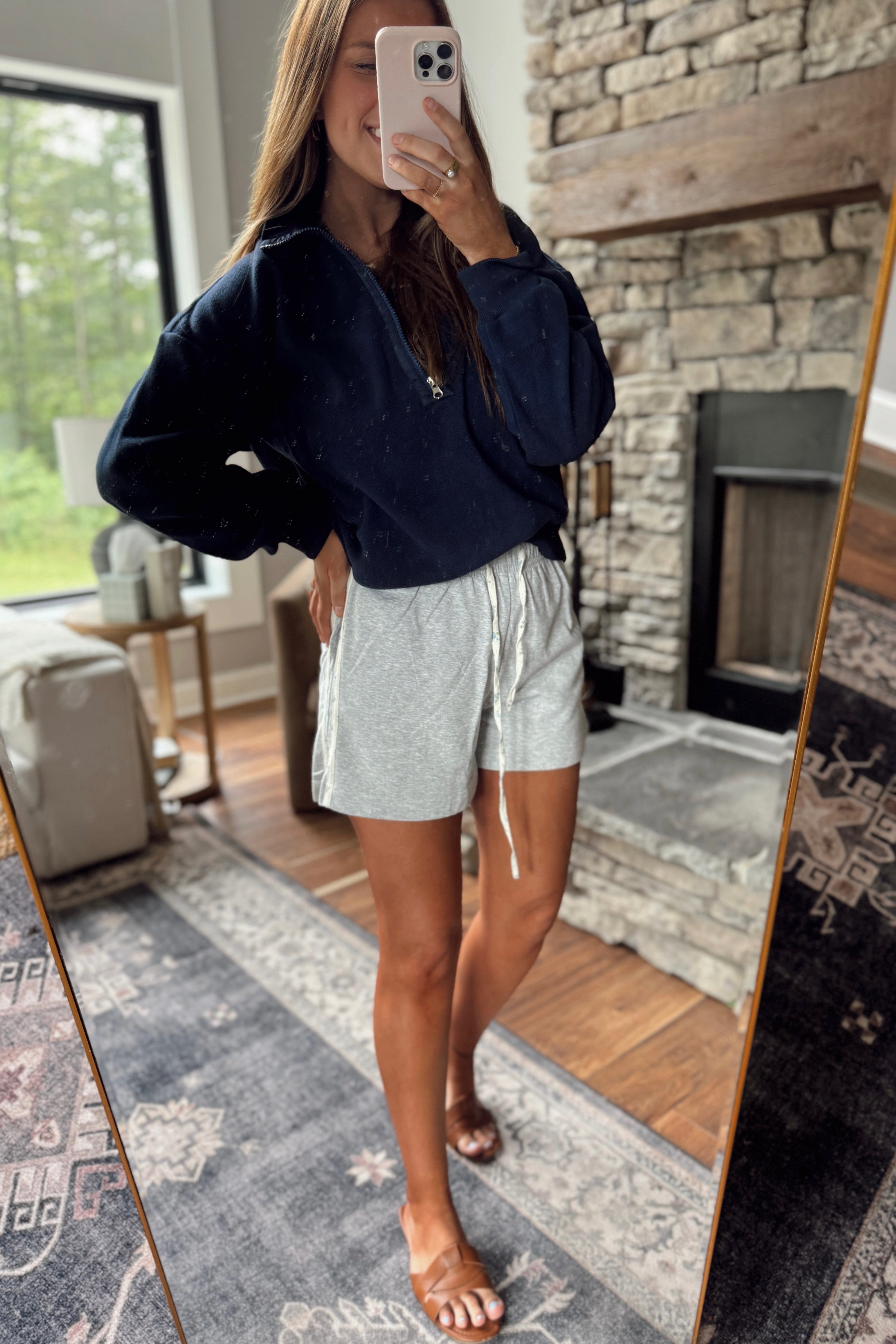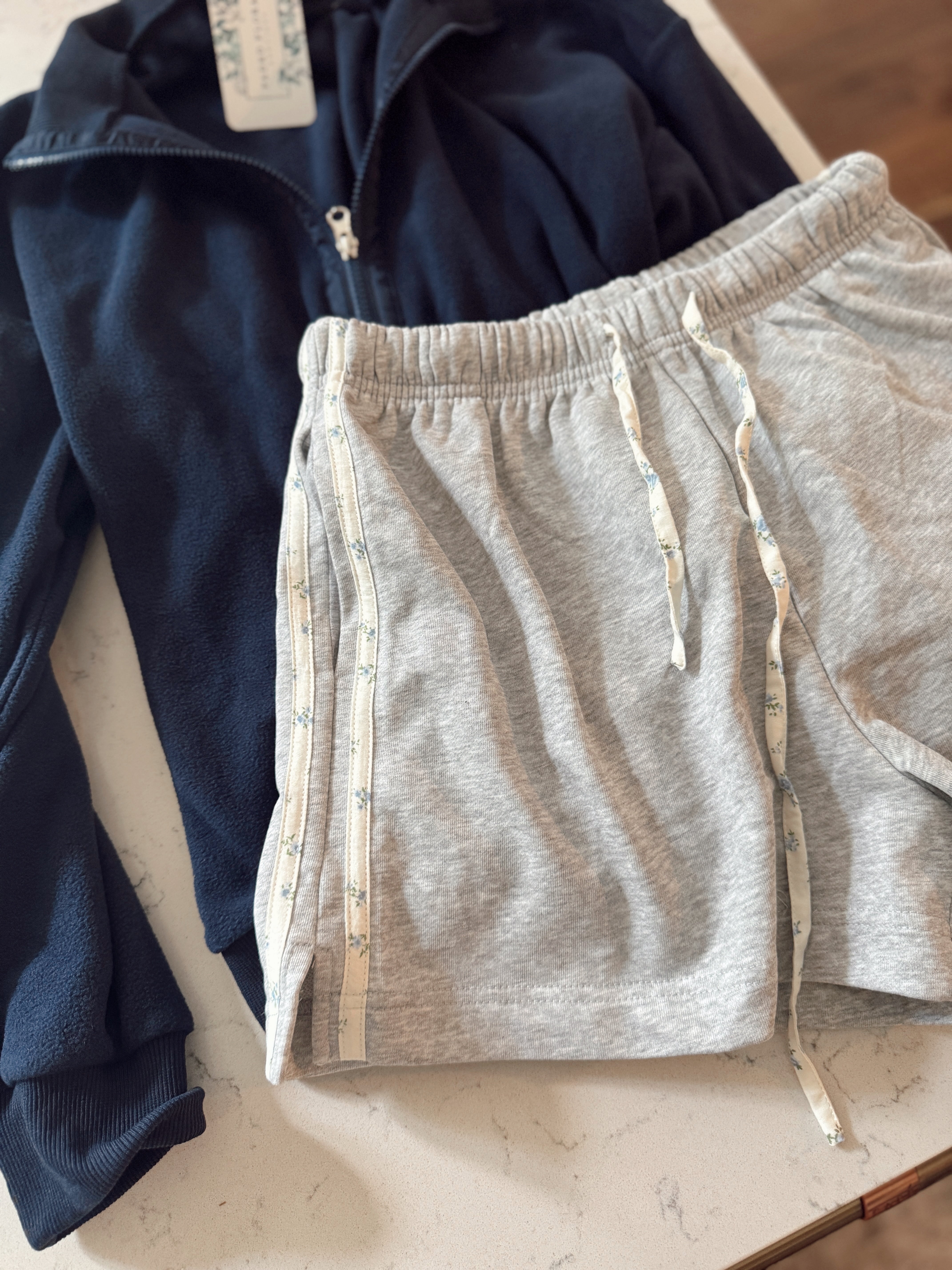 Gray Floral Side Stripe Shorts