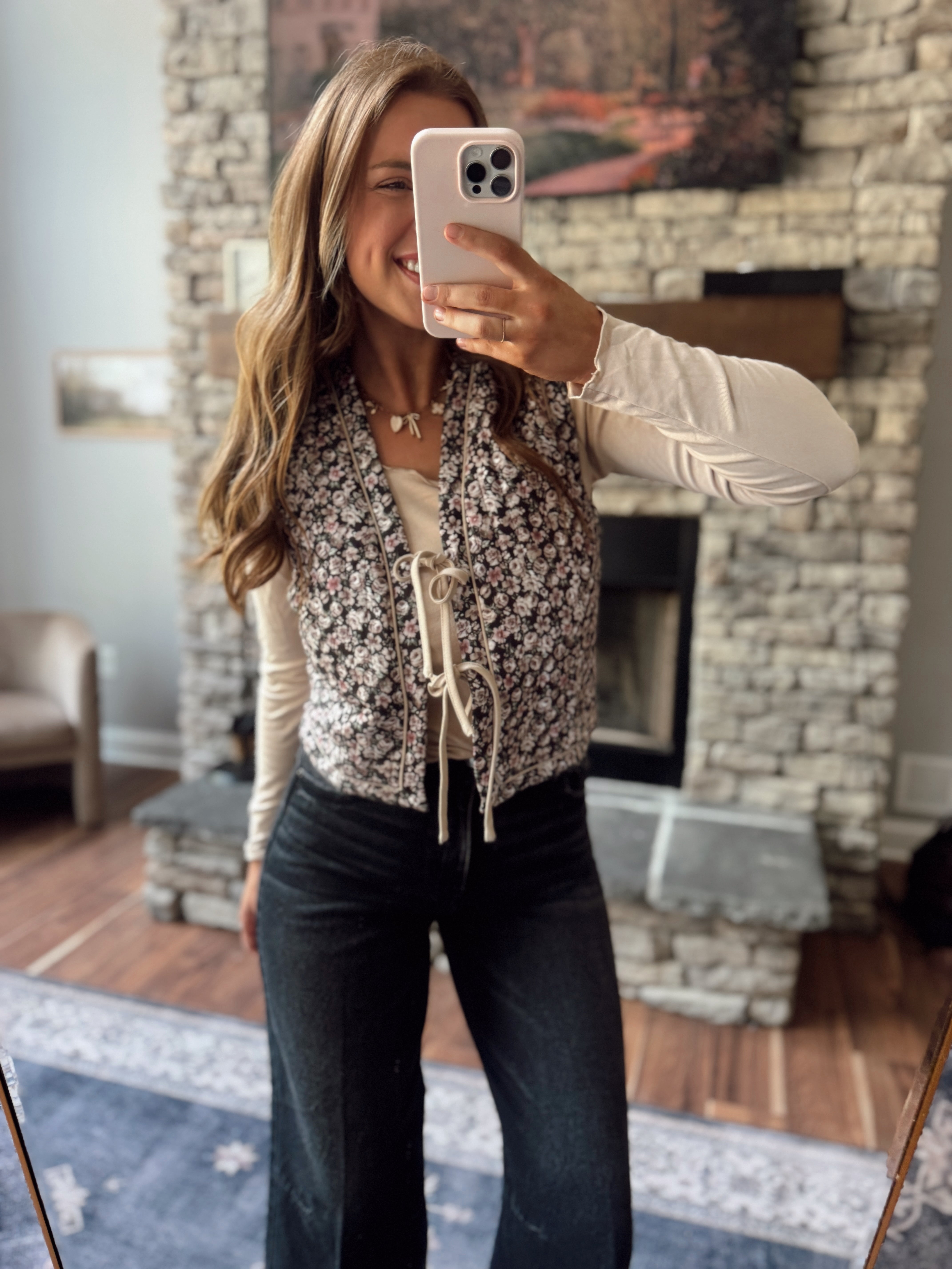 Camila Brown Floral Quilted Vest