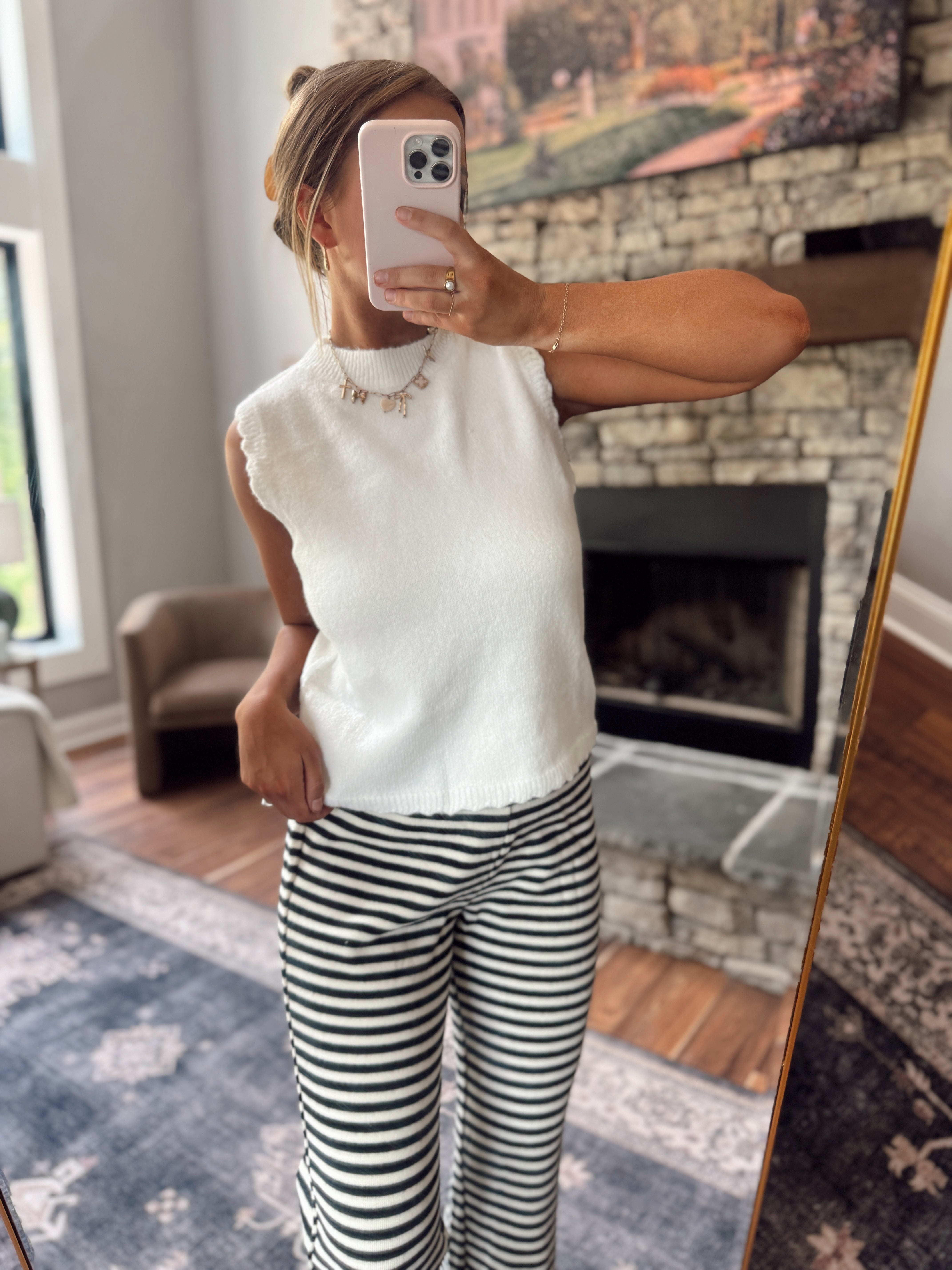 White Scalloped Knit Sweater Vest