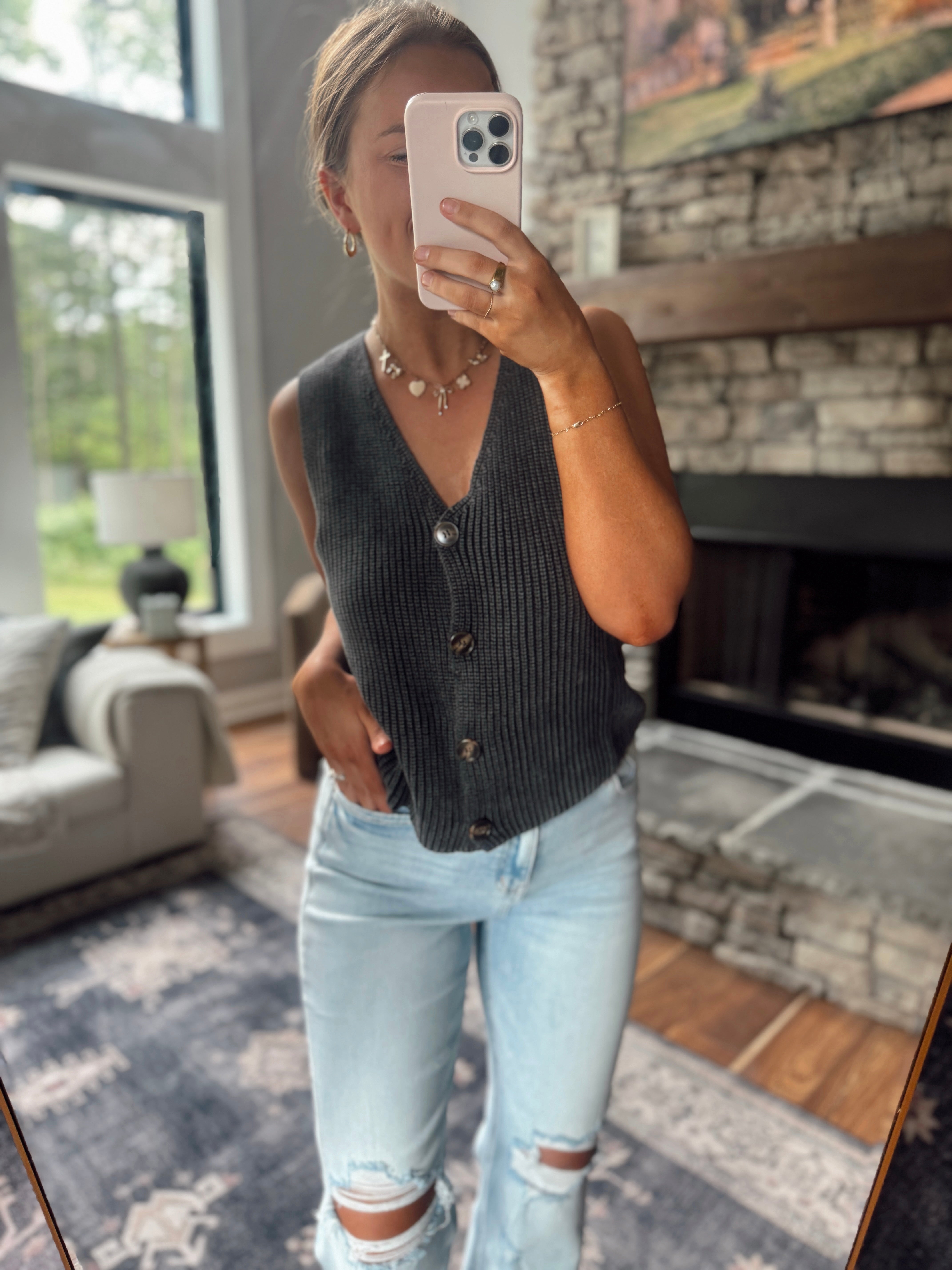 Charcoal Anastasia Button Up Sweater Vest