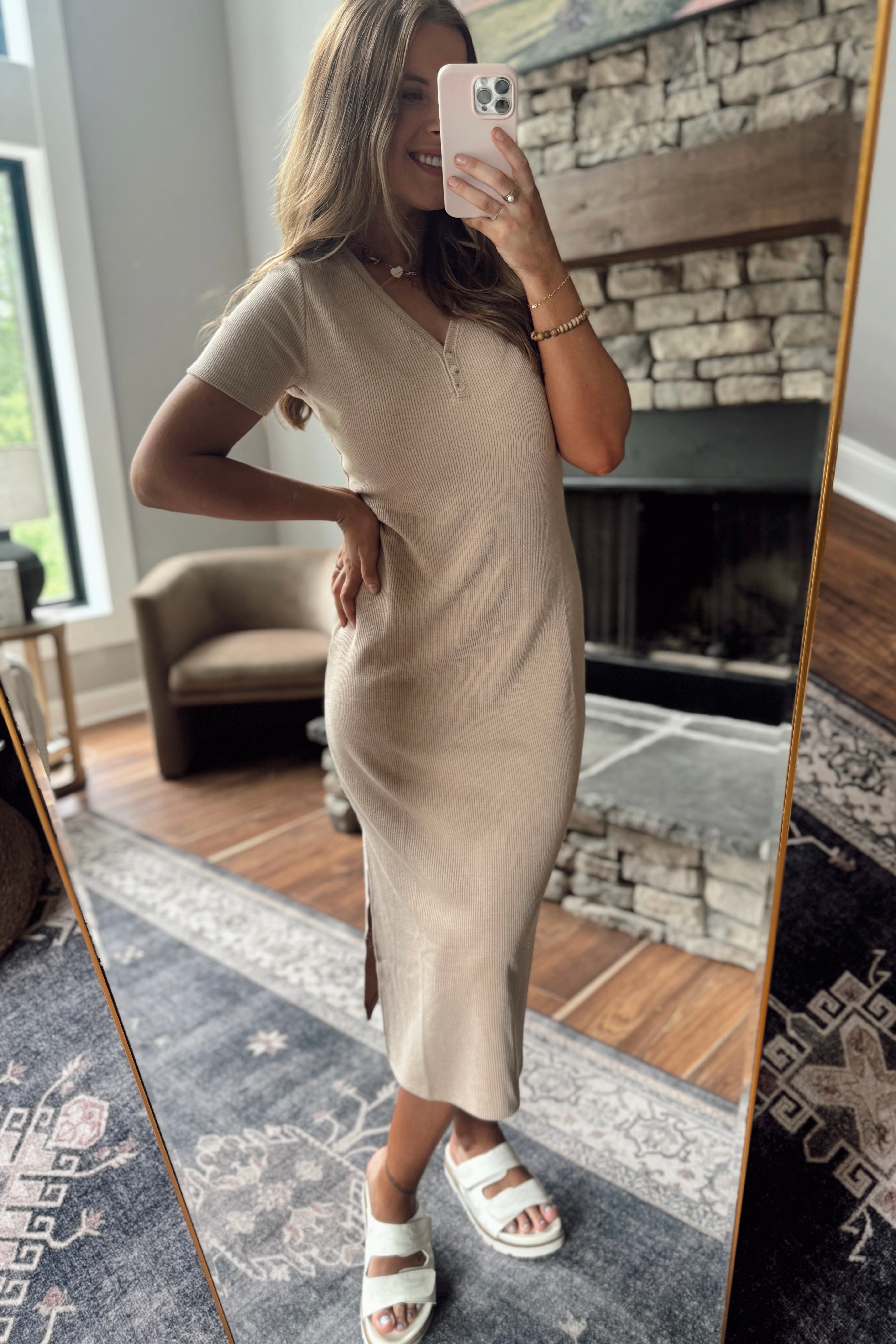 Mocha Aliza Ribbed Knit T-Shirt Midi