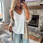 The kind of basic you’ll wear on repeat. This soft V-neck tank features a relaxed fit with a flattering neckline that layers effortlessly under cardigans, jackets, and sweaters—or stands perfectly on its own.