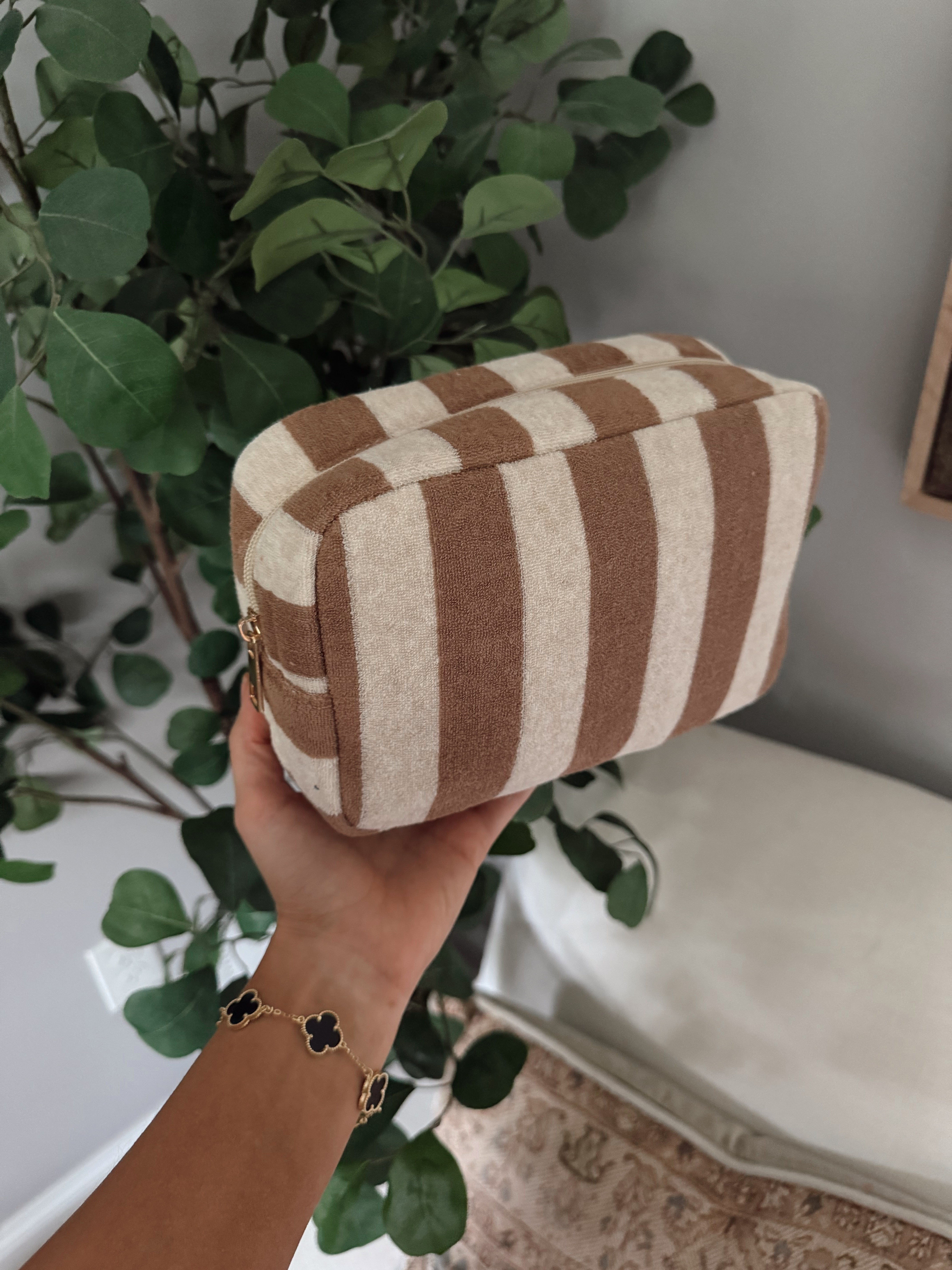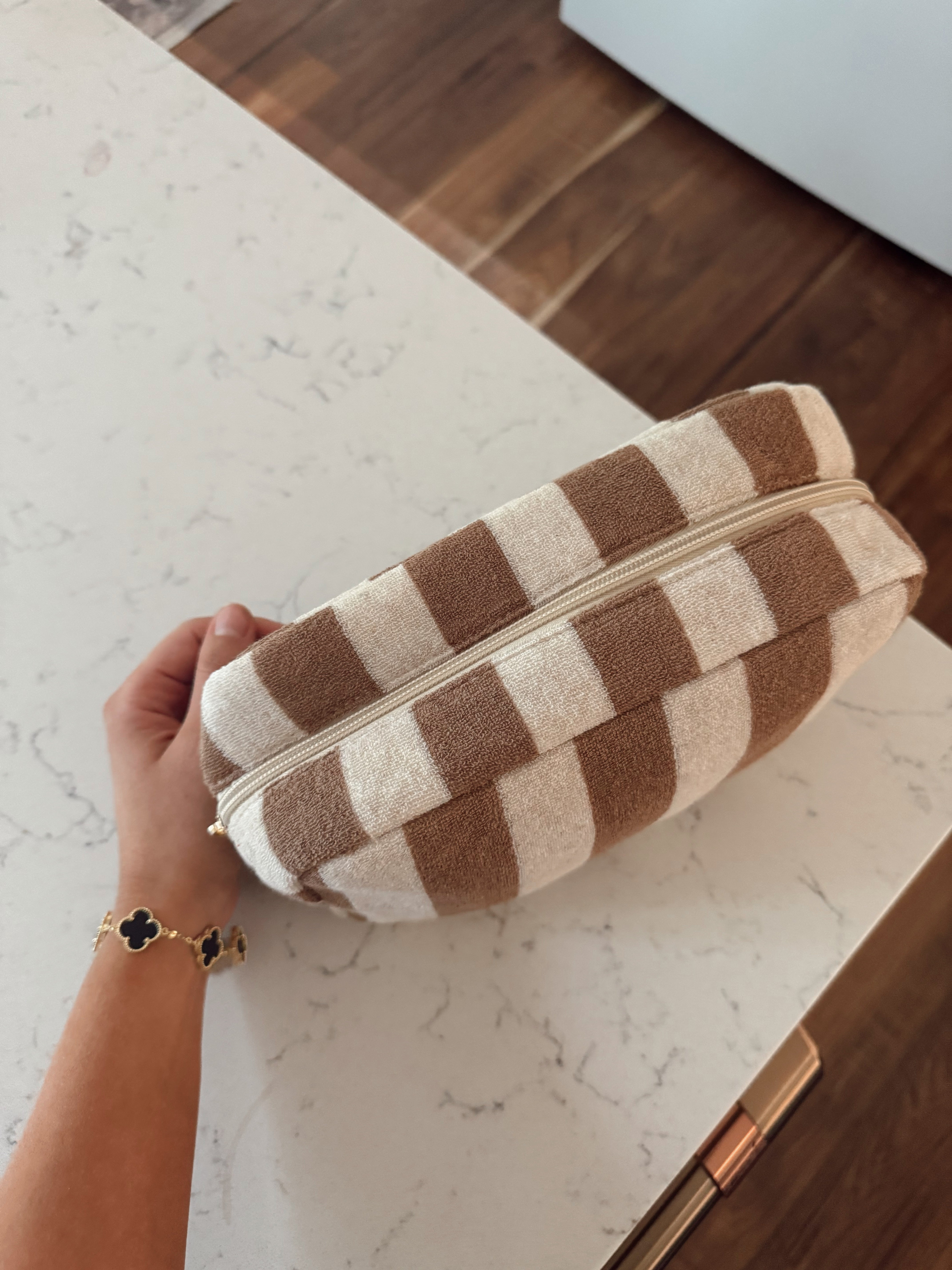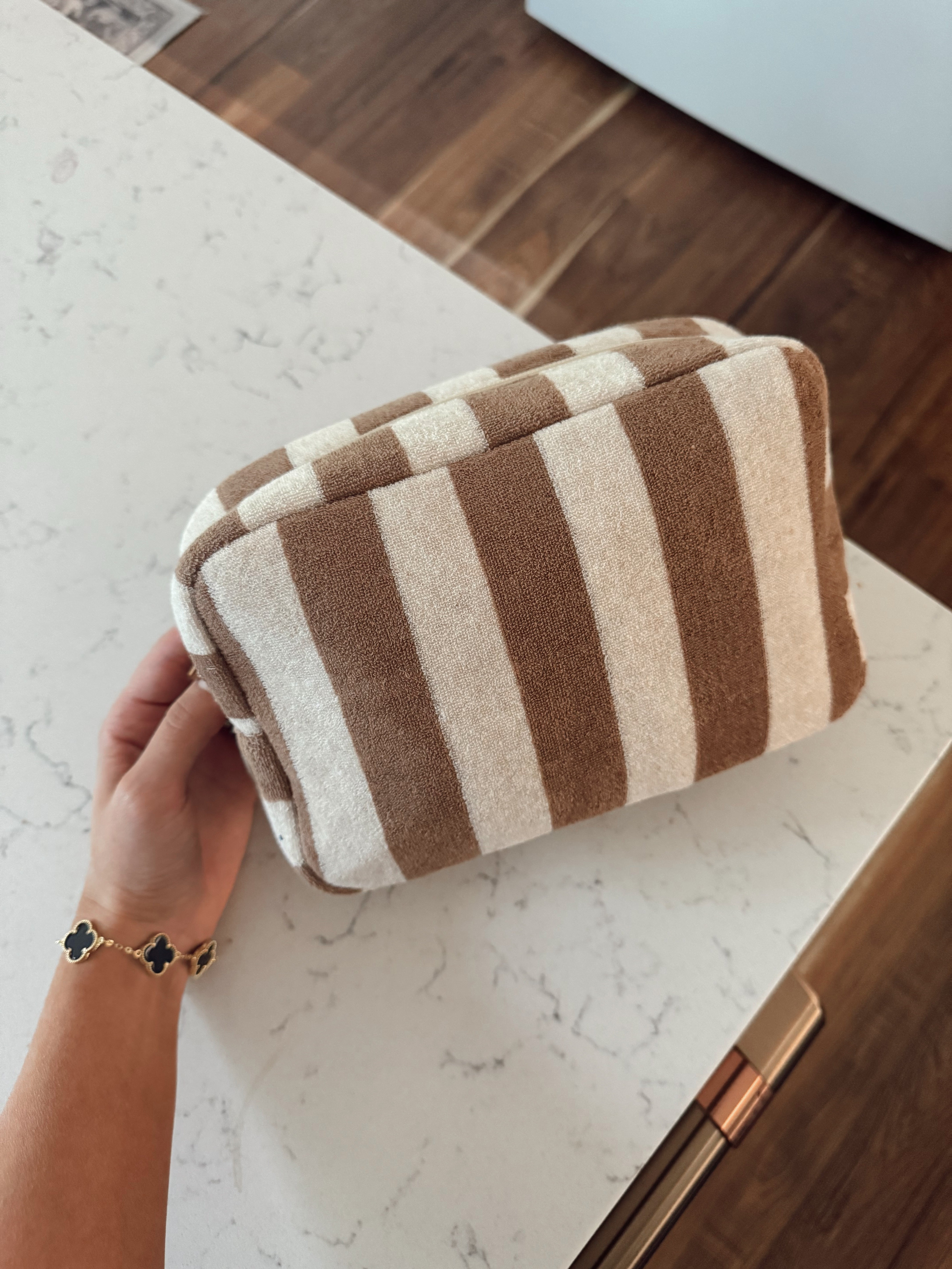 Brown/Beige Striped Terry Cloth Travel Pouch