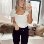 Super flattering with ‘corset’ vibes! True to size fit and snapping buttons. Can be worn on shoulders or off shoulders: