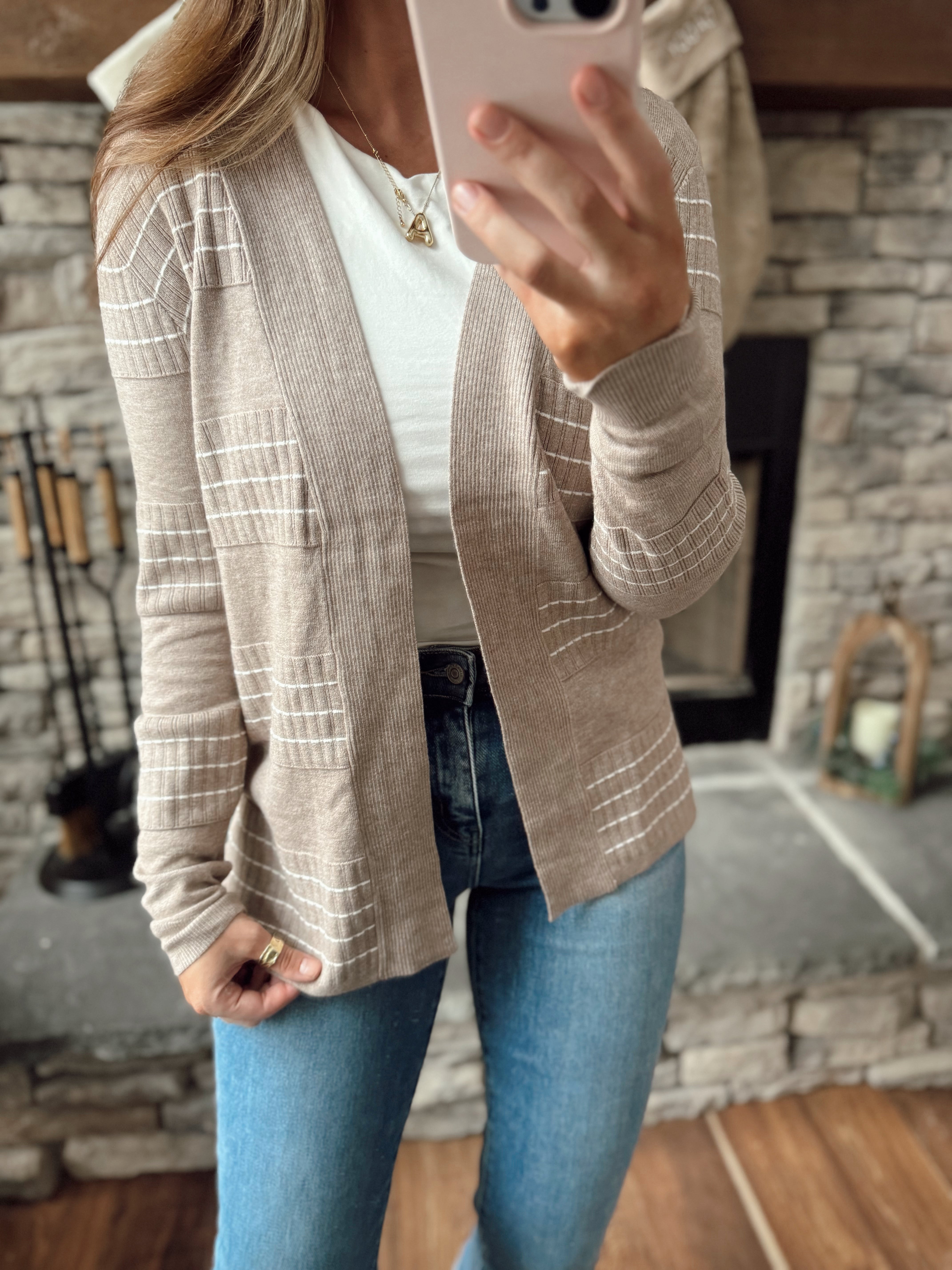 Asher Oatmeal Stitch Striped Cardi