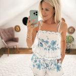 Such an adorable 2 piece set! My favorite color combo. A relaxed / true fit. Self tie straps for top. Elastic waist shorts.