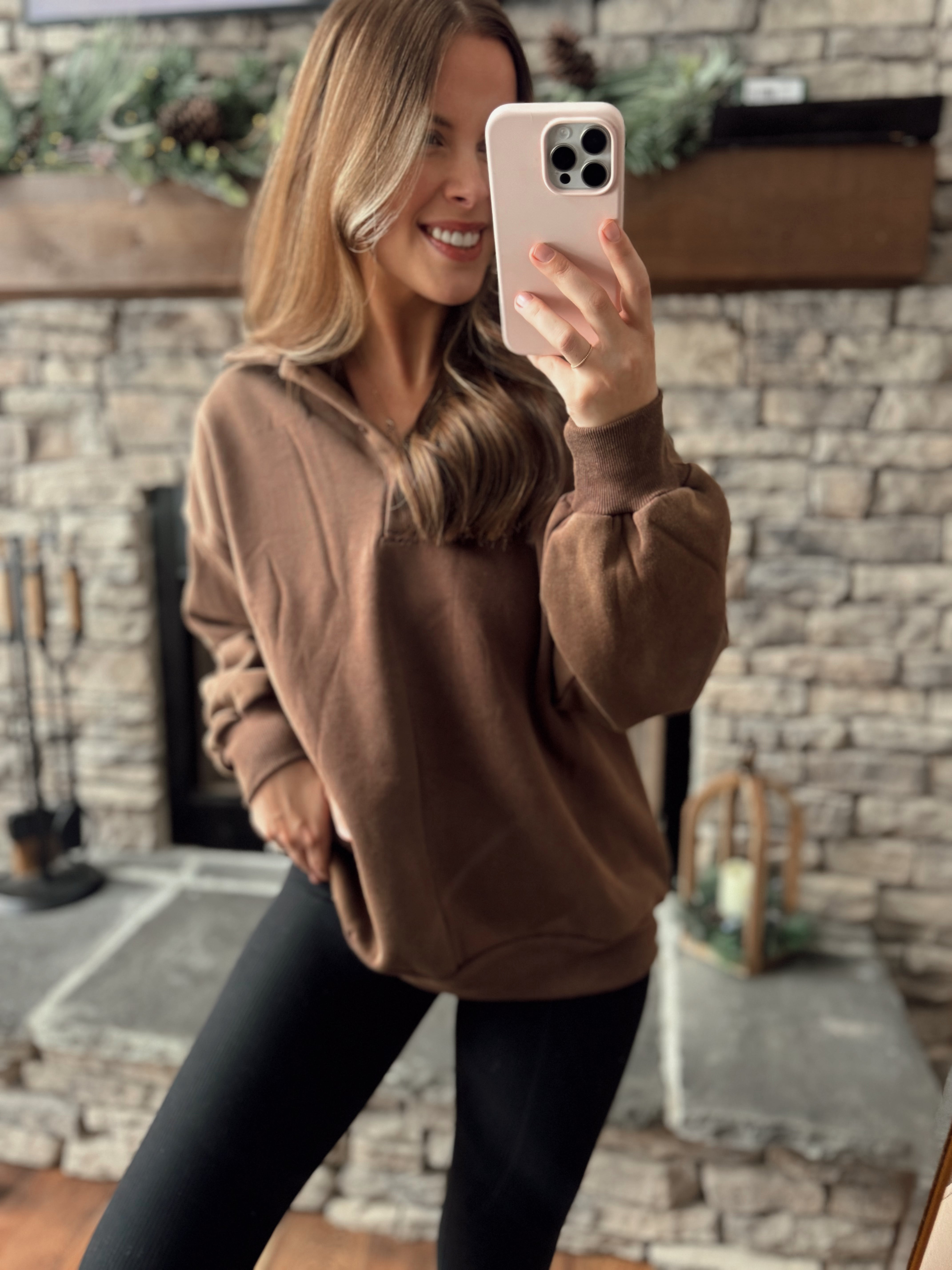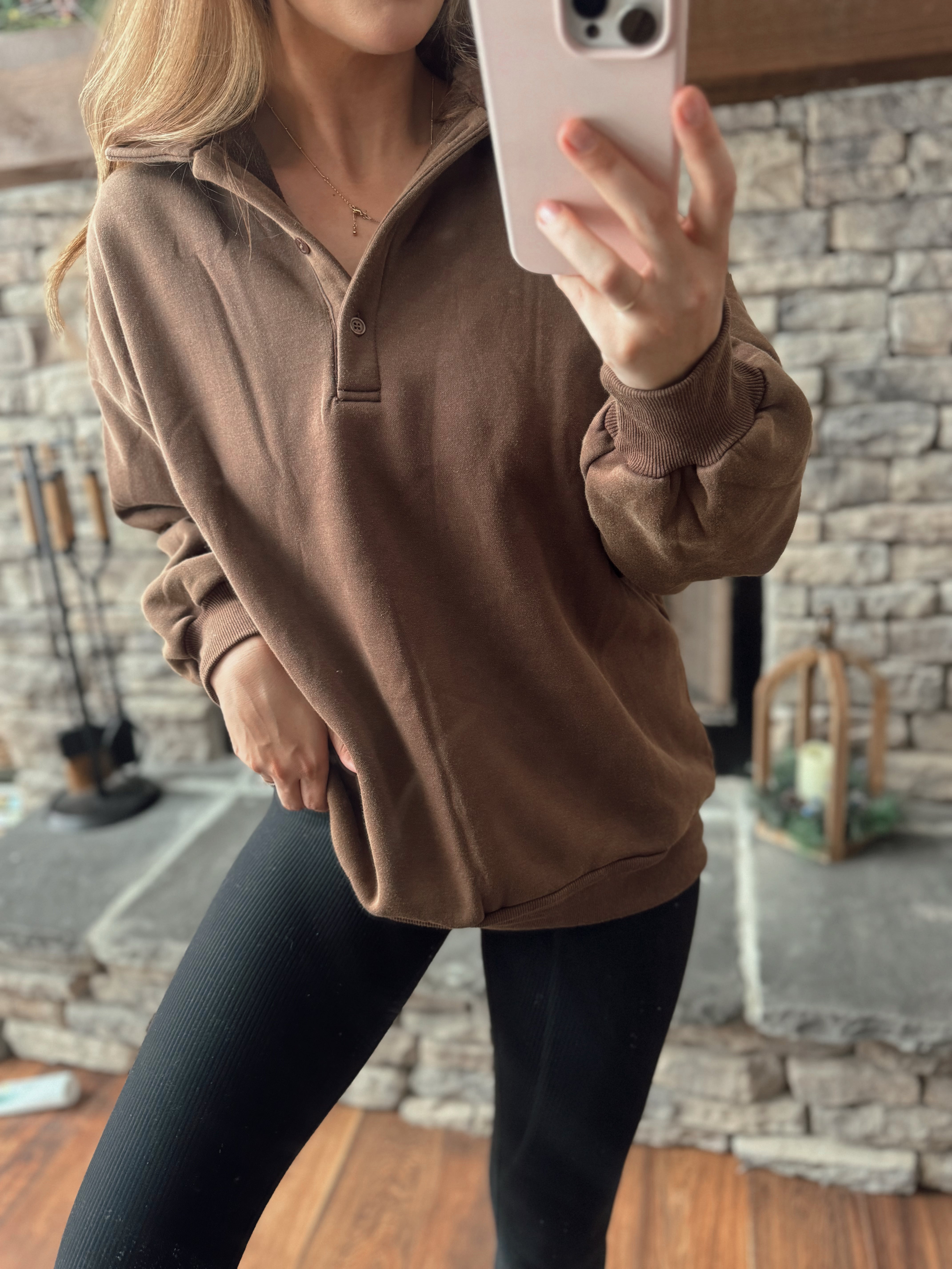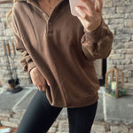 Averie Camel Mineral Washed Oversized Polo Pullover